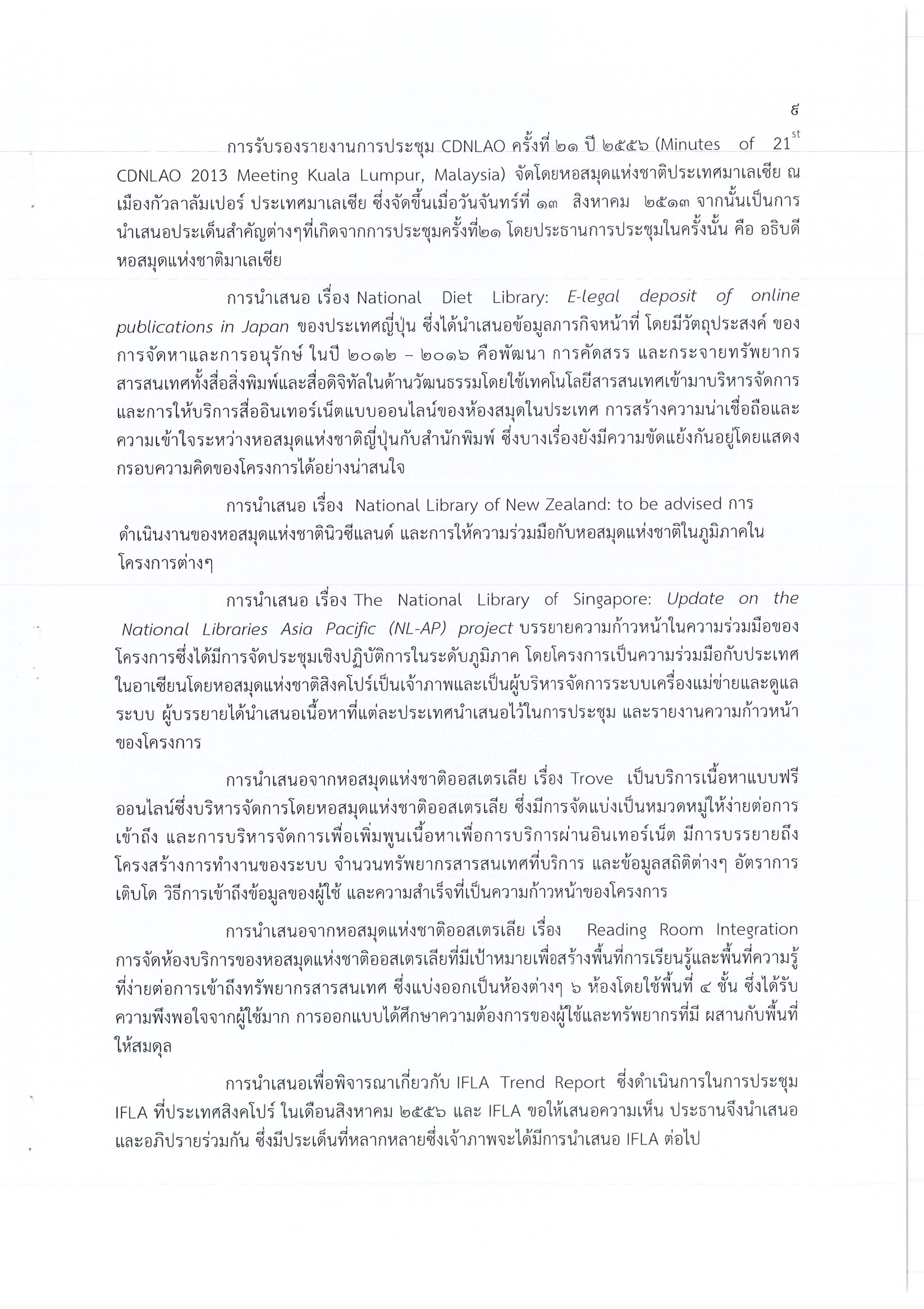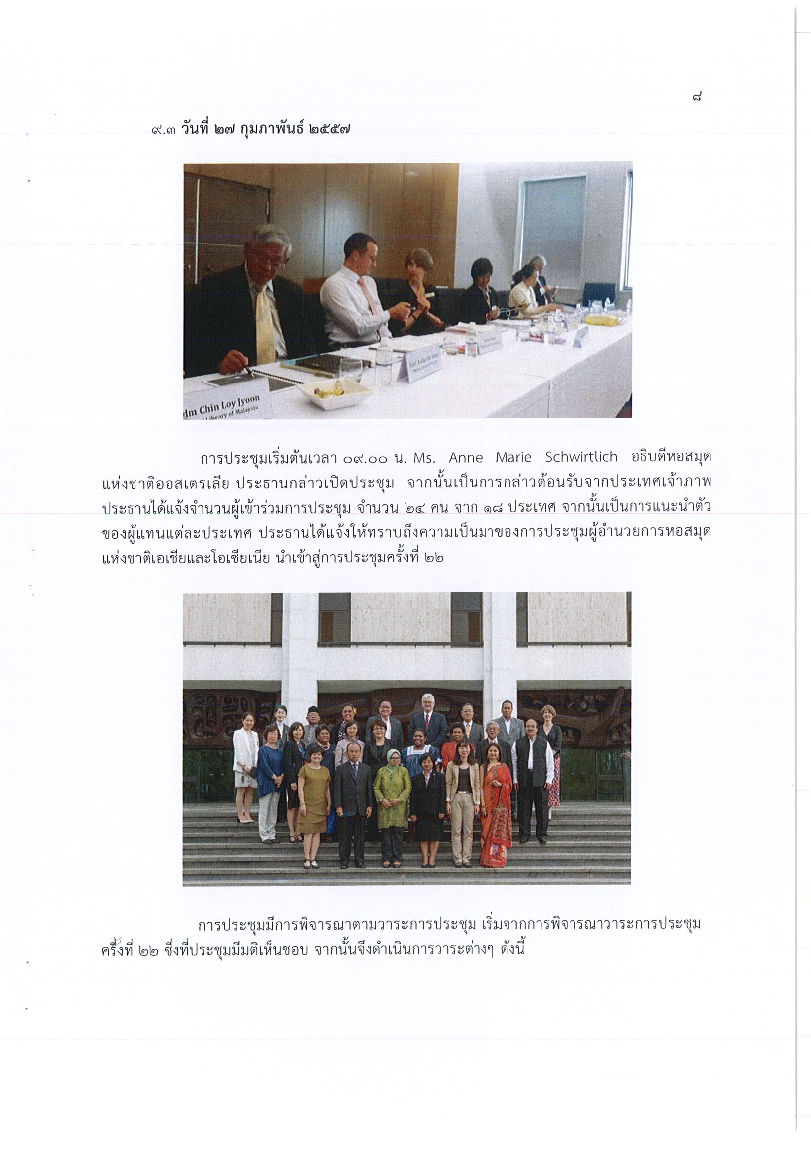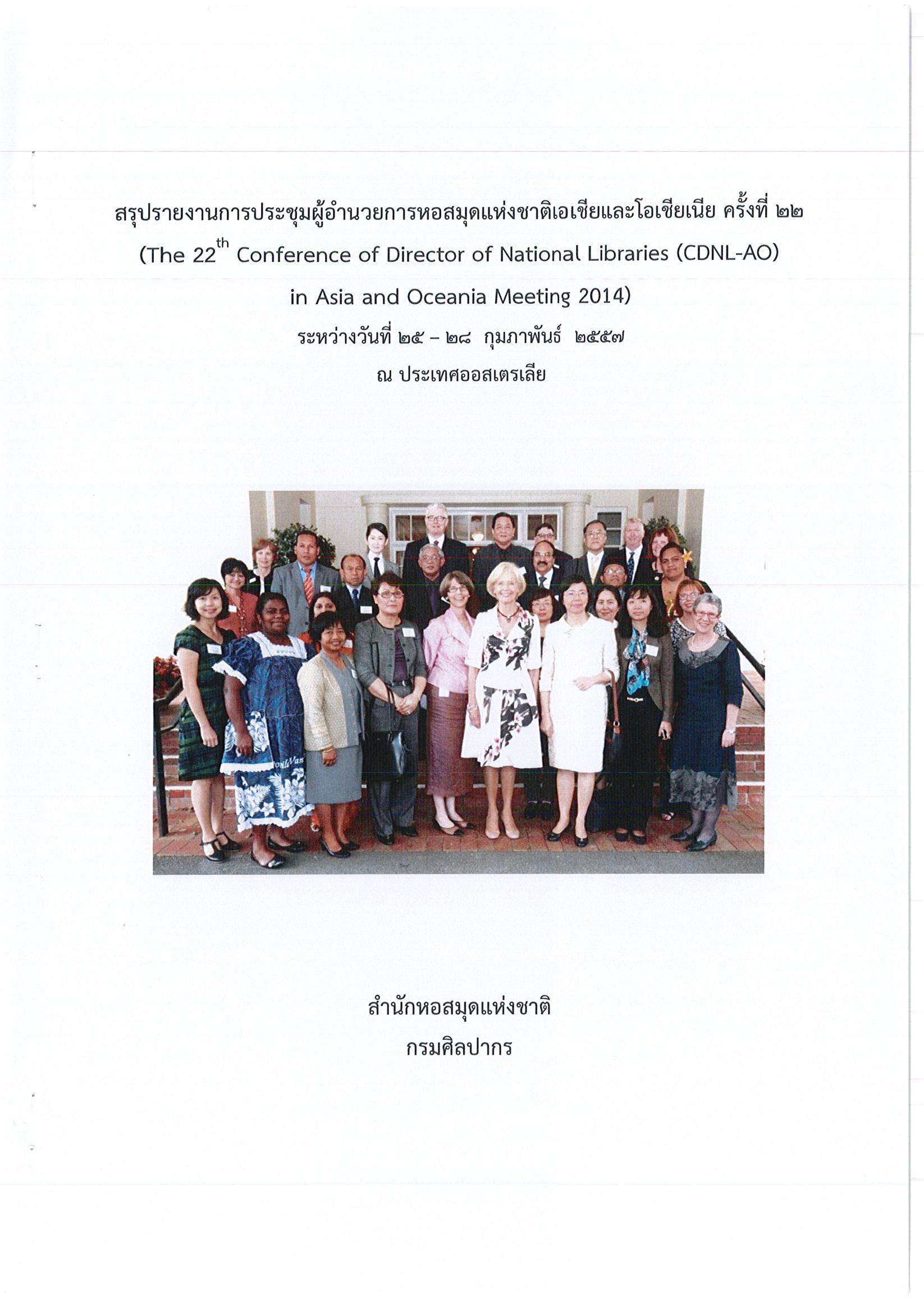 รายงานการเดินทางไปราชการ ณ เครือรัฐออสเตรเลีย ระหว่างวันที่ 25 – 28 กุมภาพันธ์ 2557 โครงการประชุมผู้อำนวยการหอสมุดแห่งชาติเอเชียและโอเชียเนีย ครั้งที่ 22