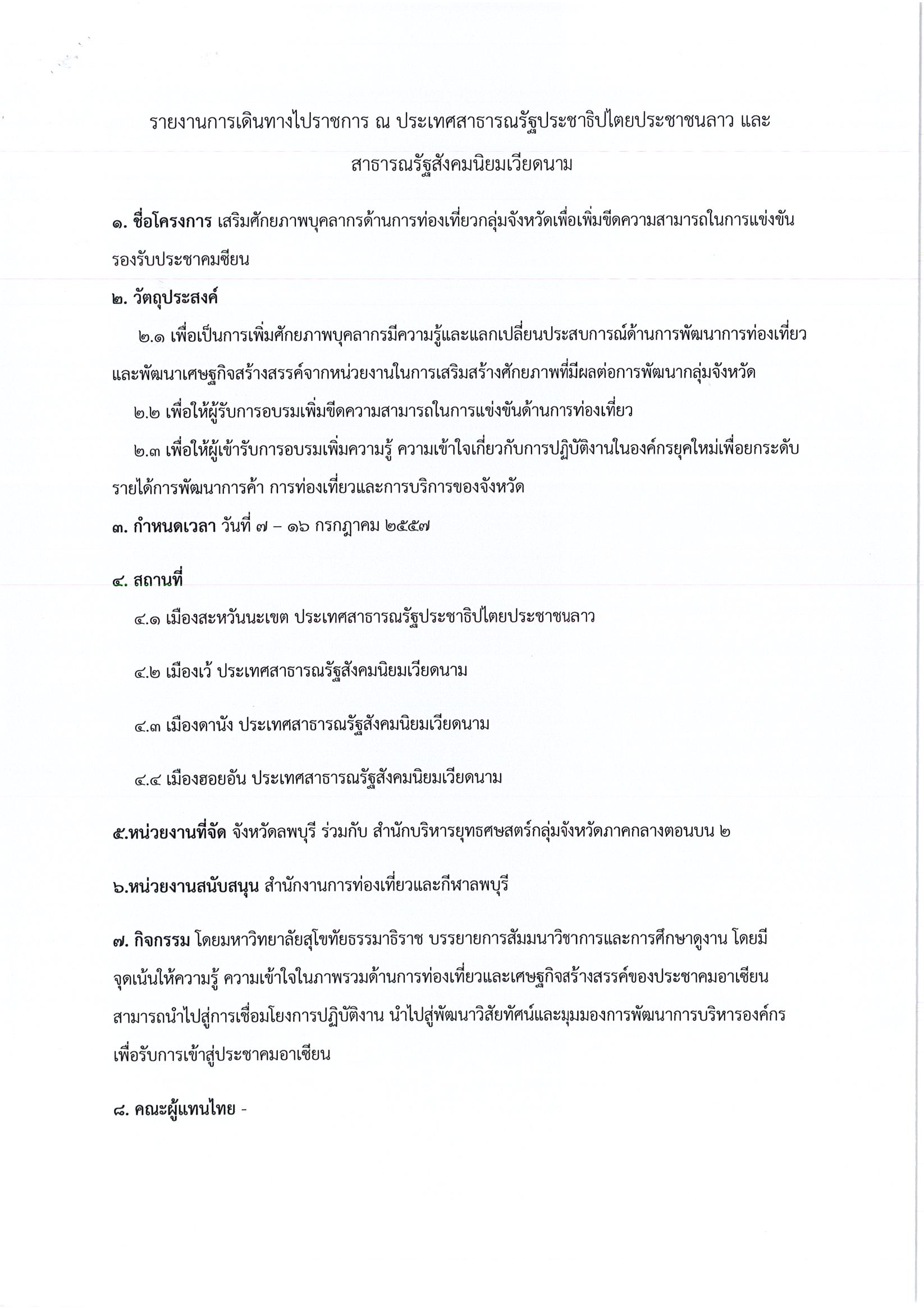 รายงานการเดินทางไปราชการ สาธารณรัฐประชาธิปไตยประชาชนลาว และสาธารณรัฐสังคมนิยมเวียดนาม ระหว่างวันที่ 7 – 16 กรกฎาคม 2557 โครงการเสริมศักยภาพบุคลากรด้านการท่องเที่ยวกลุ่มจังหวัดเพื่อเพิ่มขีดความสามารถในการแข่งขันรองรับประชาคมอาเซียน