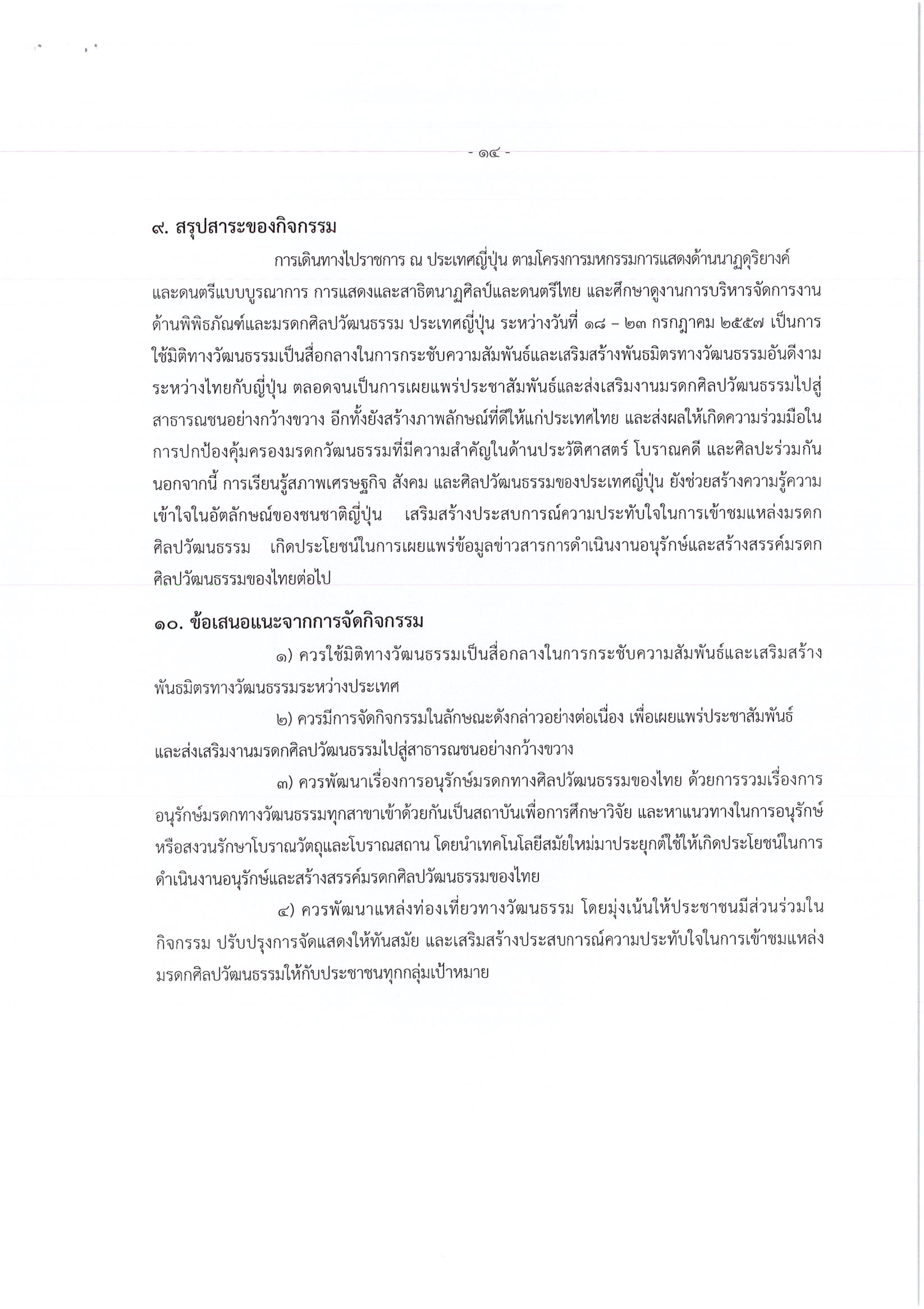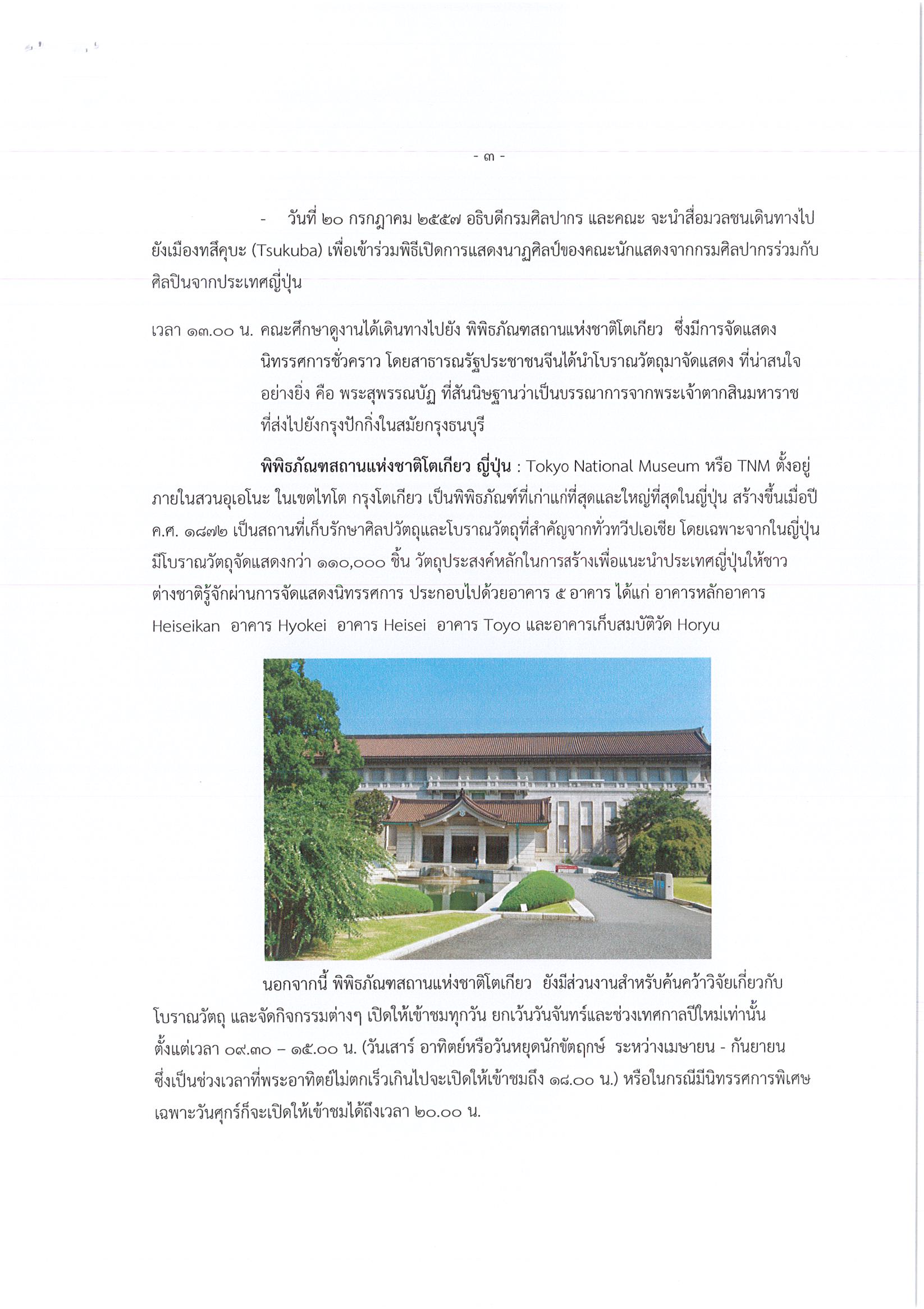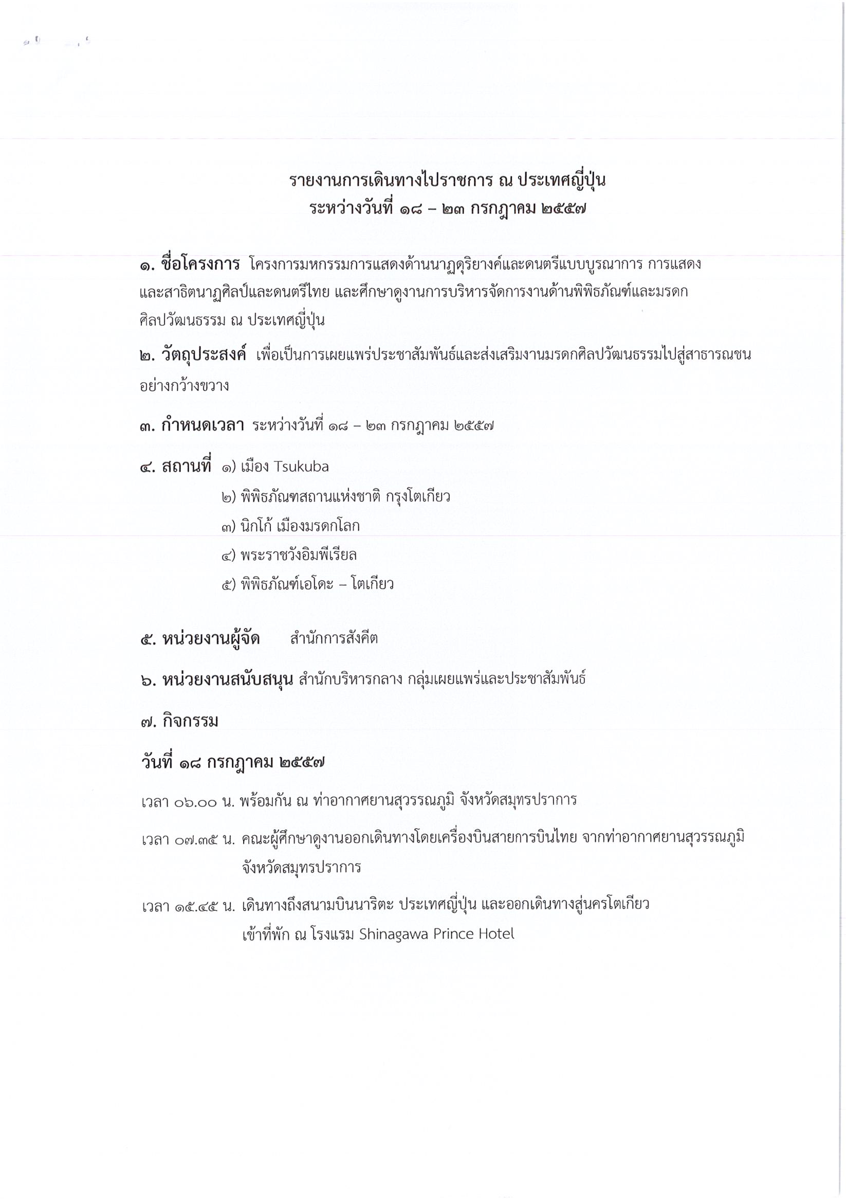 รายงานการเดินทางไปราชการ ณ ประเทศญี่ปุ่น ระหว่างวันที่ 18 – 23 กรกฎาคม 2557 โครงการมหกรรมการแสดงด้านนาฏดุริยางค์และดนตรีแบบบูรณาการ การแสดงและสาธิตนาฏศิลป์และดนตรีไทย และศึกษาดูงานด้านการบริหารจัดการงานด้านพิพิธภัณฑ์และมรดกทางวัฒนธรรม