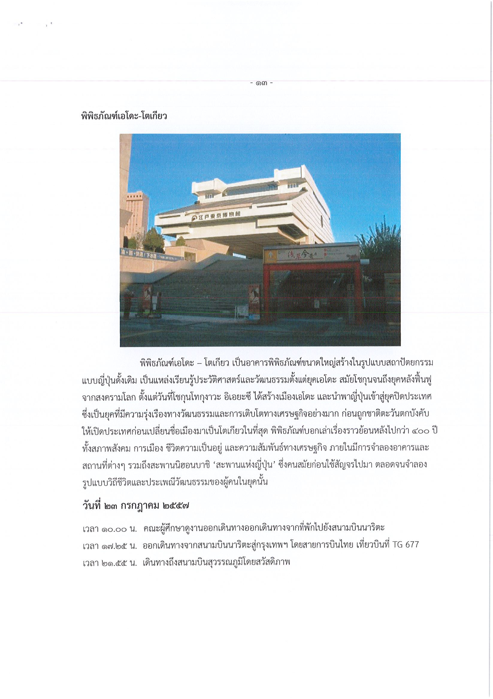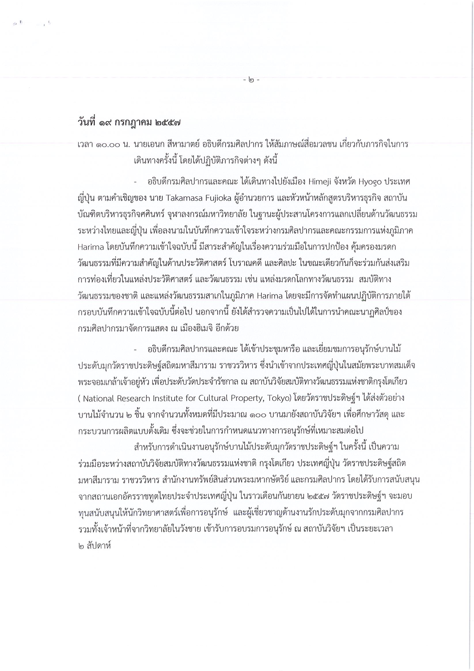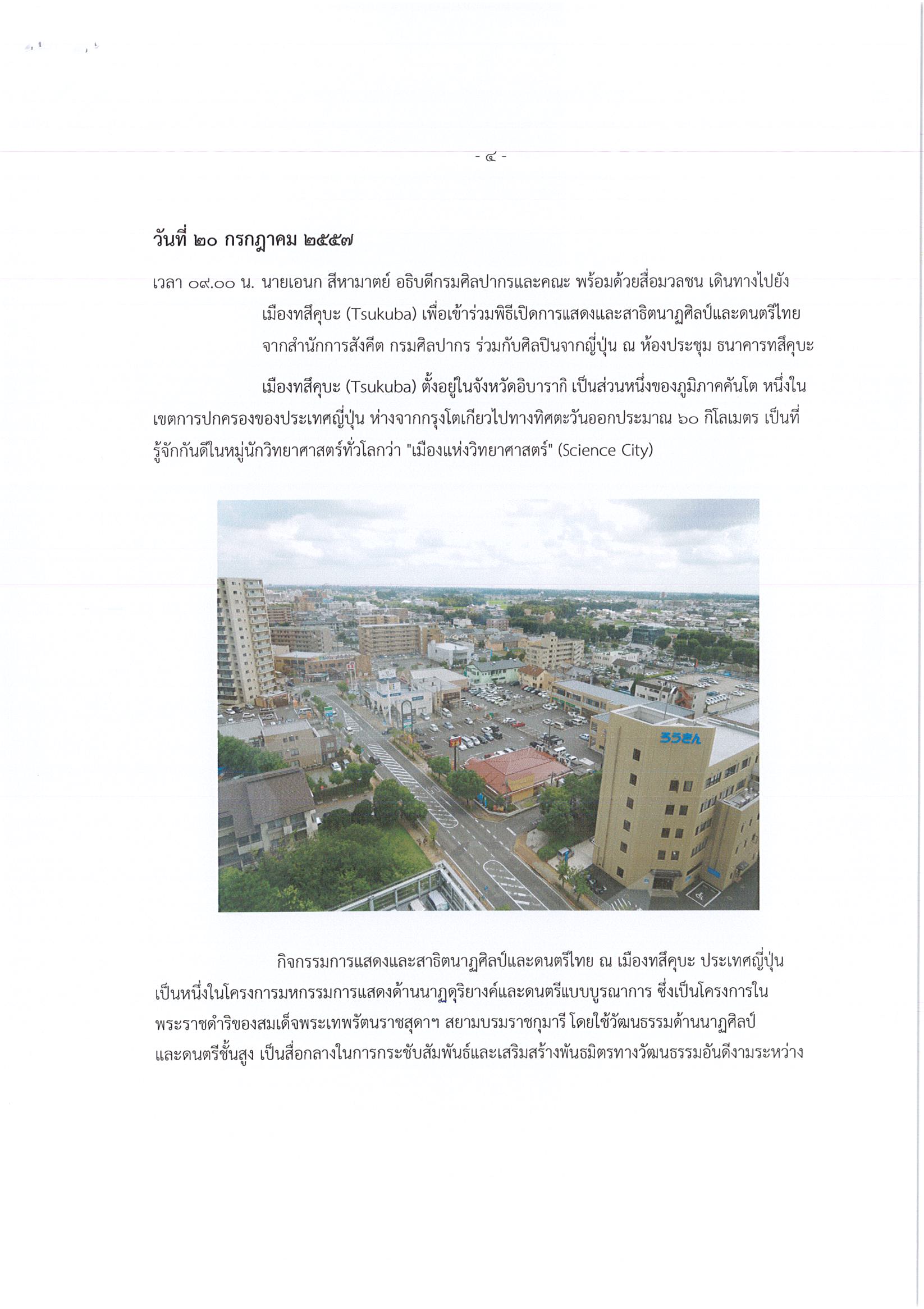 รายงานการเดินทางไปราชการ ณ ประเทศญี่ปุ่น ระหว่างวันที่ 18 – 23 กรกฎาคม 2557 โครงการมหกรรมการแสดงด้านนาฏดุริยางค์และดนตรีแบบบูรณาการ การแสดงและสาธิตนาฏศิลป์และดนตรีไทย และศึกษาดูงานด้านการบริหารจัดการงานด้านพิพิธภัณฑ์และมรดกทางวัฒนธรรม