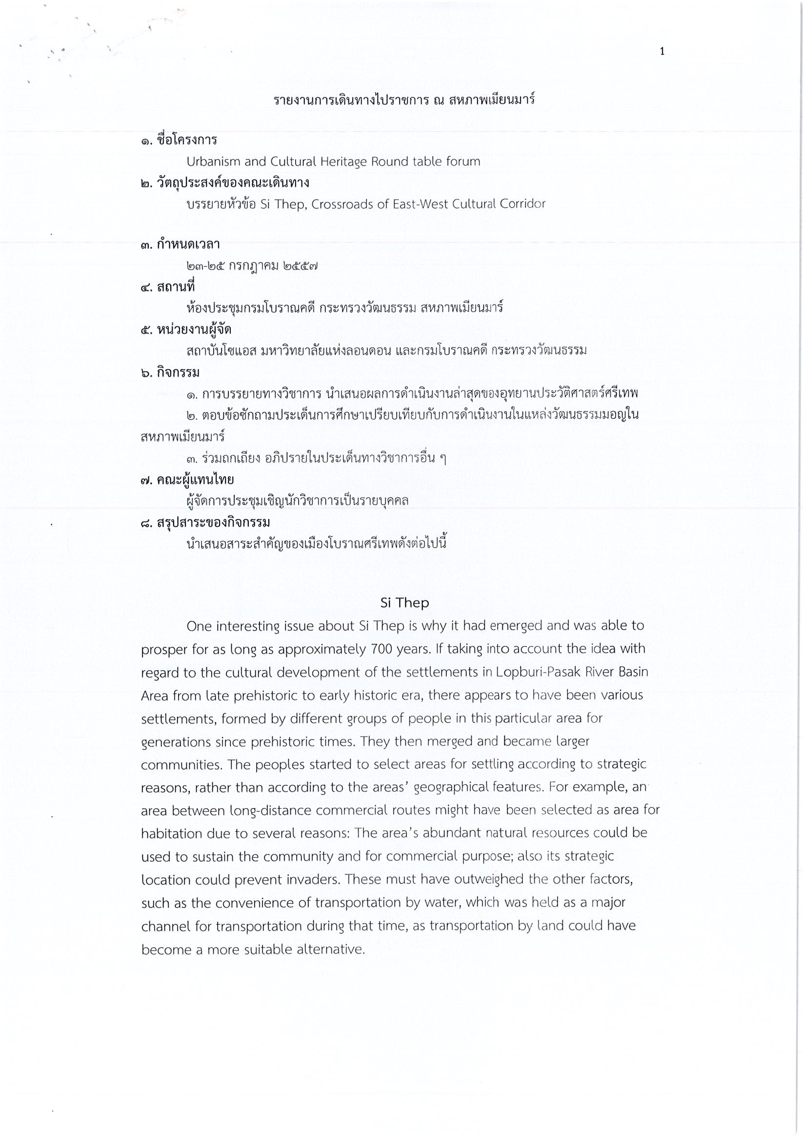 รายงานการเดินทางไปราชการ ณ สาธารณรัฐแห่งสหภาพเมียนมาร์ ระหว่างวันที่ 23 – 25 กรกฎาคม 2557 โครงการ Urbanism and Cultural Heritage Round table forum