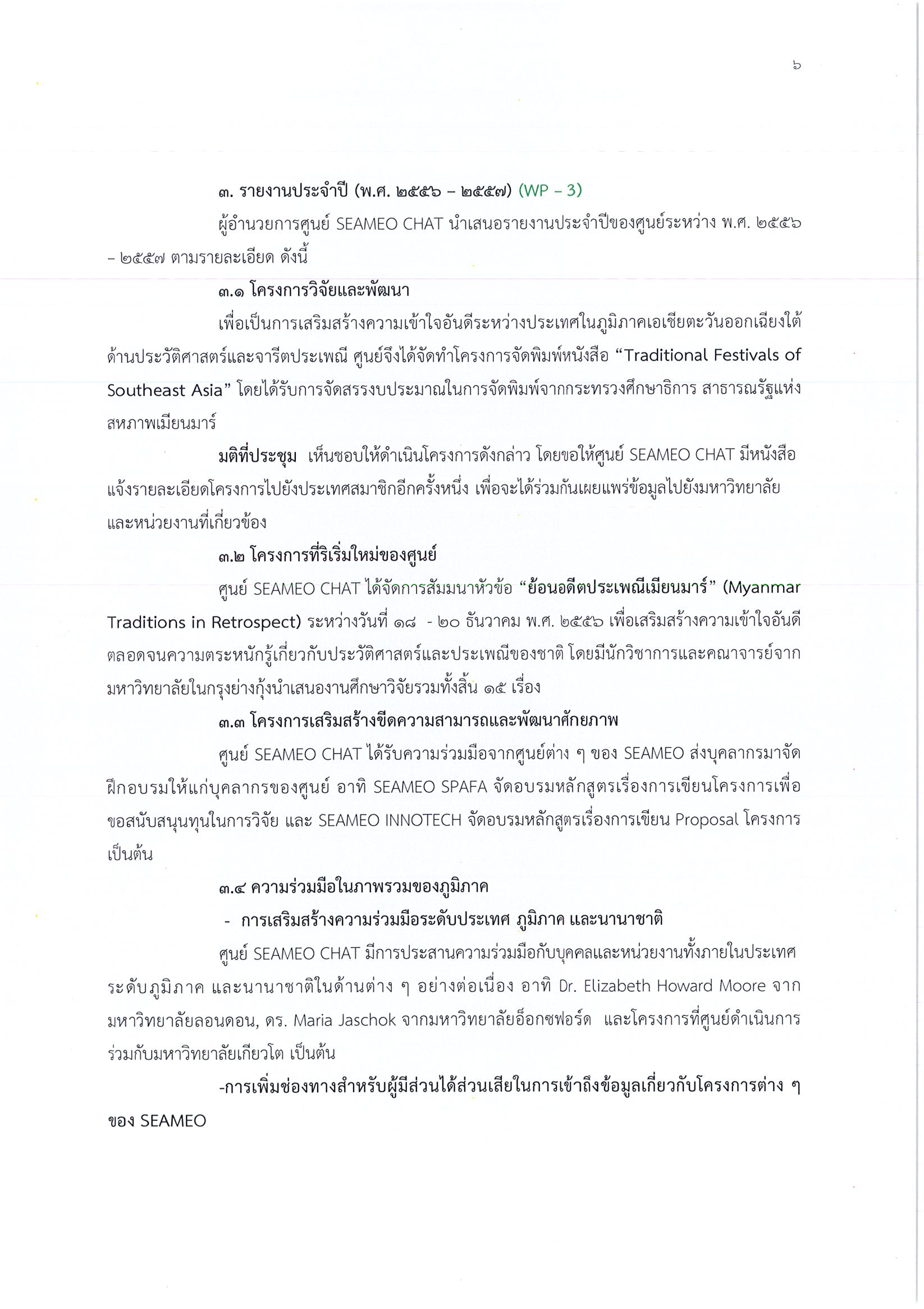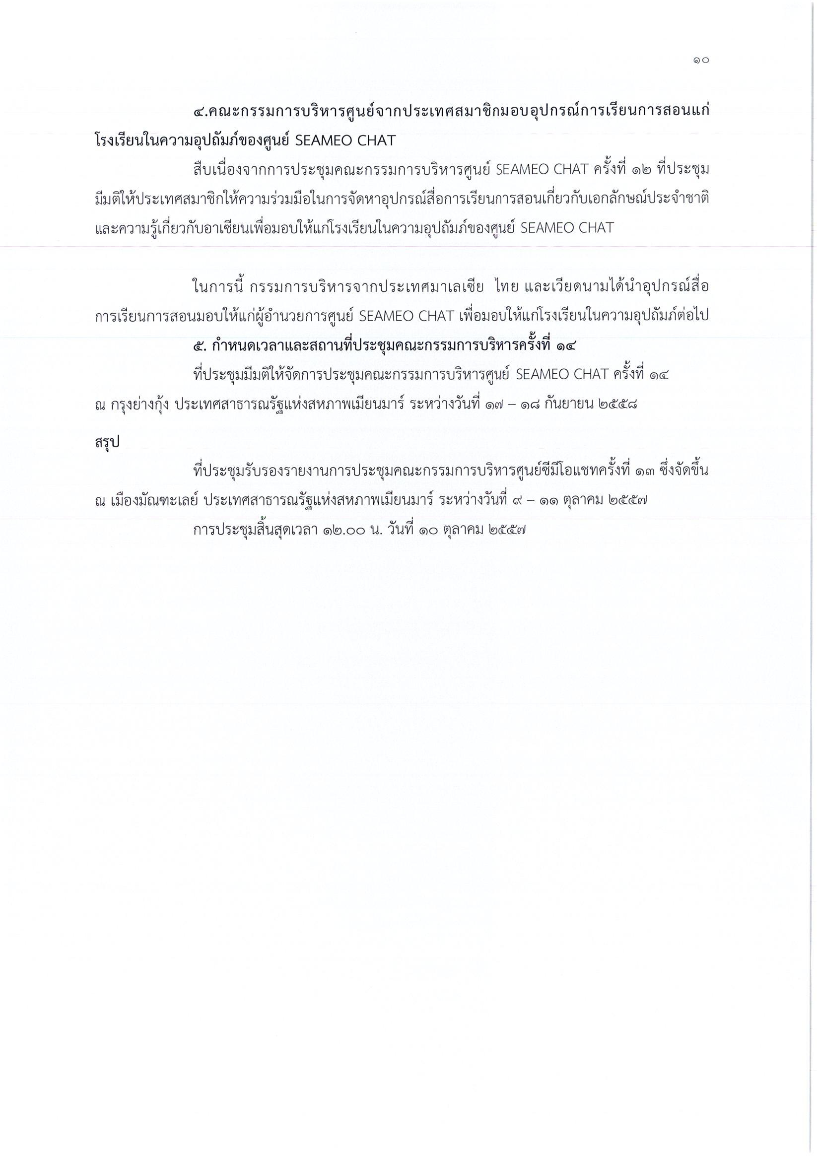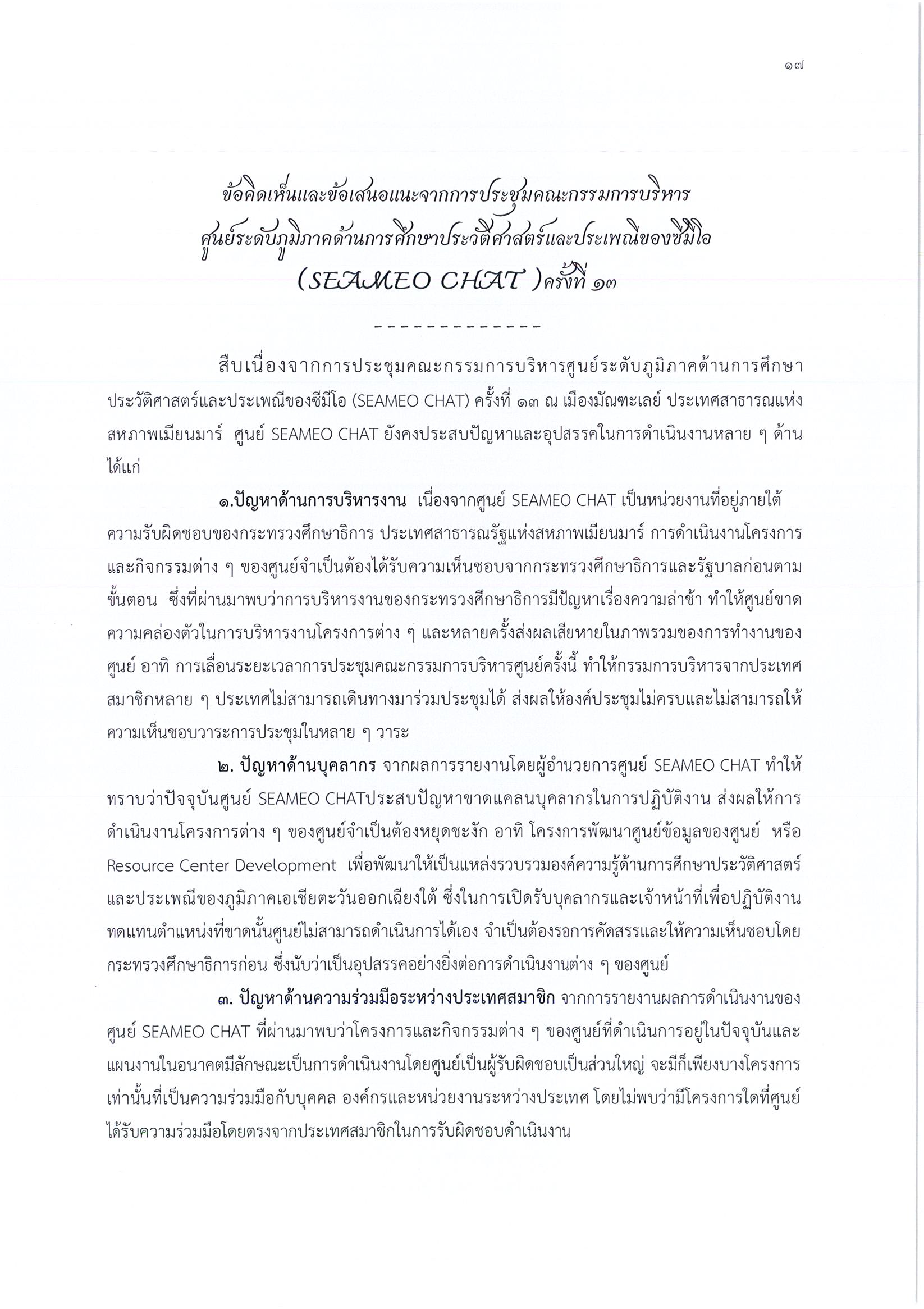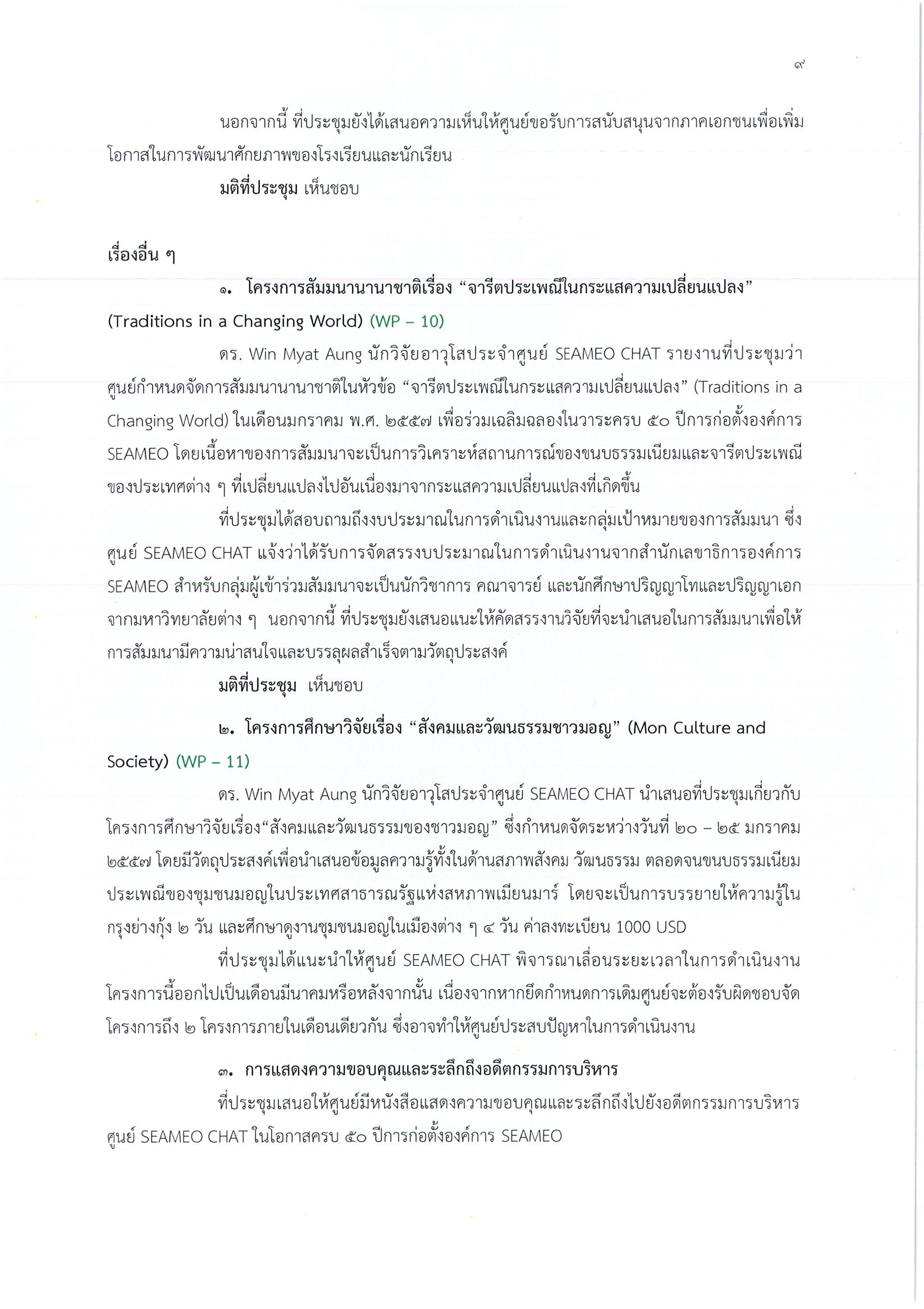 รายงานการเดินทางไปราชการเพื่อเข้าร่วมประชุมคณะกรรมการบริหารศูนย์ระดับภูมิภาคด้านการศึกษาประวัติศาสตร์ และประเพณีของซีมีโอ (SEAMEO CHAT) ครั้งที่ 13 ณ เมืองมัณฑะเลย์ ประเทศสาธารณรัฐแห่งสหภาพเมียนมาร์ ระหว่างวันที่ 9 – 11 ตุลาคม 2557