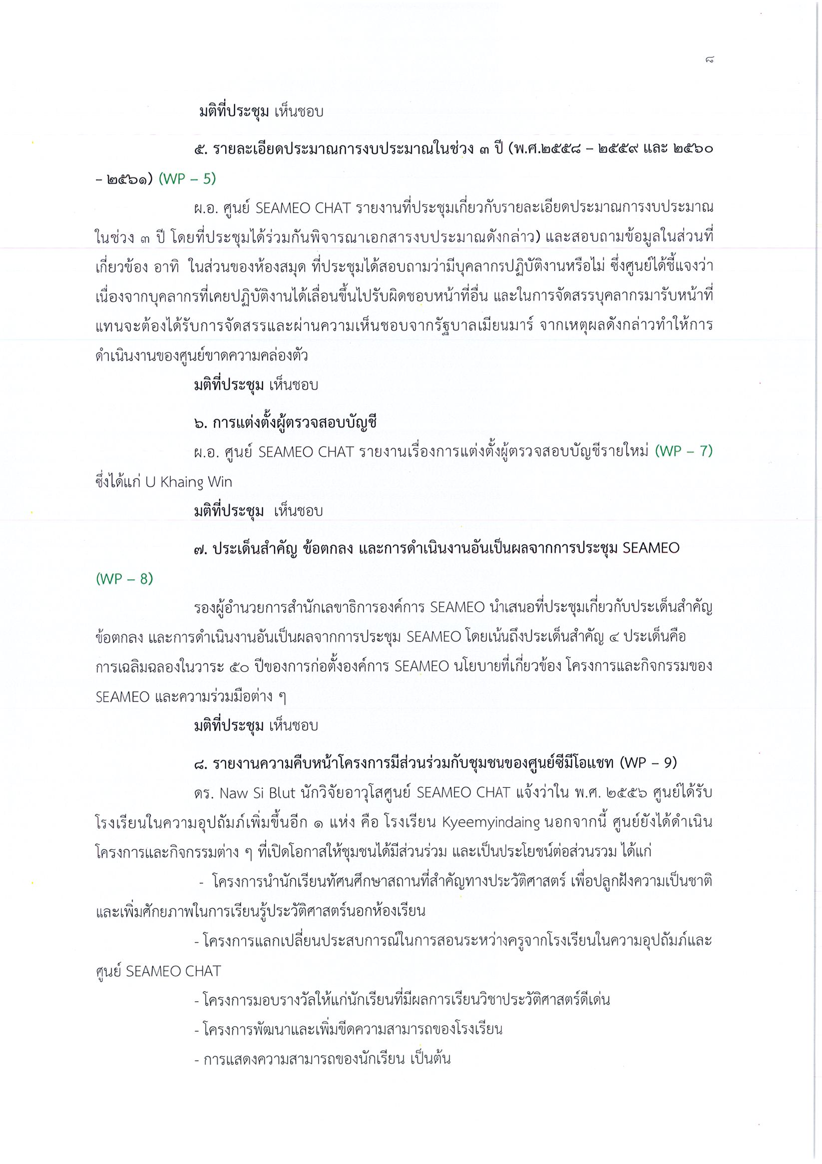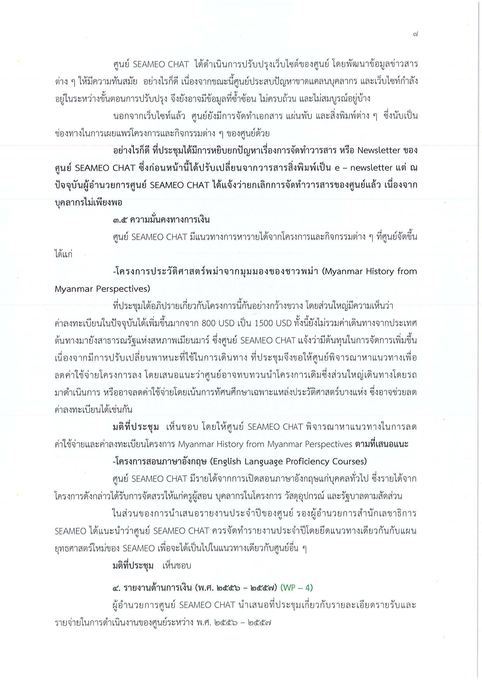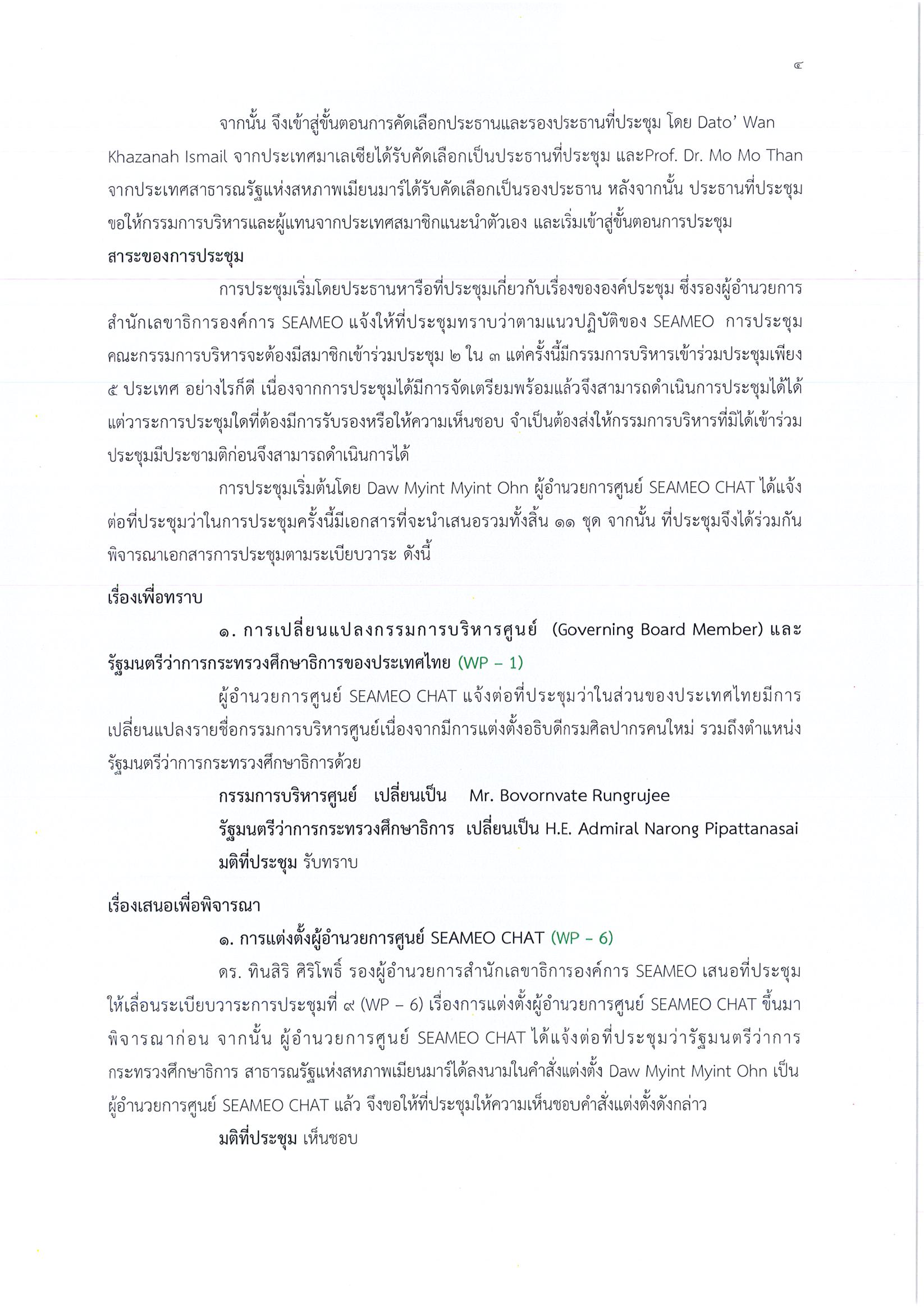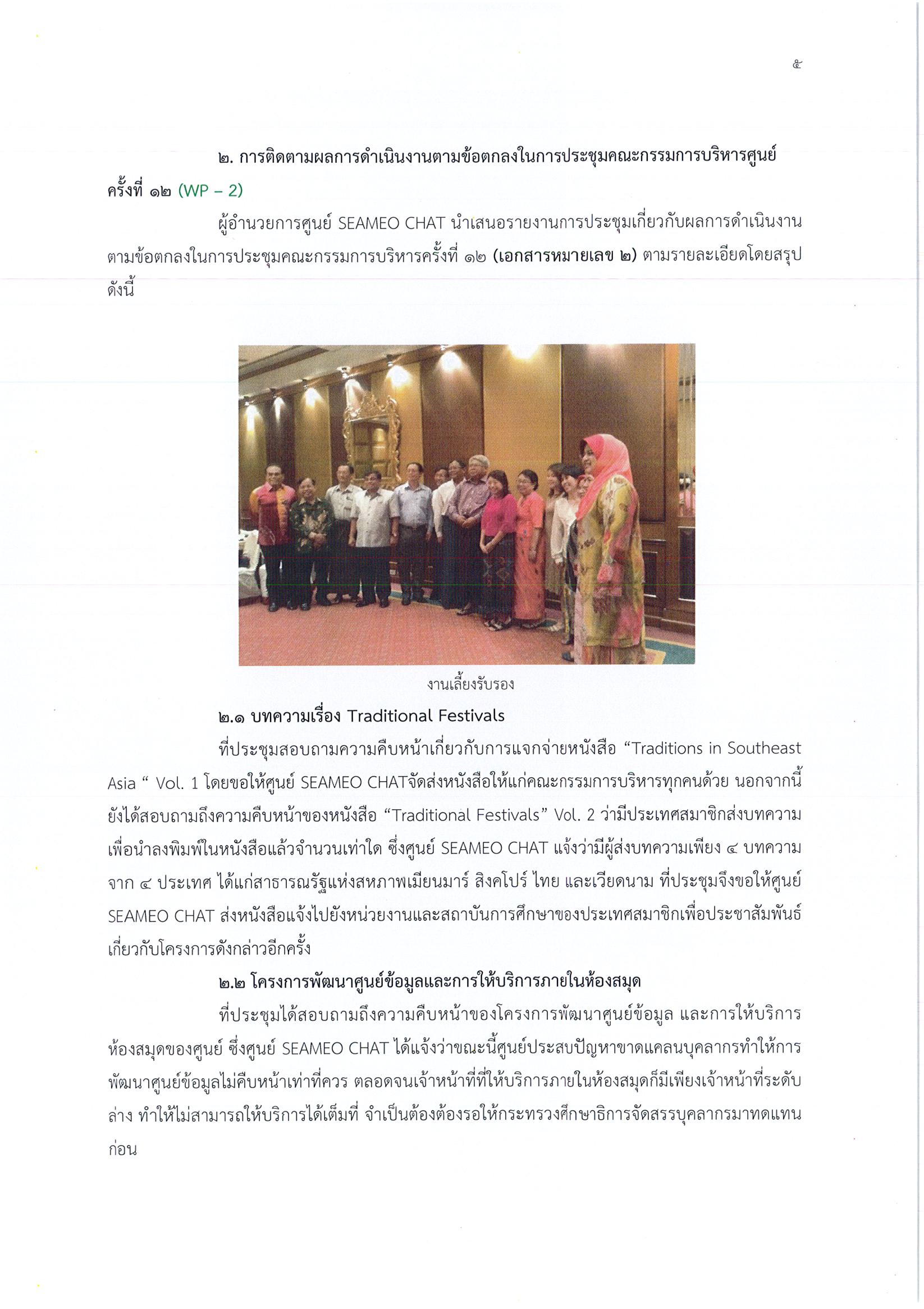 รายงานการเดินทางไปราชการเพื่อเข้าร่วมประชุมคณะกรรมการบริหารศูนย์ระดับภูมิภาคด้านการศึกษาประวัติศาสตร์ และประเพณีของซีมีโอ (SEAMEO CHAT) ครั้งที่ 13 ณ เมืองมัณฑะเลย์ ประเทศสาธารณรัฐแห่งสหภาพเมียนมาร์ ระหว่างวันที่ 9 – 11 ตุลาคม 2557
