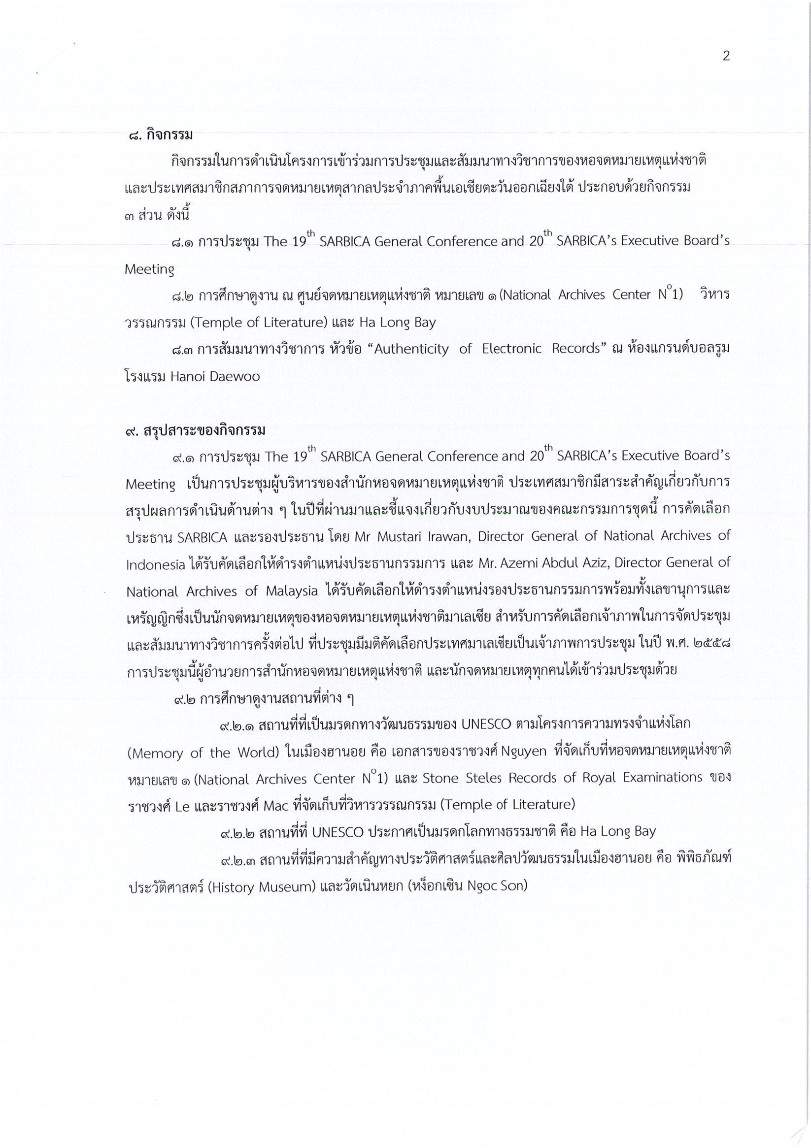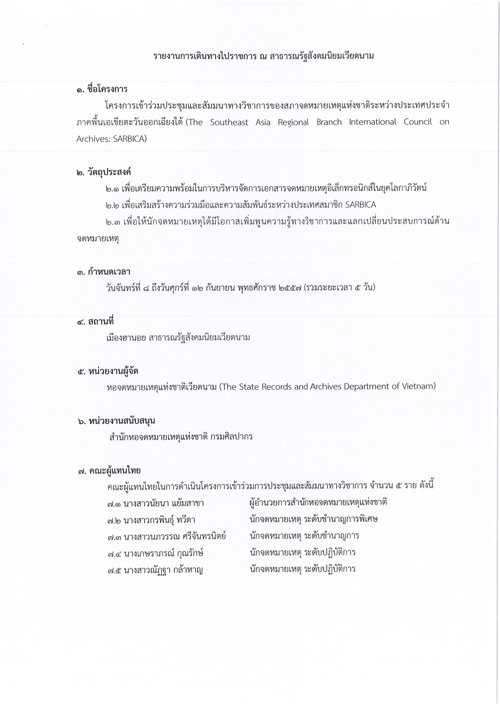 รายงานการเดินทางไปราชการ ณ สาธารณรัฐสังคมนิยมเวียดนาม ระหว่างวันที่ 8 – 12 กันยายน 2557 โครงการเข้าร่วมประชุมและสัมมนาทางวิชาการของสภาจดหมายเหตุแห่งชาติระหว่างประเทศประจำภาคพื้นเอเชียตะวันออกเฉียงใต้