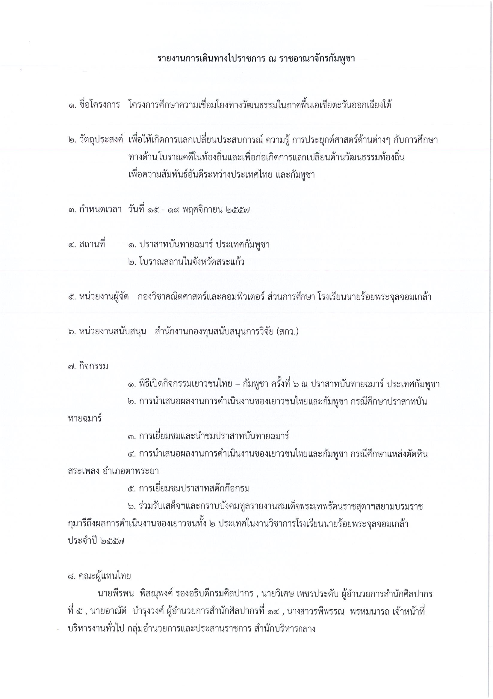 รายงานการเดินทางไปราชการ ณ ราชอาณาจักรกัมพูชา ระหว่างวันที่ 15 – 19พฤศจิกายน 2557 โครงการศึกษาความเชื่อมโยงทางวัฒนธรรมในภาคพื้นเอเชียตะวันออกเฉียงใต้