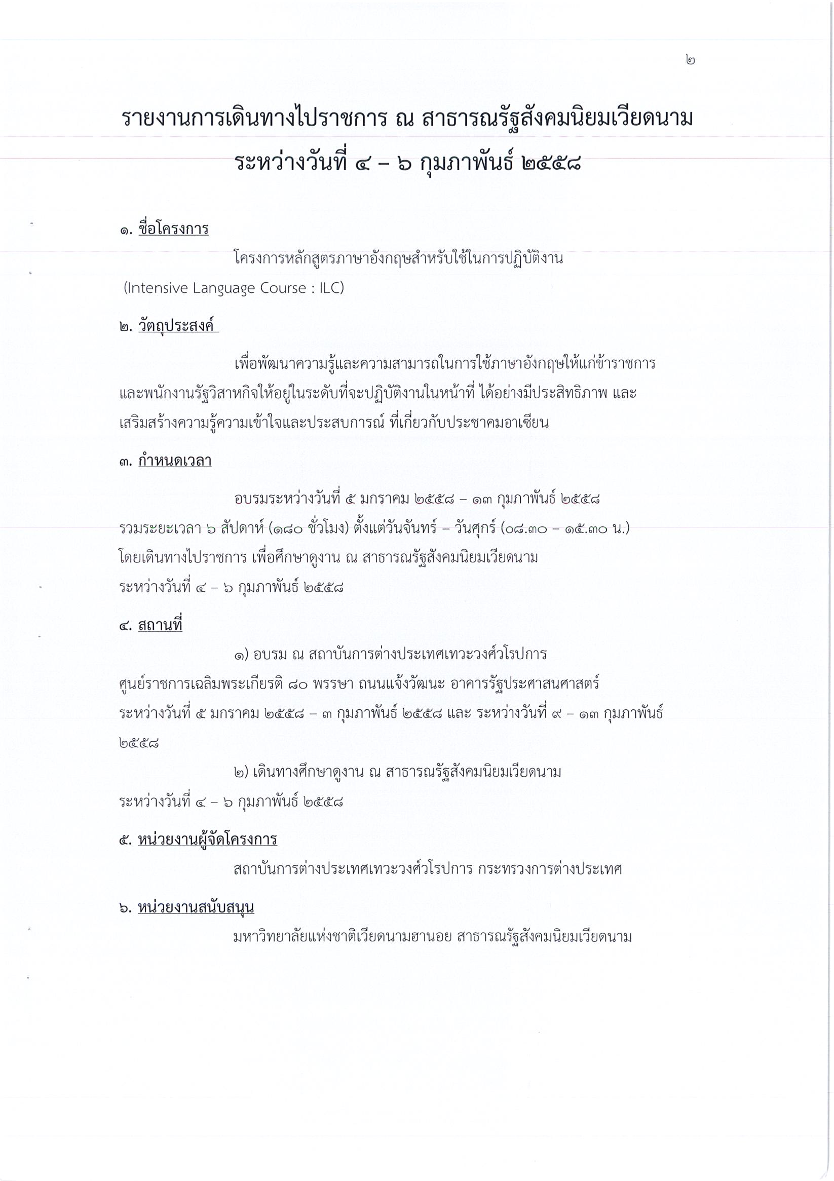 รายงานการเดินทางไปราชการ ณ สาธารณรัฐสังคมนิยมเวียดนาม ระหว่างวันที่ 4 – 6 กุมภาพันธ์ 2558 โครงการหลักสูตรภาษาอังกฤษสำหรับใช้ในการปฏิบัติงาน .