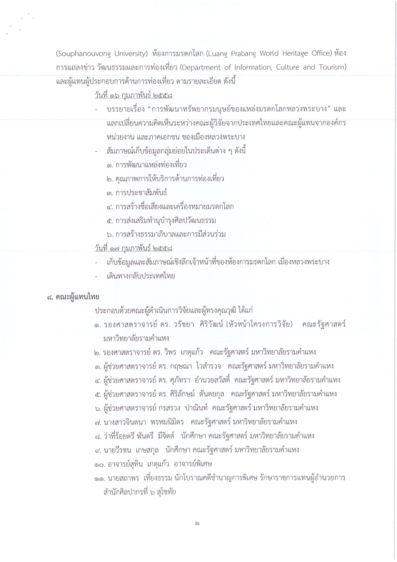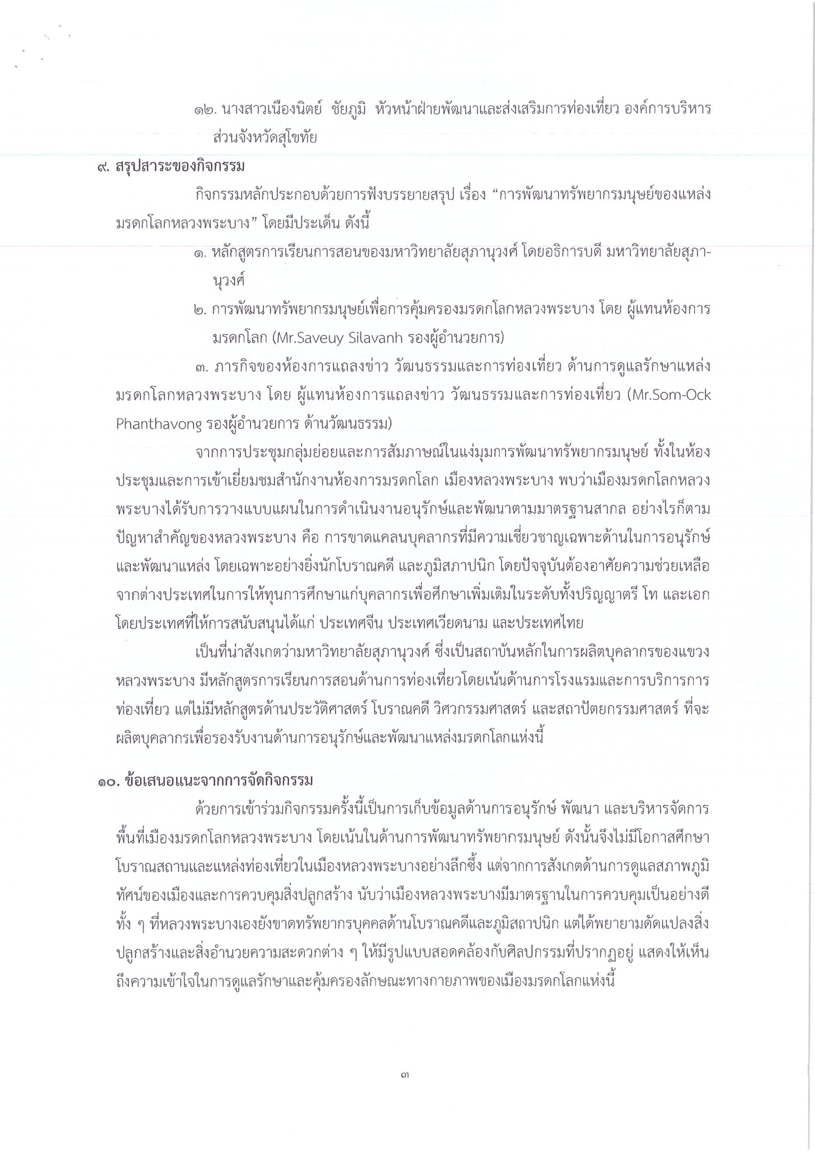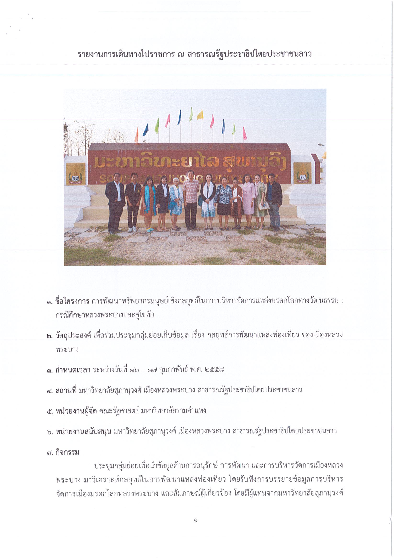 รายงานการเดินทางไปราชการ ณ สาธารณรัฐประชาชนลาว ระหว่างวันที่ 16 – 17 กุมภาพันธ์ 2558 โครงการพัฒนาทรัพยากรมนุษย์เชิงกลยุทธ์ในการบริหารจัดการแหล่งมรดกโลกทางวัฒนธรรม