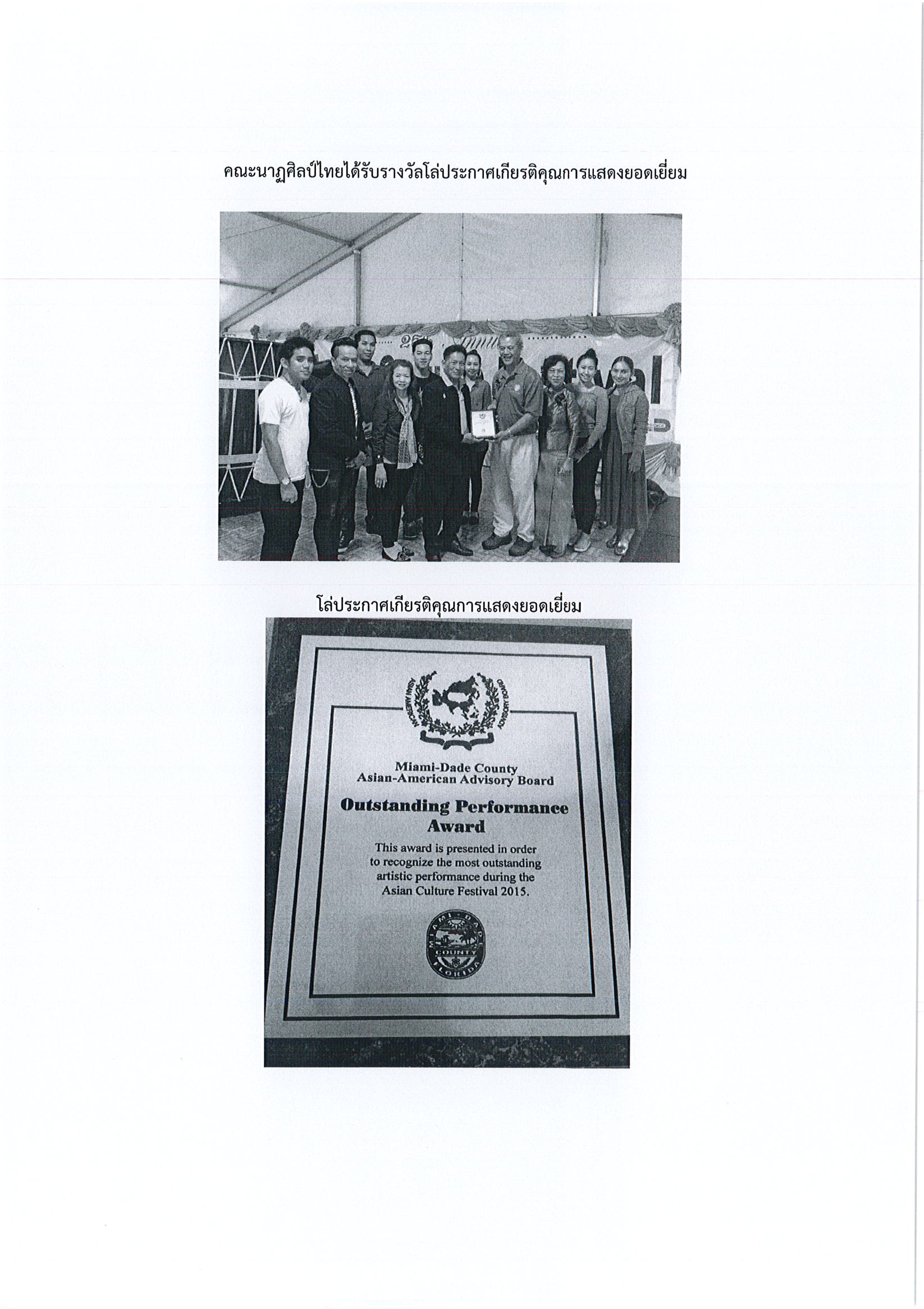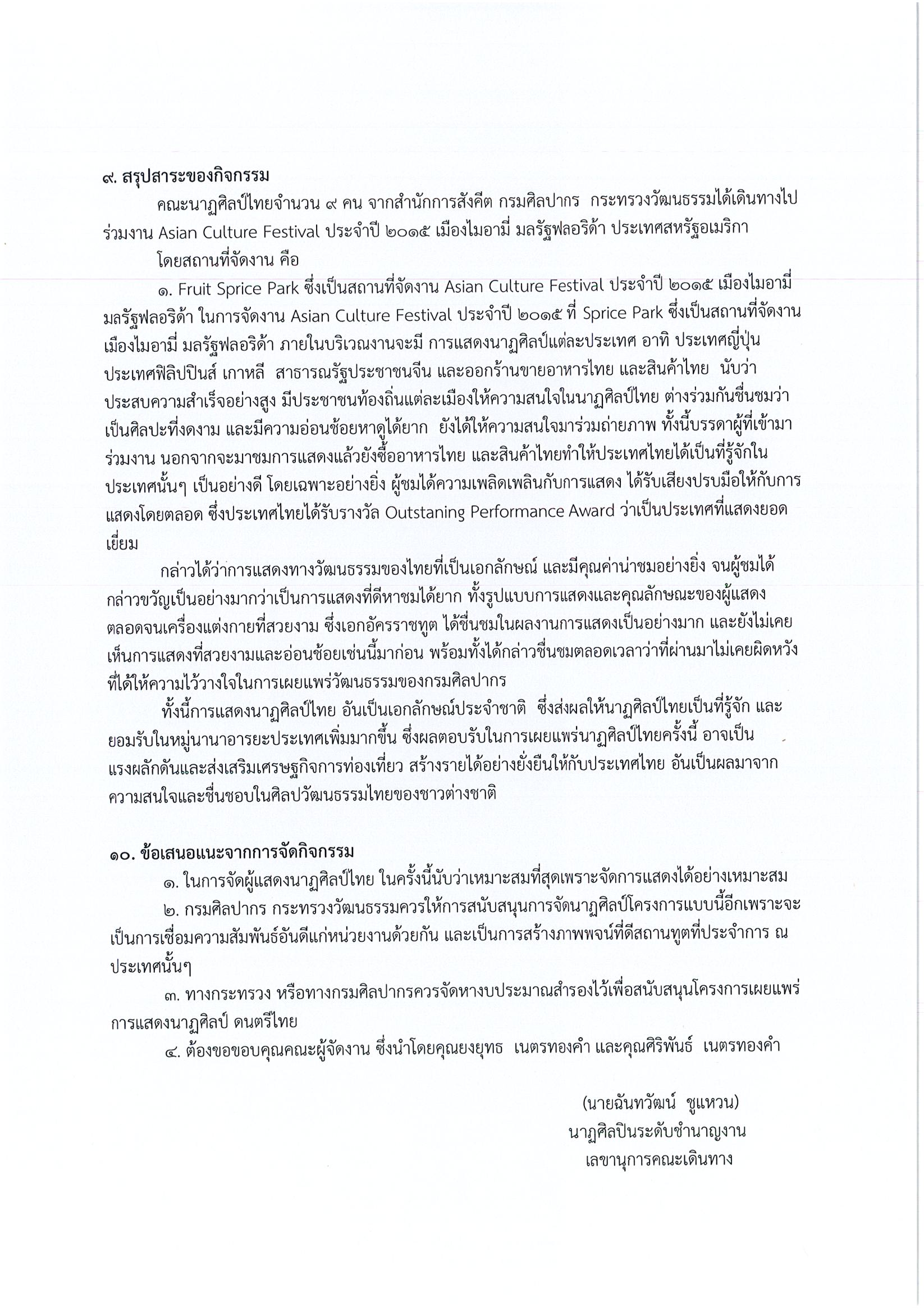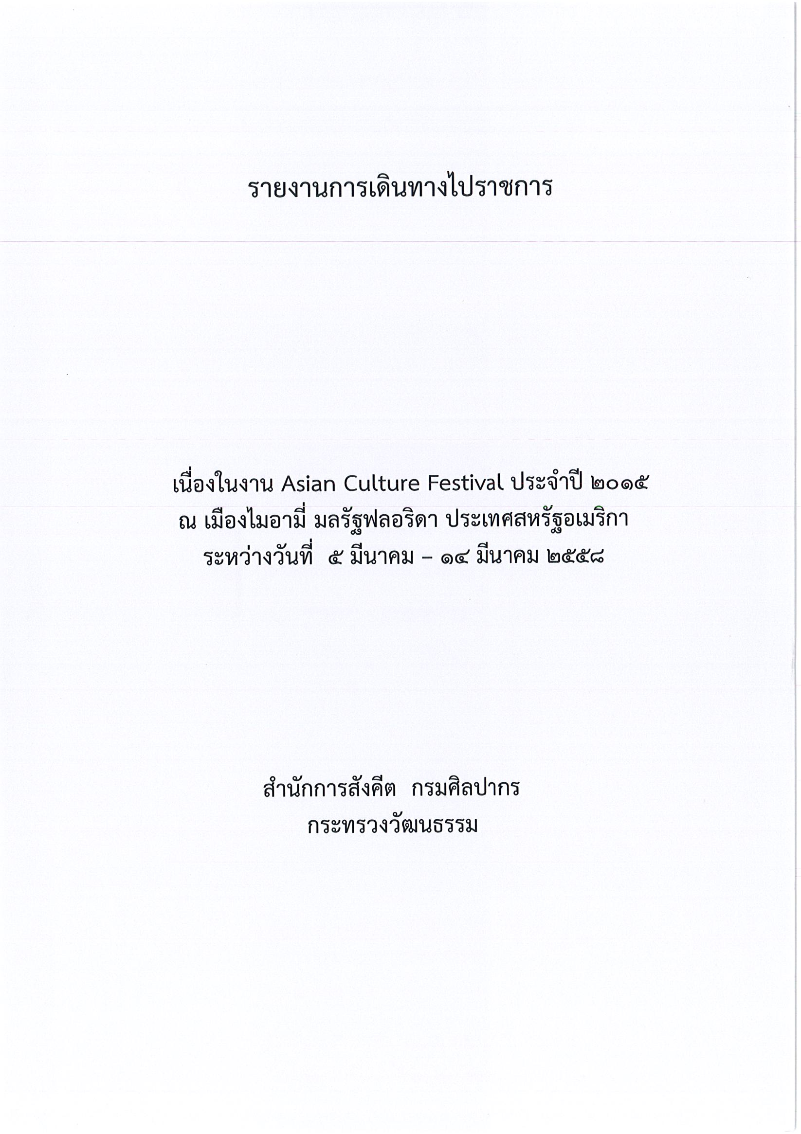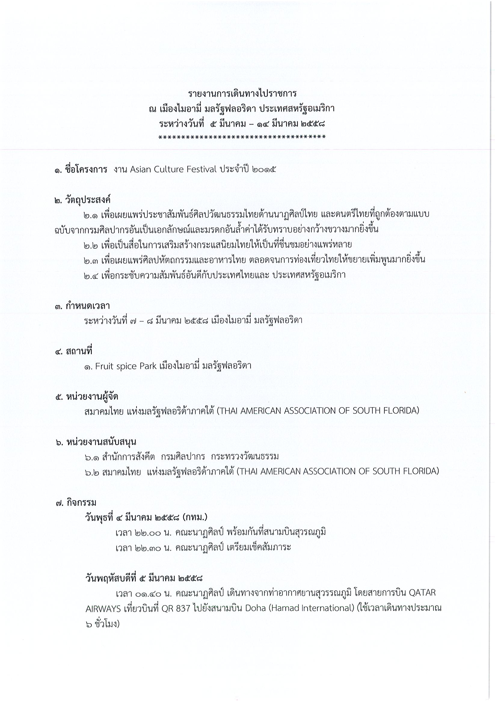 รายงานการเดินทางไปราชการ ณ สหรัฐอเมริกา ระหว่างวันที่ 5 – 14 มีนาคม 2558 โครงการ Asian Culture Festival เมืองไมอามี มลรัฐฟลอริดา