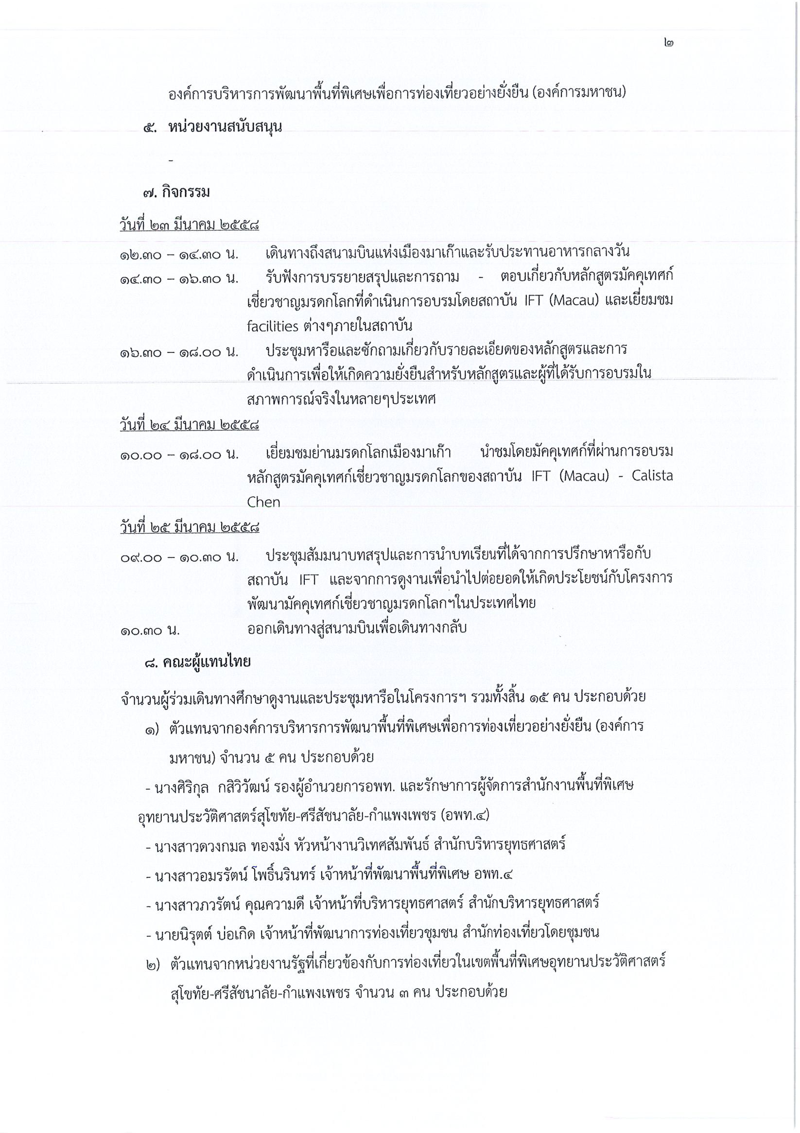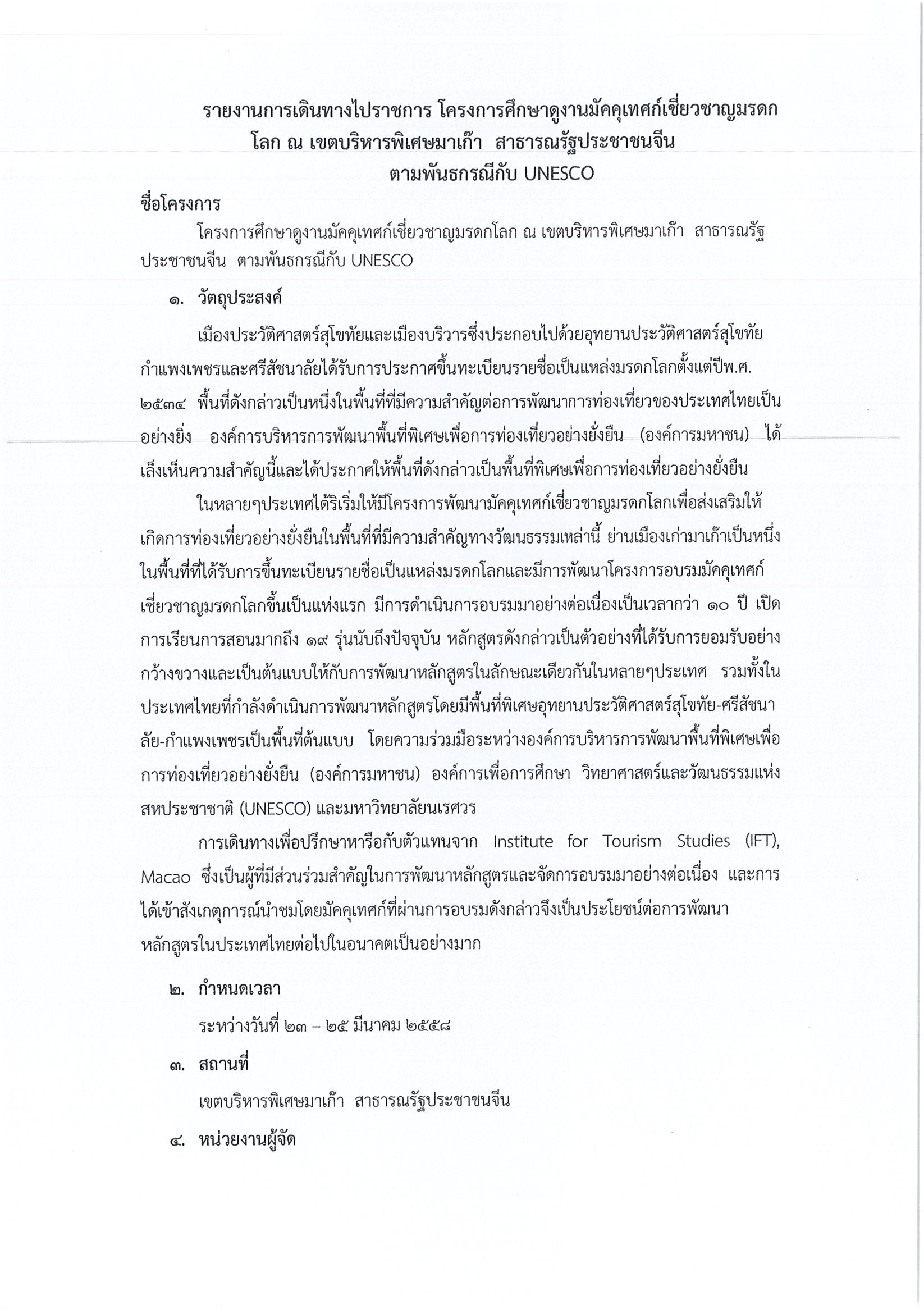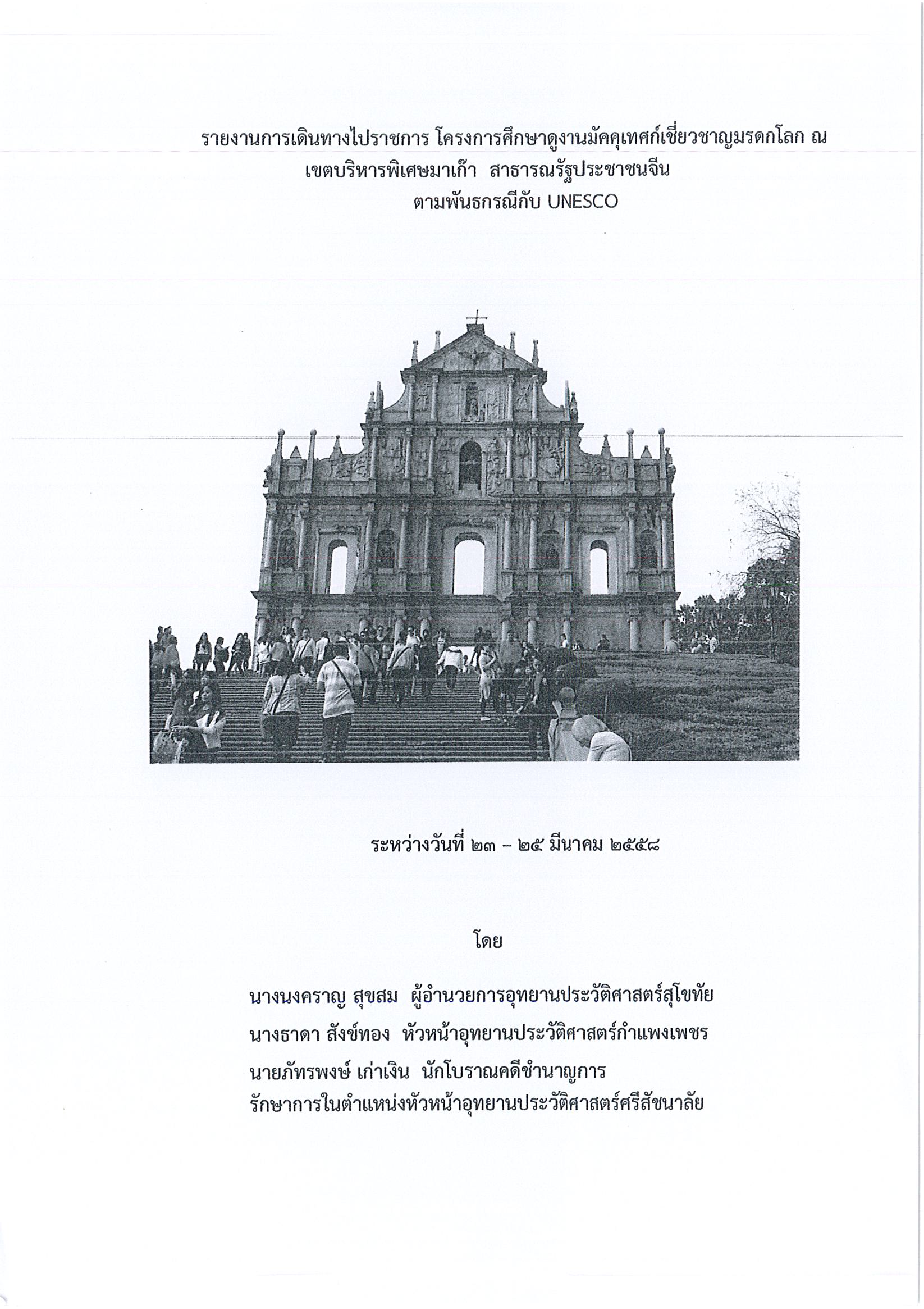 รายงานการเดินทางไปราชการ ณ เขตบริหารพิเศษมาเก๊า สาธารณรัฐประชาชนจีน ระหว่างวันที่ 23 – 25 มีนาคม 2558 โครงการศึกษาดูงานมัคคุเทศก์เชี่ยวชาญมรดกโลก ตามพันธกรณีกับ UNESCO