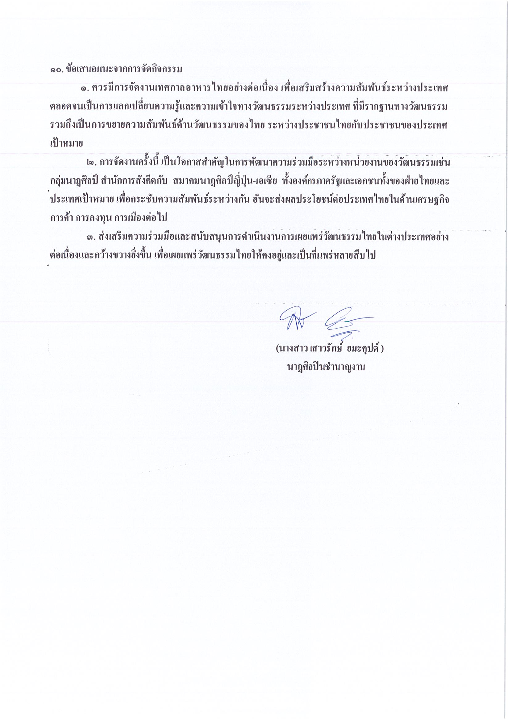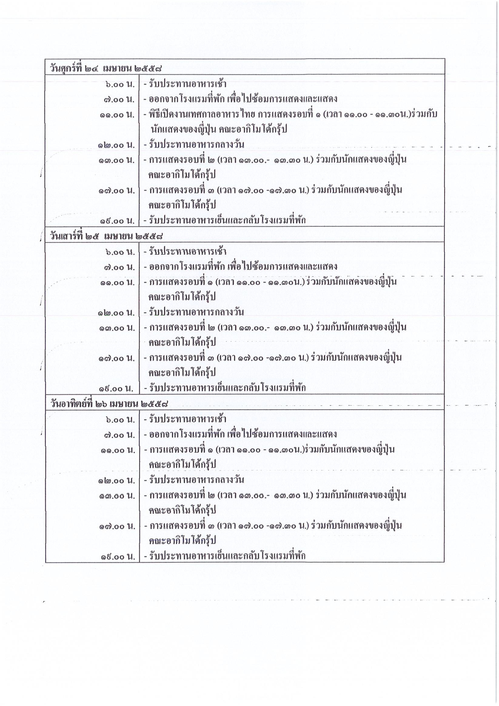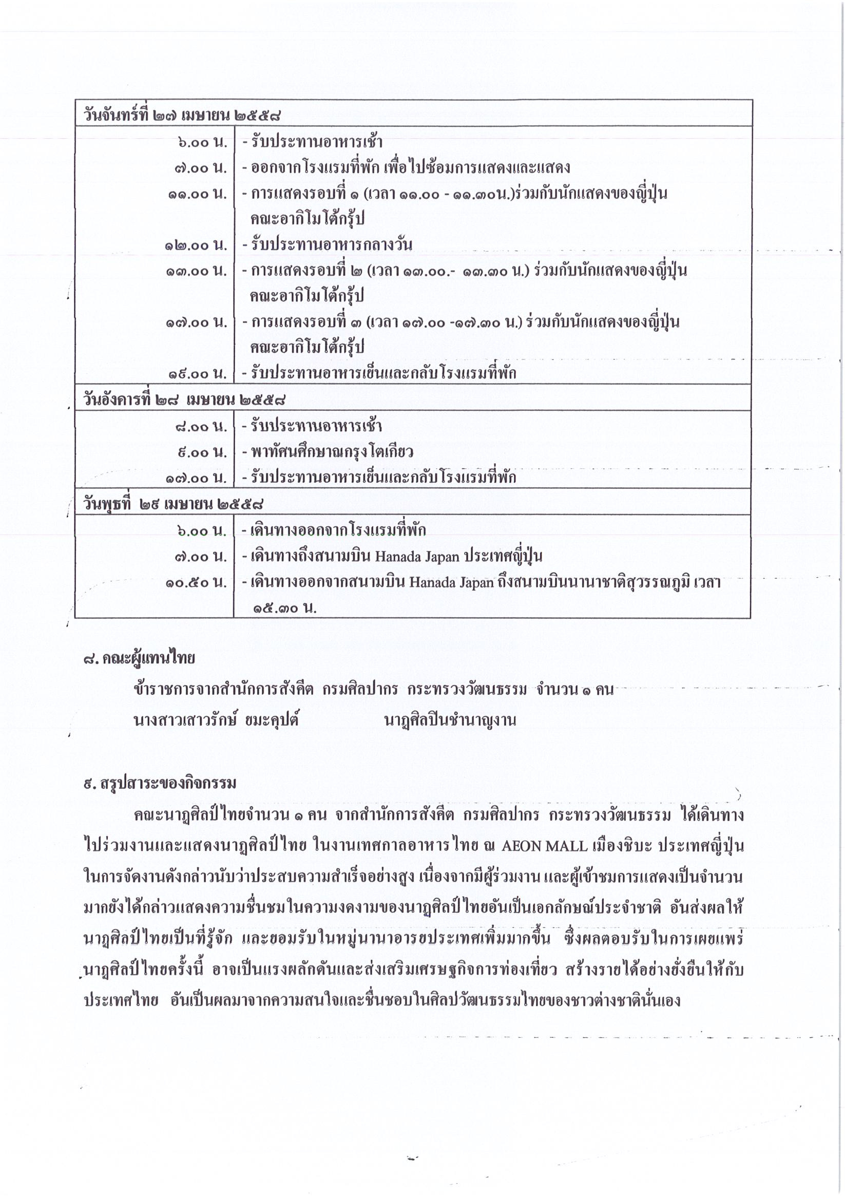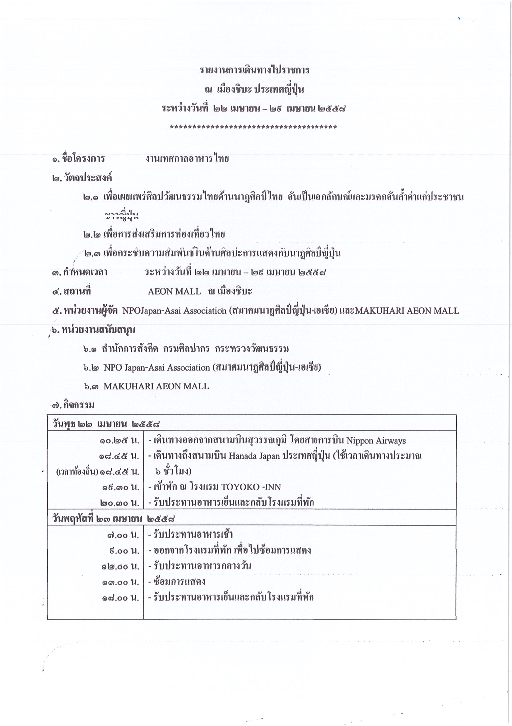 รายงานการเดินทางไปราชการ ณ ประเทศญี่ปุ่น ระหว่างวันที่ 22 – 29 เมษายน 2558 โครงการเทศกาลอาหารไทย เมืองชิบะ