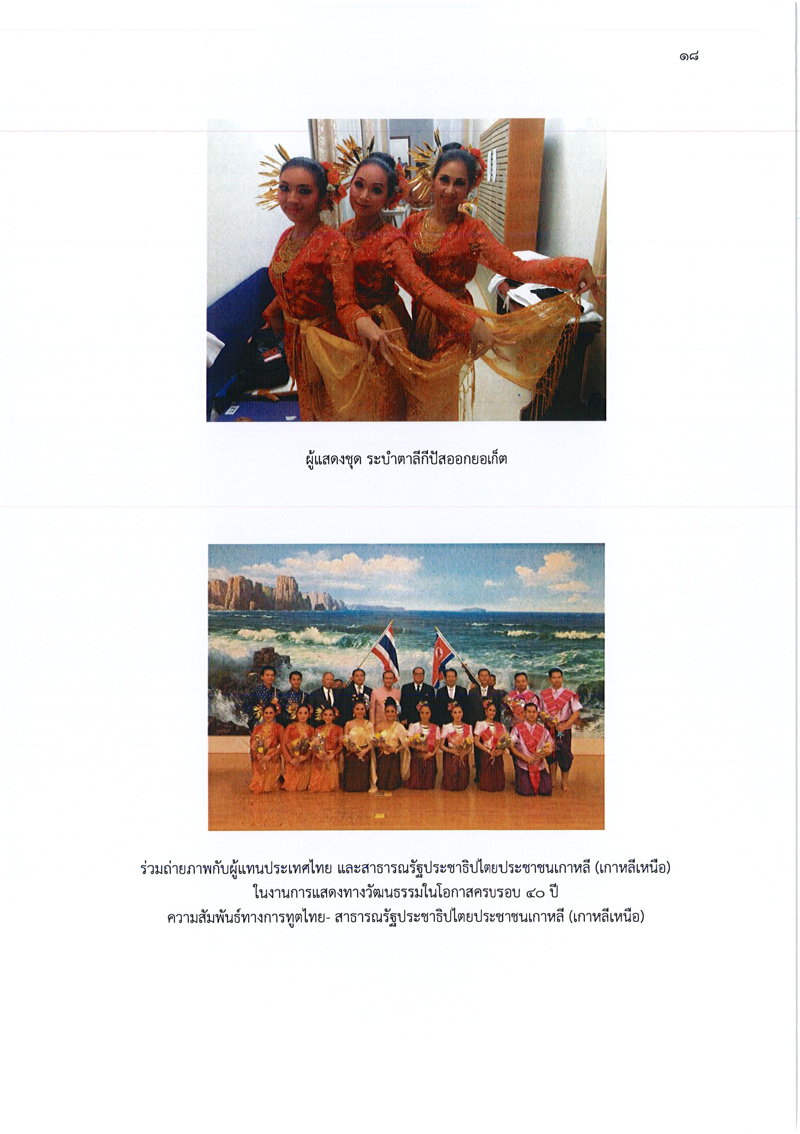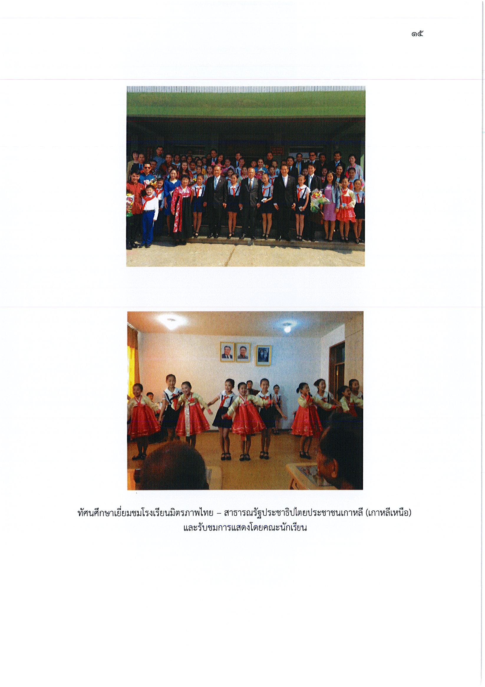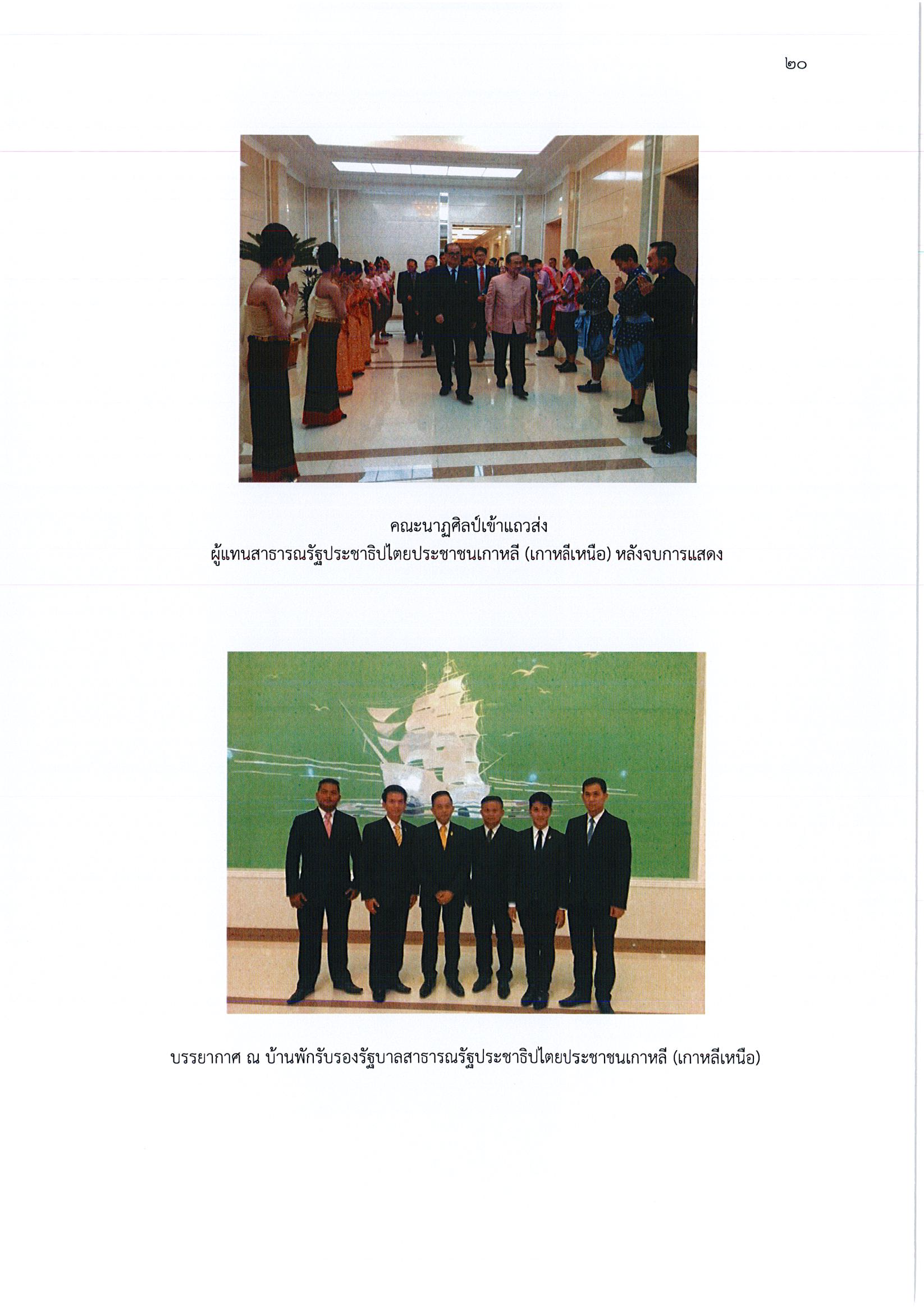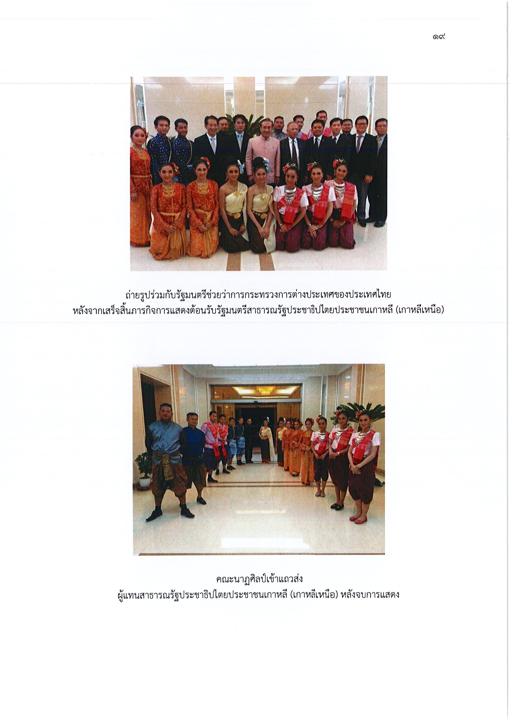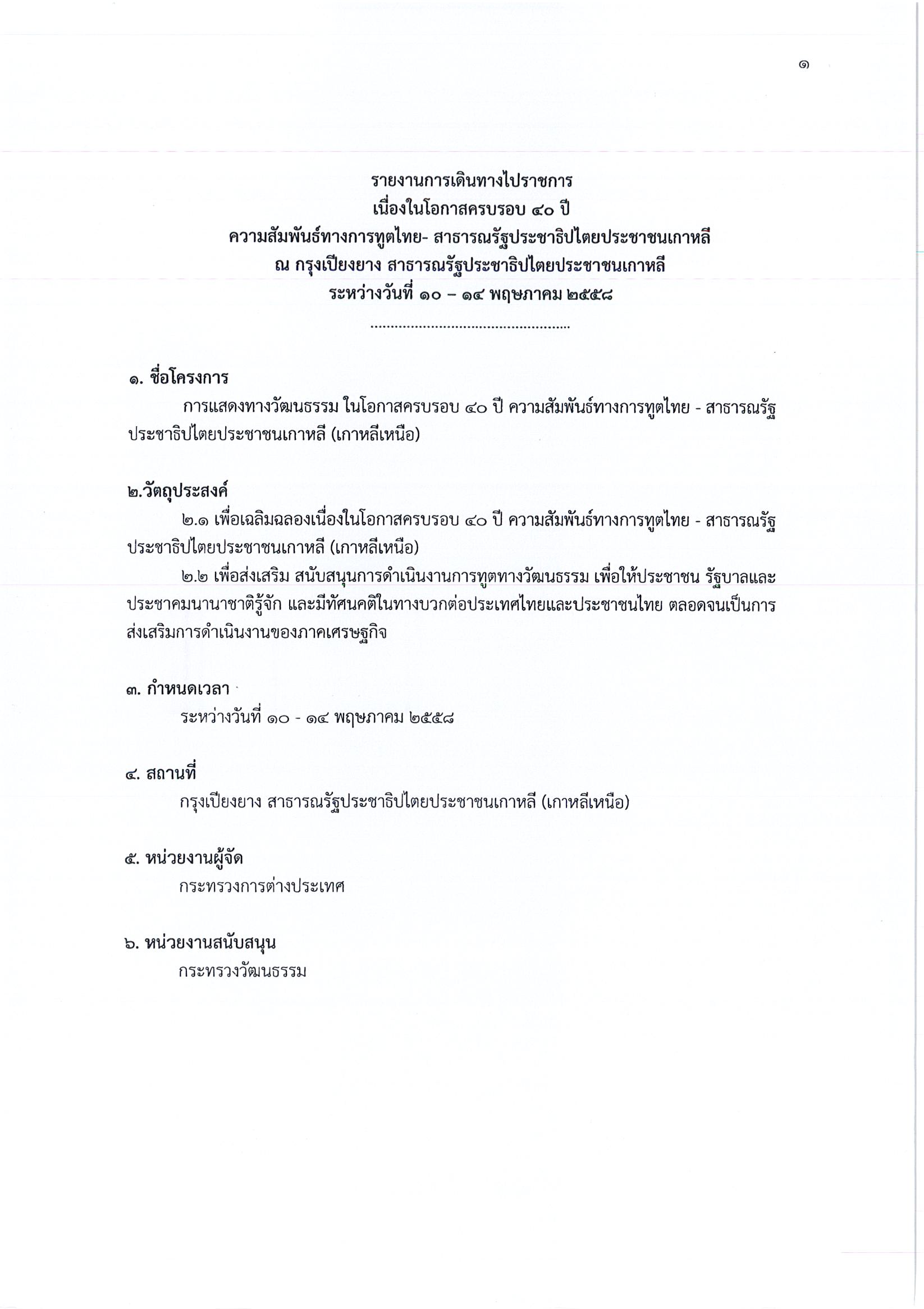 รายงานการเดินทางไปราชการ สาธารณรัฐประชาธิปไตยประชาชนเกาหลี (เกาหลีเหนือ) ระหว่างวันที่ 10 – 14 พฤษภาคม 2558 โครงการแสดงทางวัฒนธรรม ในโอกาสครบรอบ 40 ปี ความสัมพันธ์ทางการทูตไทย – เกาหลีเหนือ ณ กรุงเปียงยาง