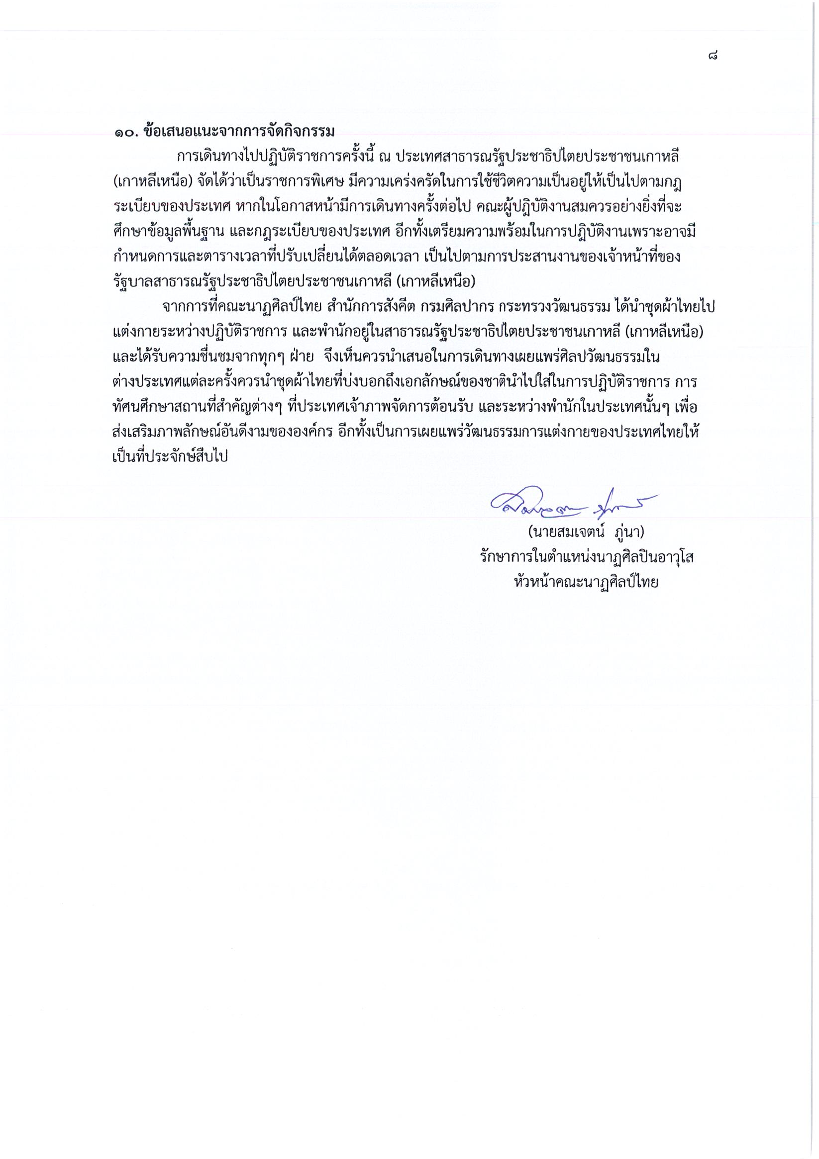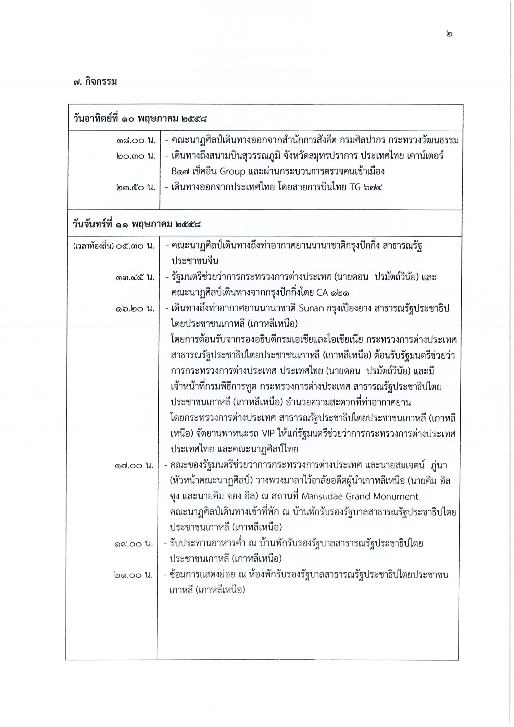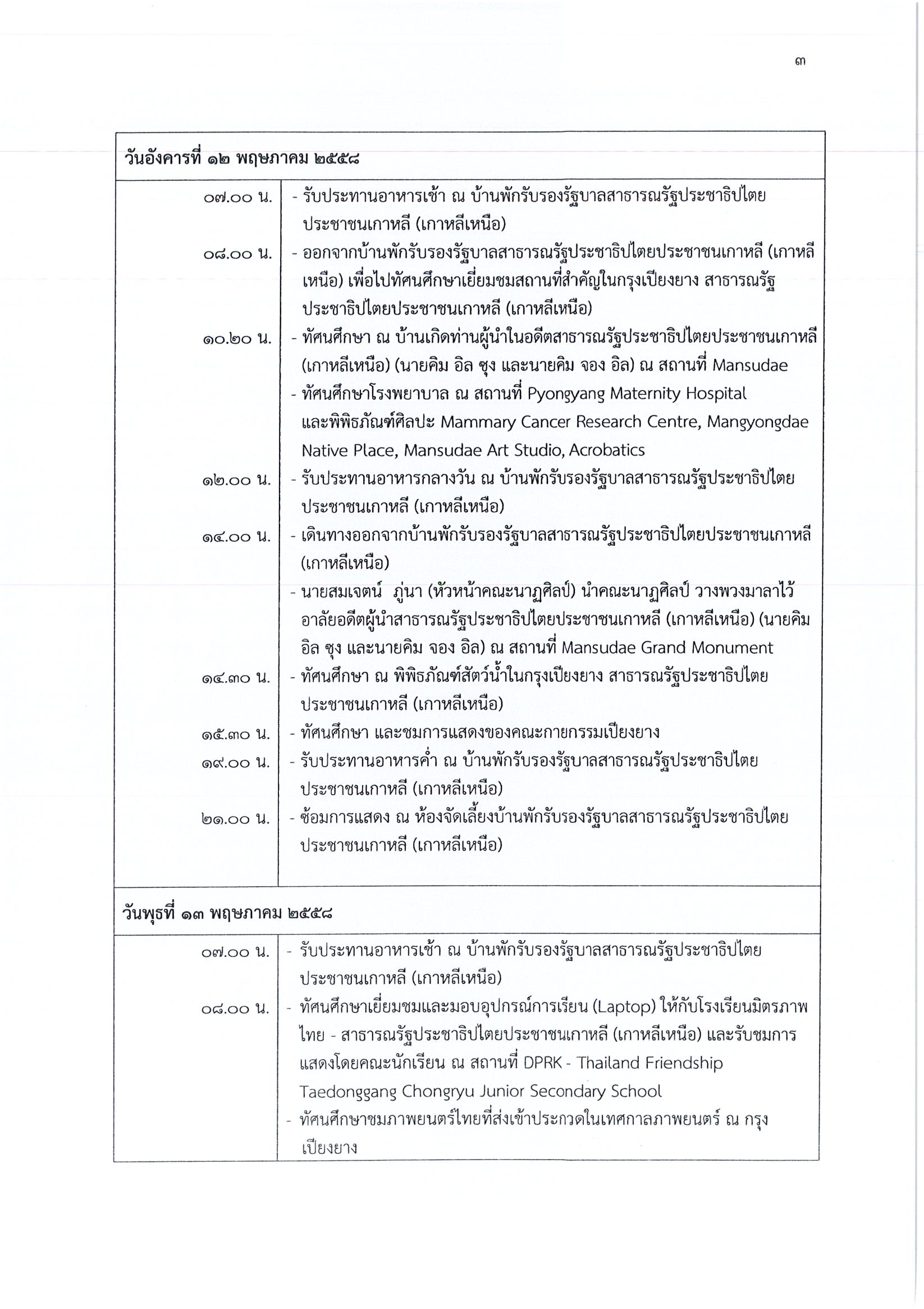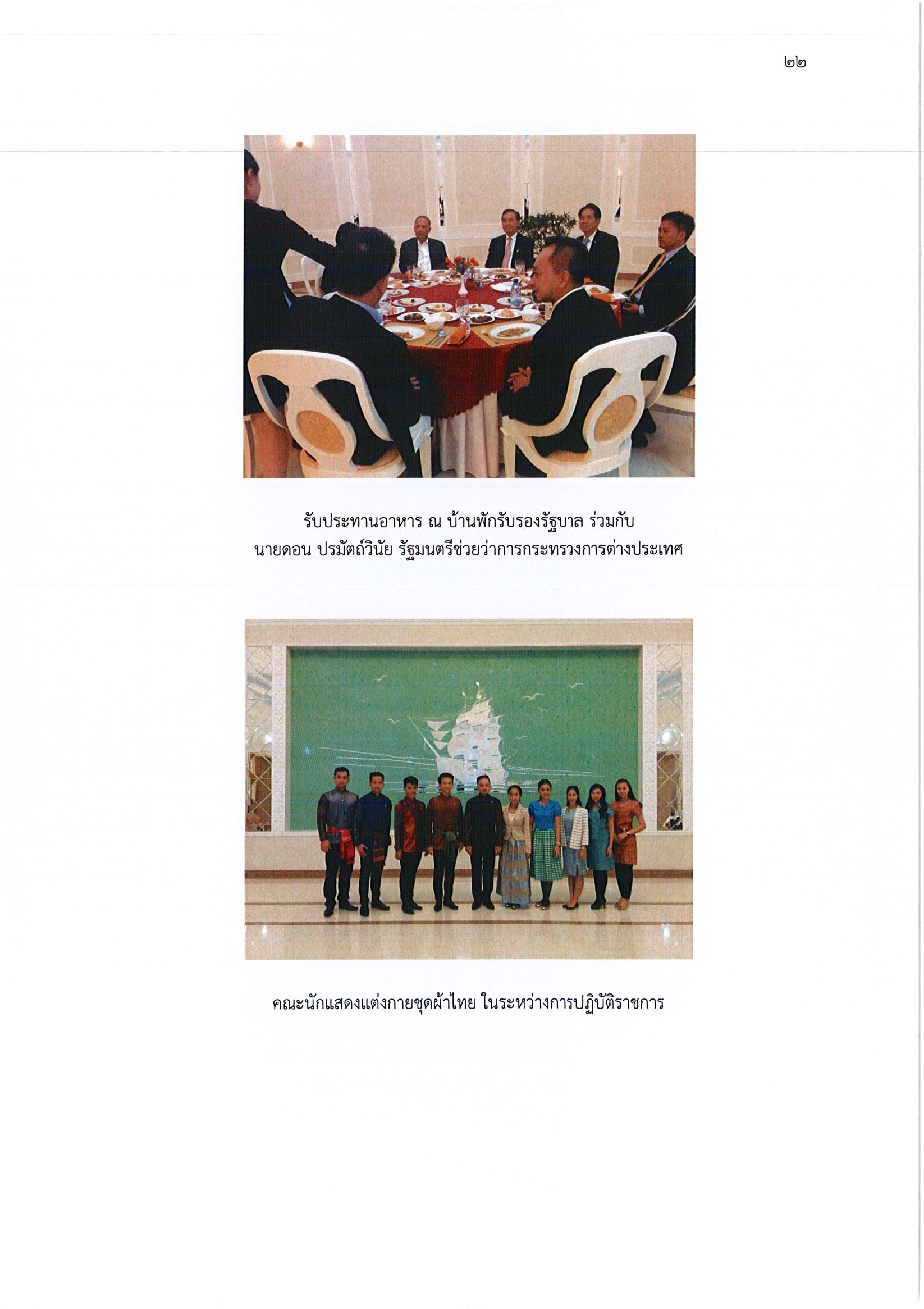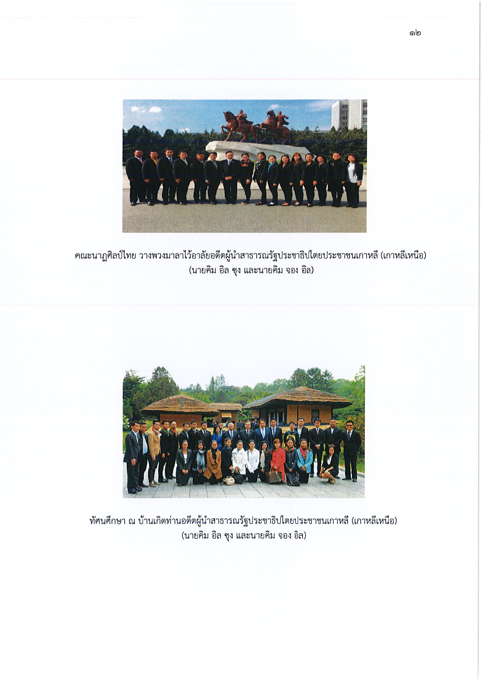 รายงานการเดินทางไปราชการ สาธารณรัฐประชาธิปไตยประชาชนเกาหลี (เกาหลีเหนือ) ระหว่างวันที่ 10 – 14 พฤษภาคม 2558 โครงการแสดงทางวัฒนธรรม ในโอกาสครบรอบ 40 ปี ความสัมพันธ์ทางการทูตไทย – เกาหลีเหนือ ณ กรุงเปียงยาง