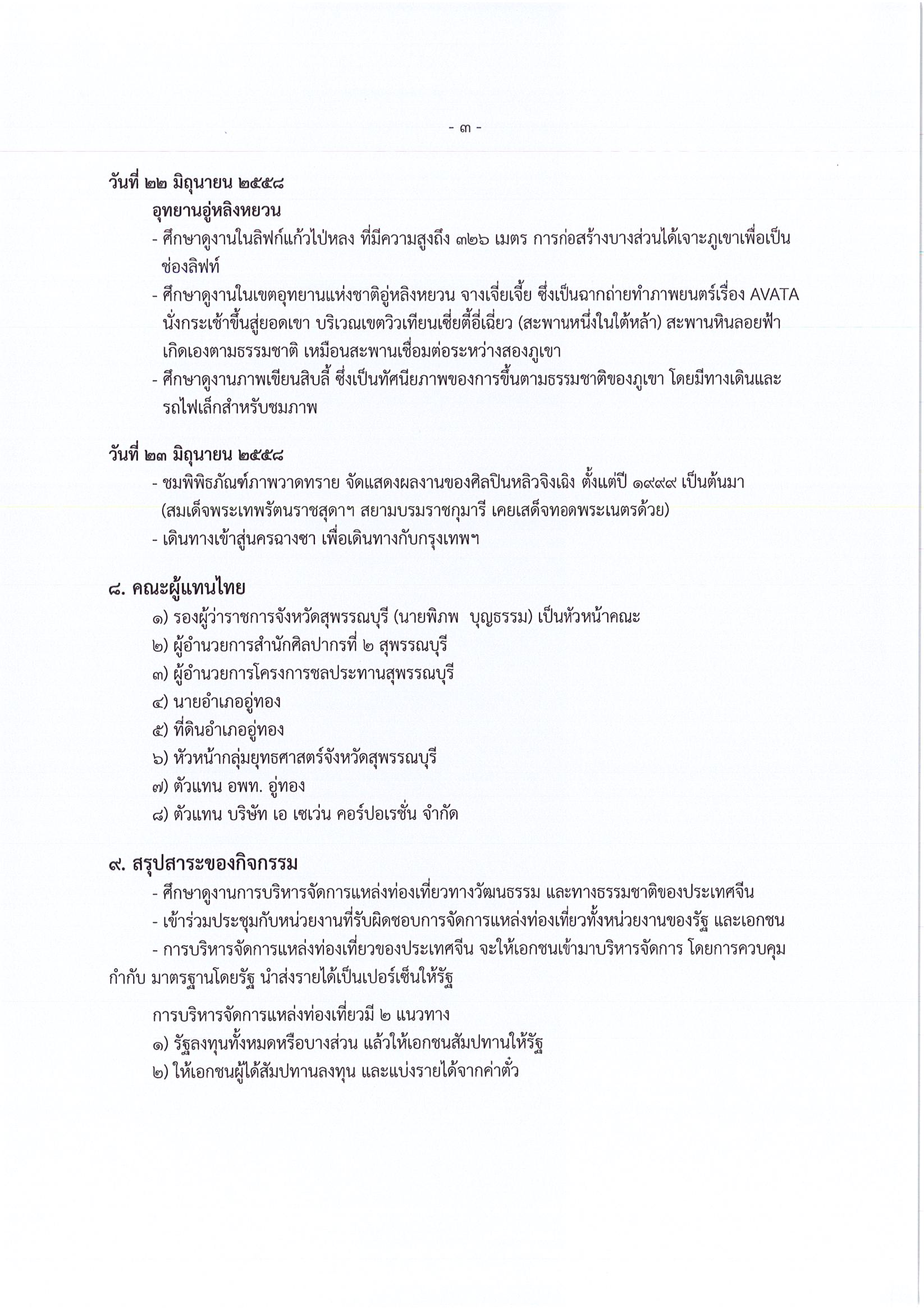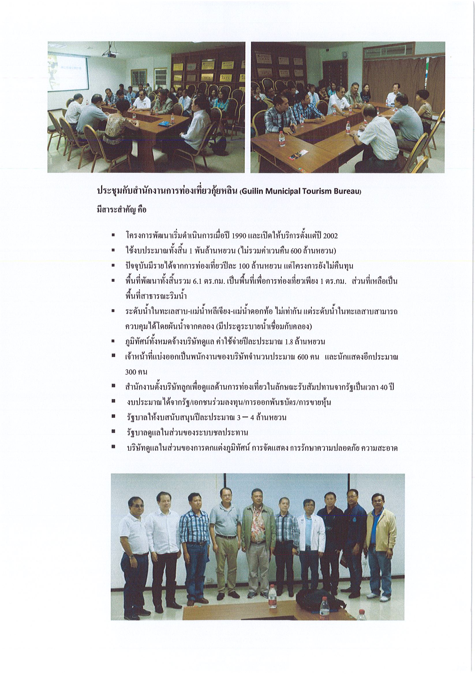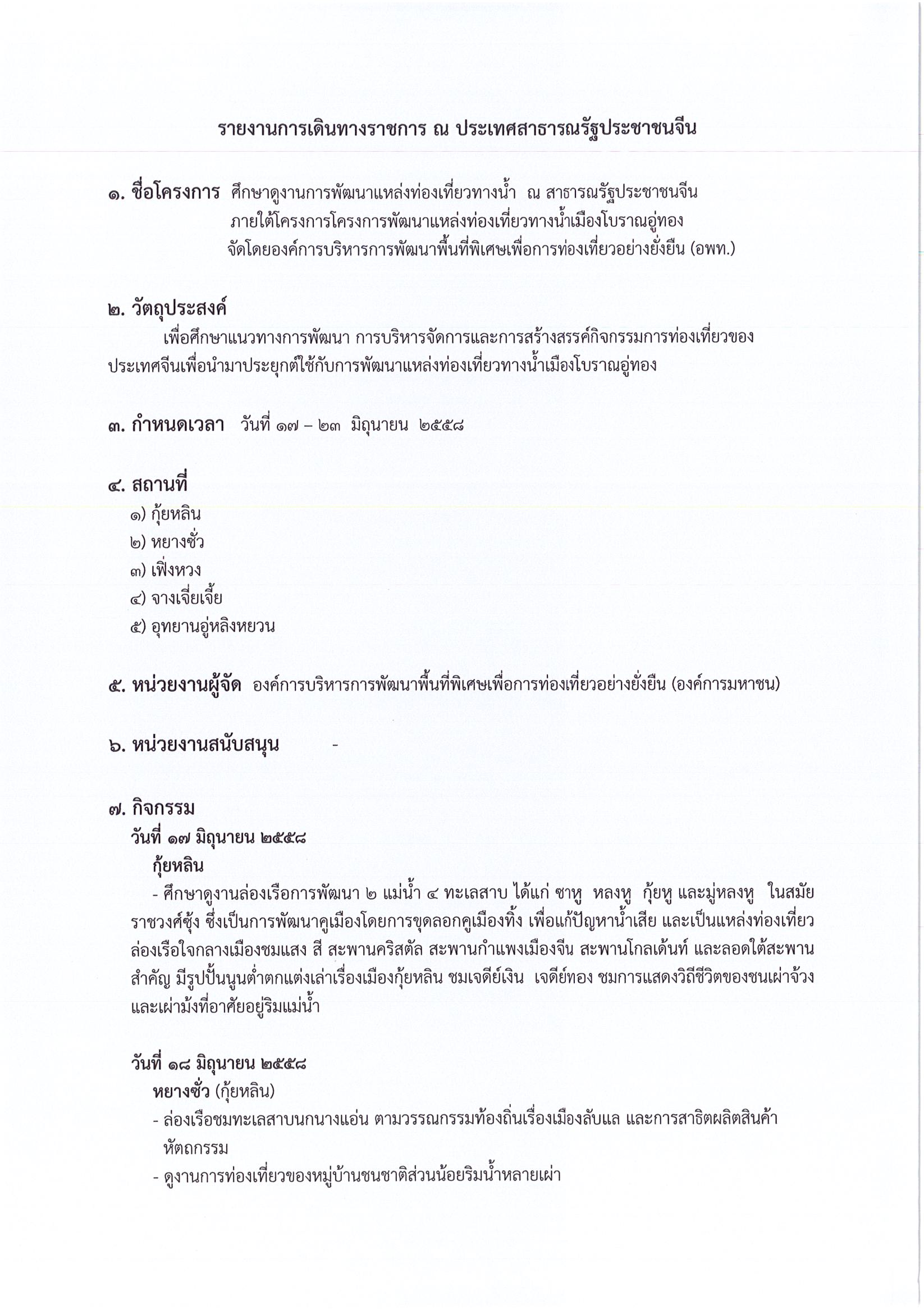 รายงานการเดินทางไปราชการ ณ สาธารรัฐประชาชนจีน ระหว่างวันที่ 12 – 23 มิถุนายน 2558 โครงการพัฒนาแหล่งท่องเที่ยวทางน้ำเมืองโบราณอู่ทอง