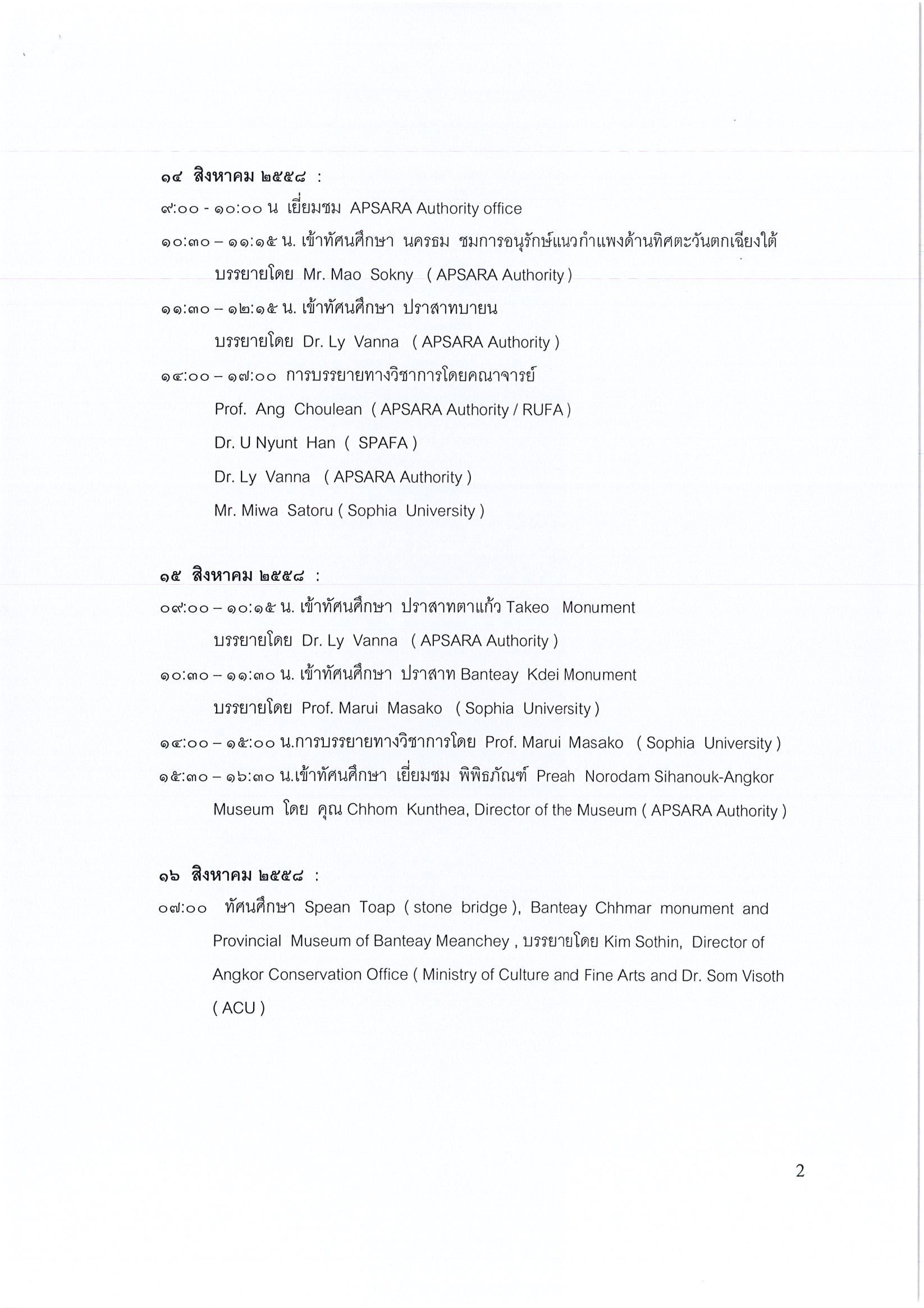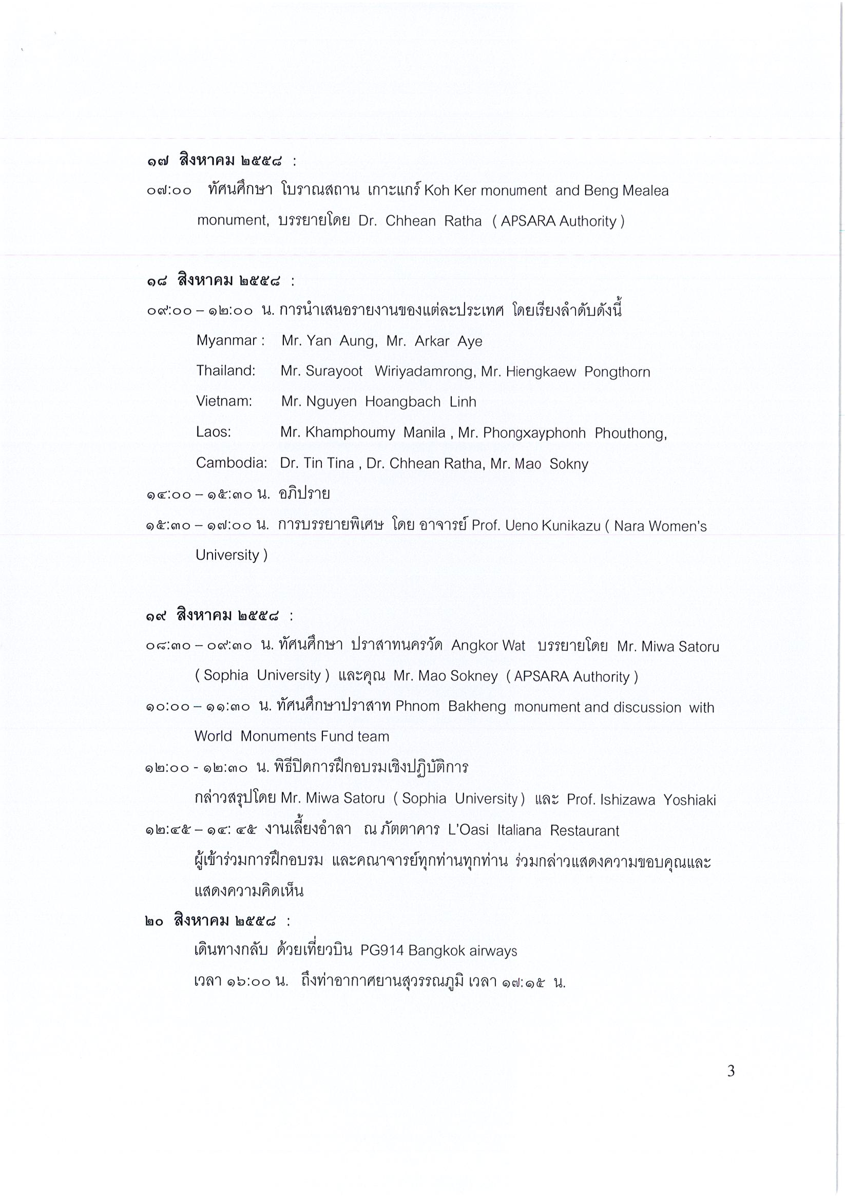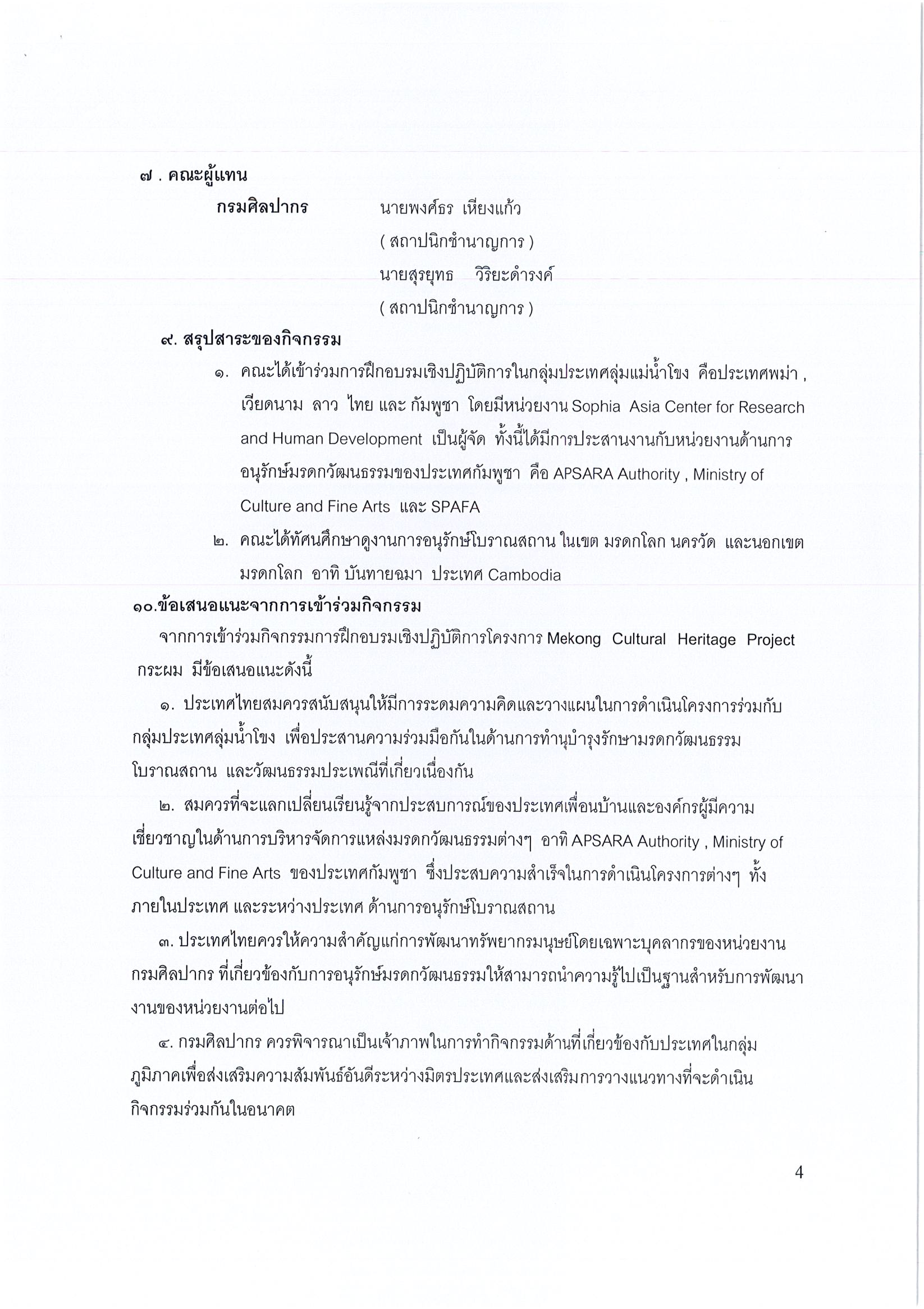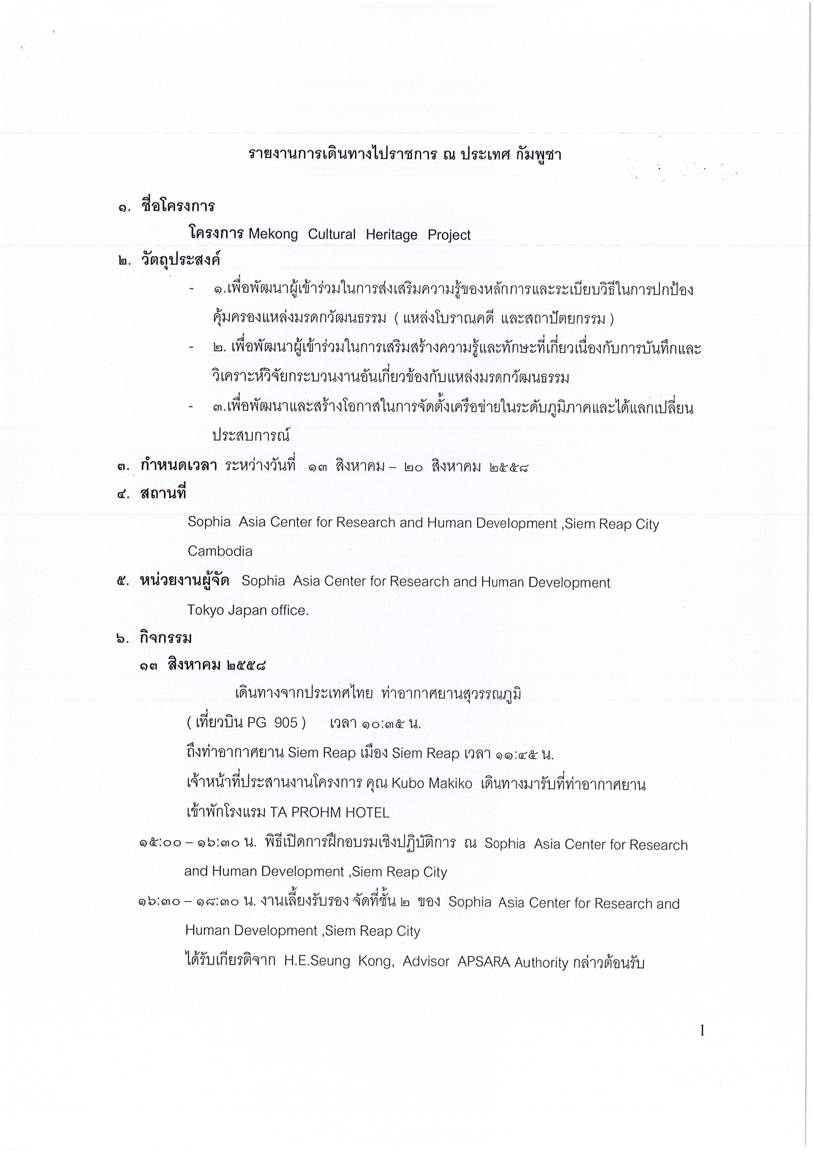 รายงานการเดินทางไปราชการ ณ ราชอาณาจักรกัมพูชา ระหว่างวันที่ 13 – 20 สิงหาคม 2558 โครงการ Mekong Cultural Heritage Project