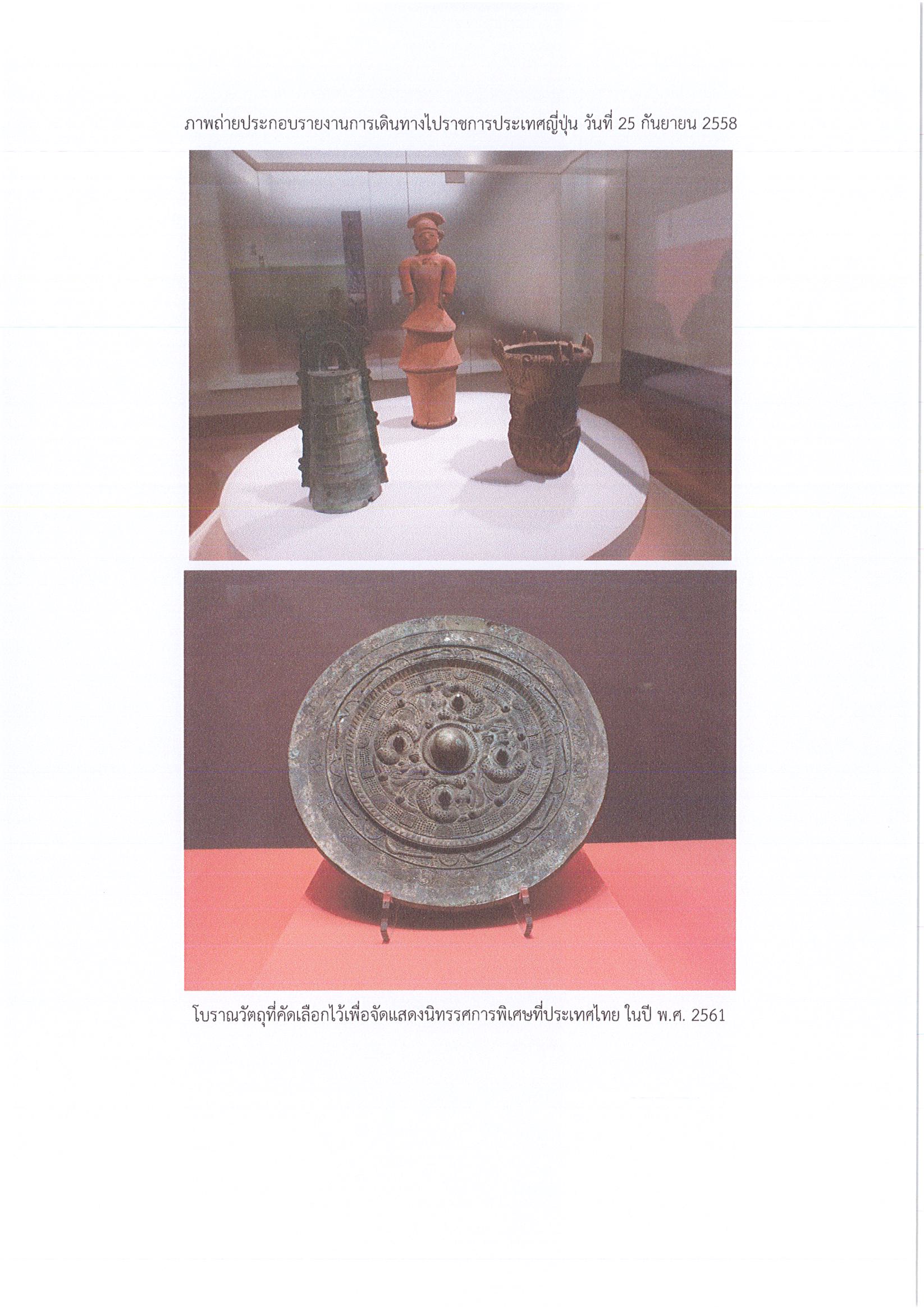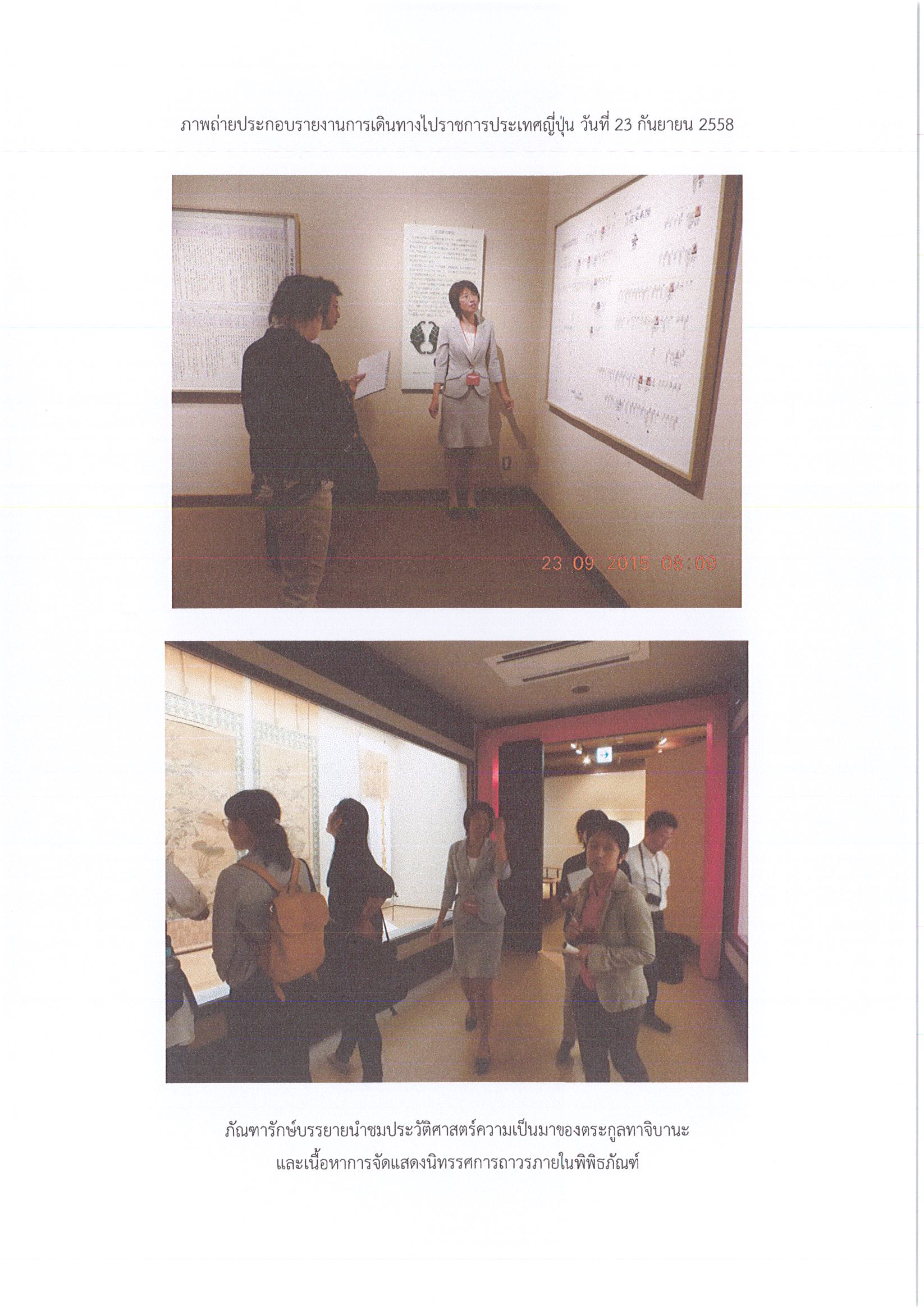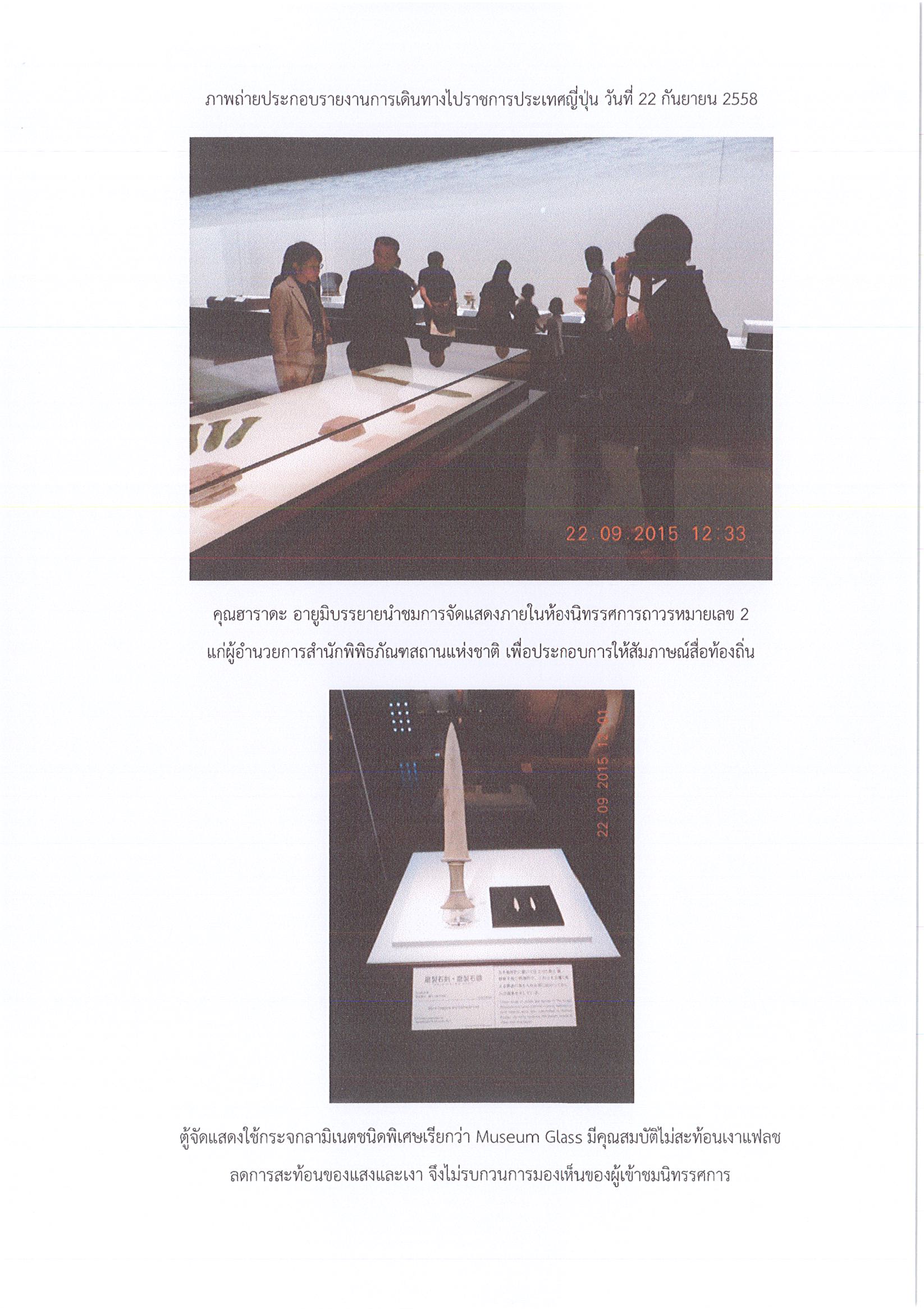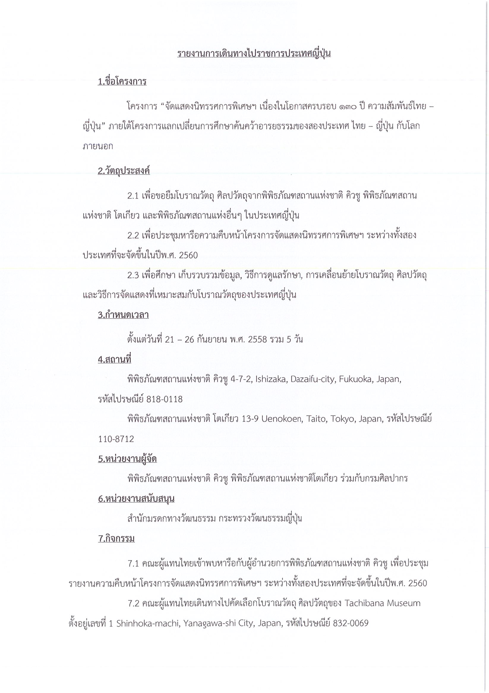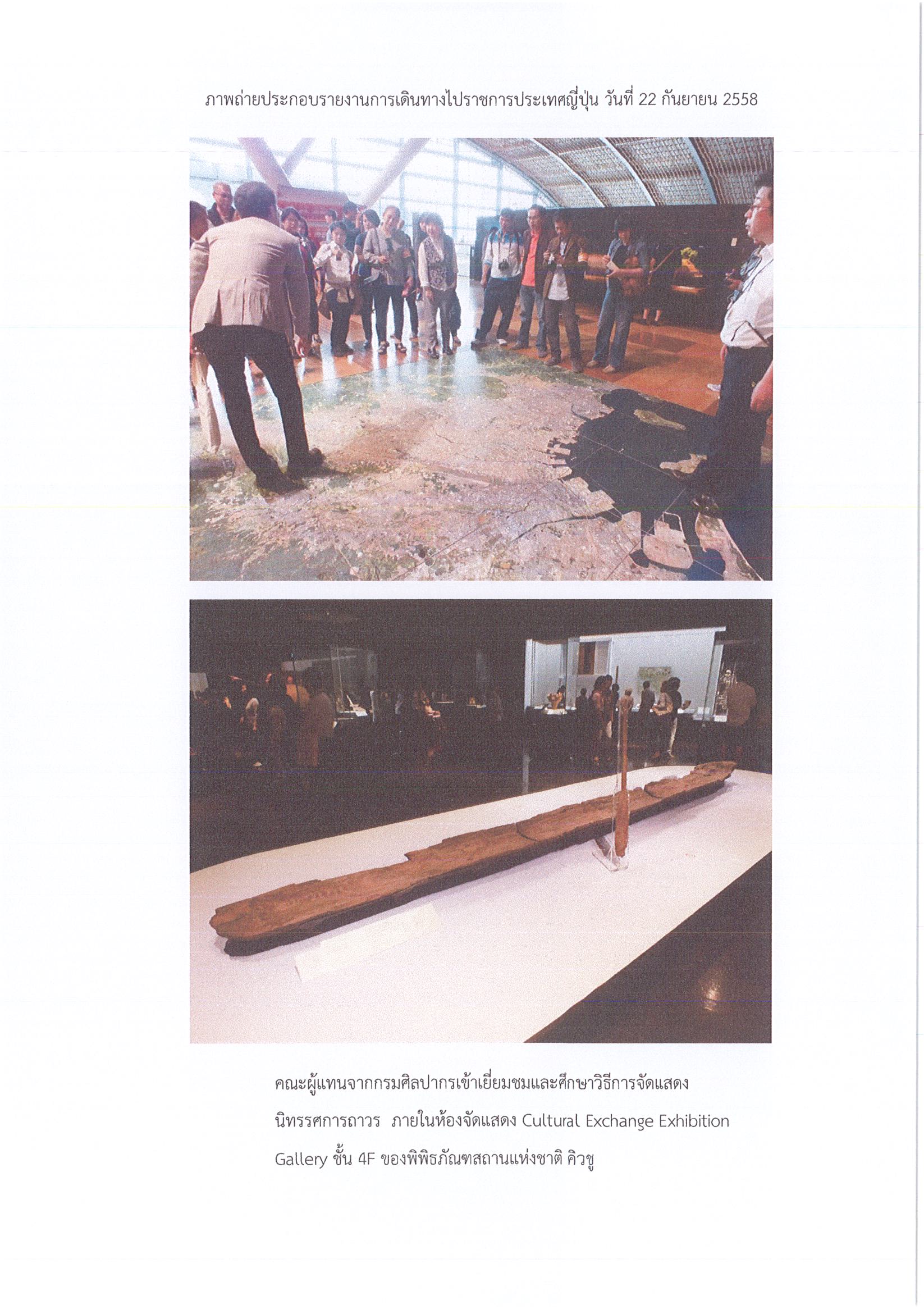 รายงานการเดินทางไปราชการ ณ ประเทศญี่ปุ่น ระหว่างวันที่ 21 – 26 กันยายน 2558 โครงการจัดแสดงนิทรรศการพิเศษ เนื่องในโอกาสครบรอบ 130 ปี ความสัมพันธ์ไทย – ญี่ปุ่น ภายใต้โครงการแลกเปลี่ยนการศึกษาค้นคว้าอารยธรรมของสองประเทศ ไทย – ญี่ปุ่น กับโลกภายนอก
