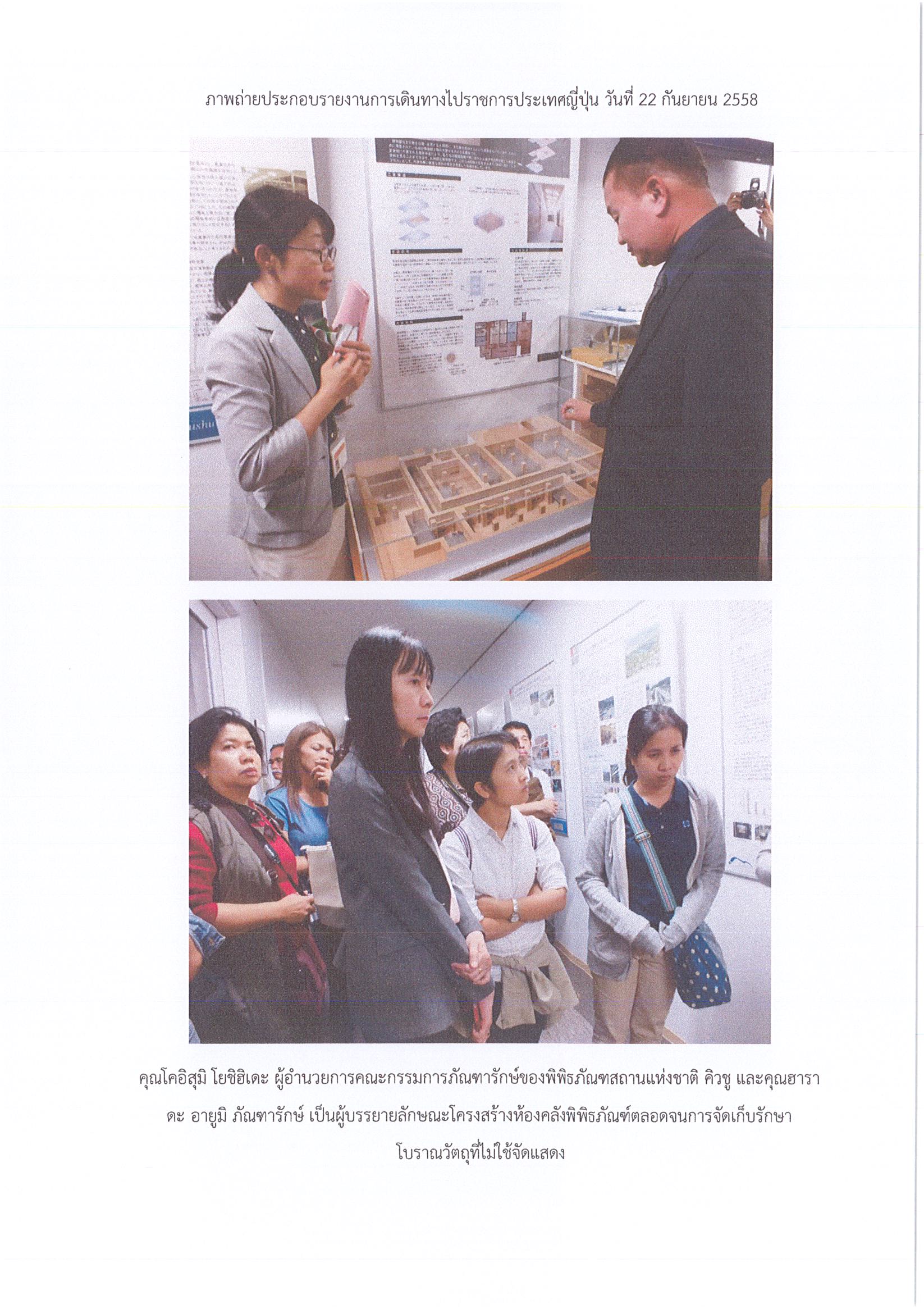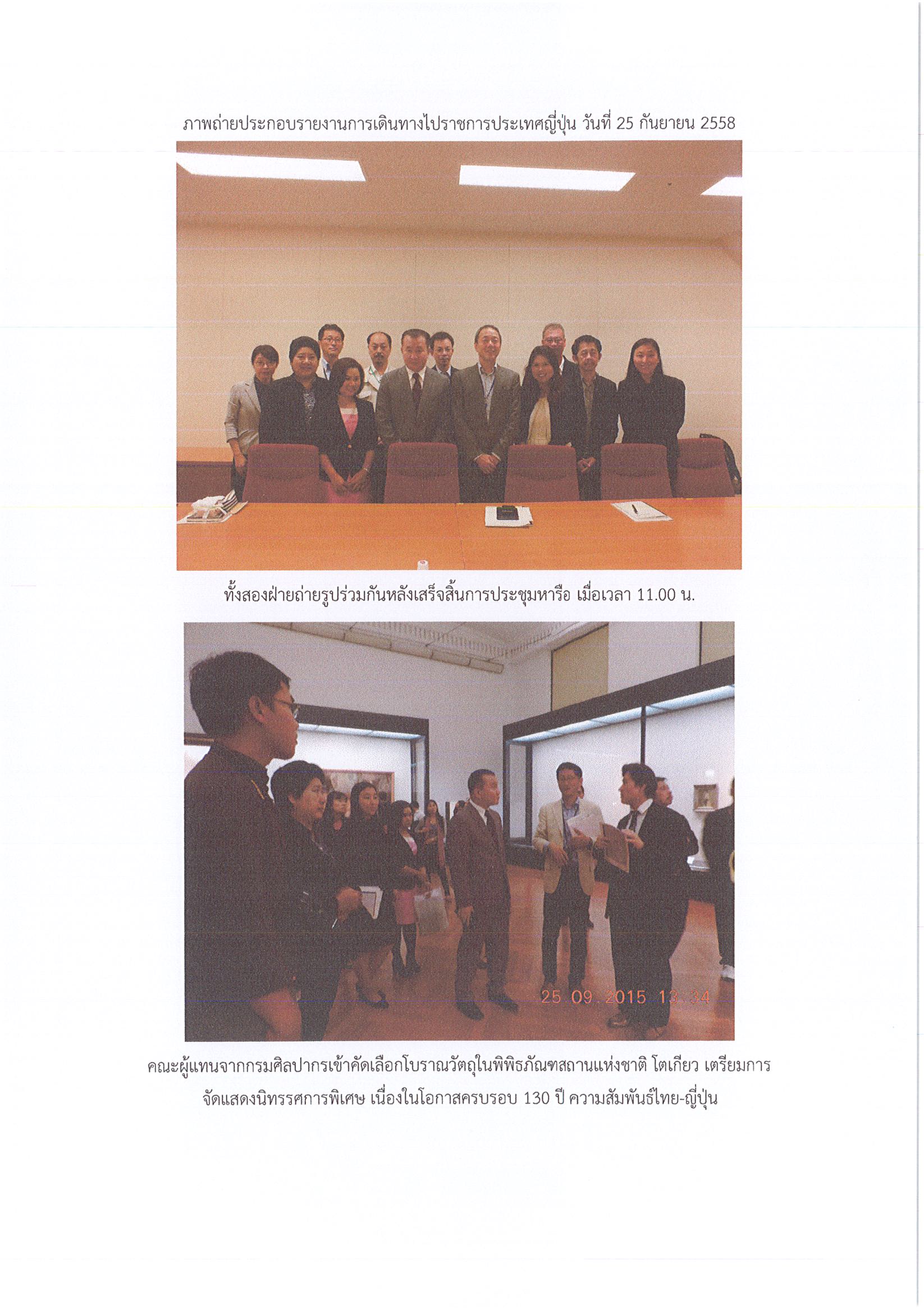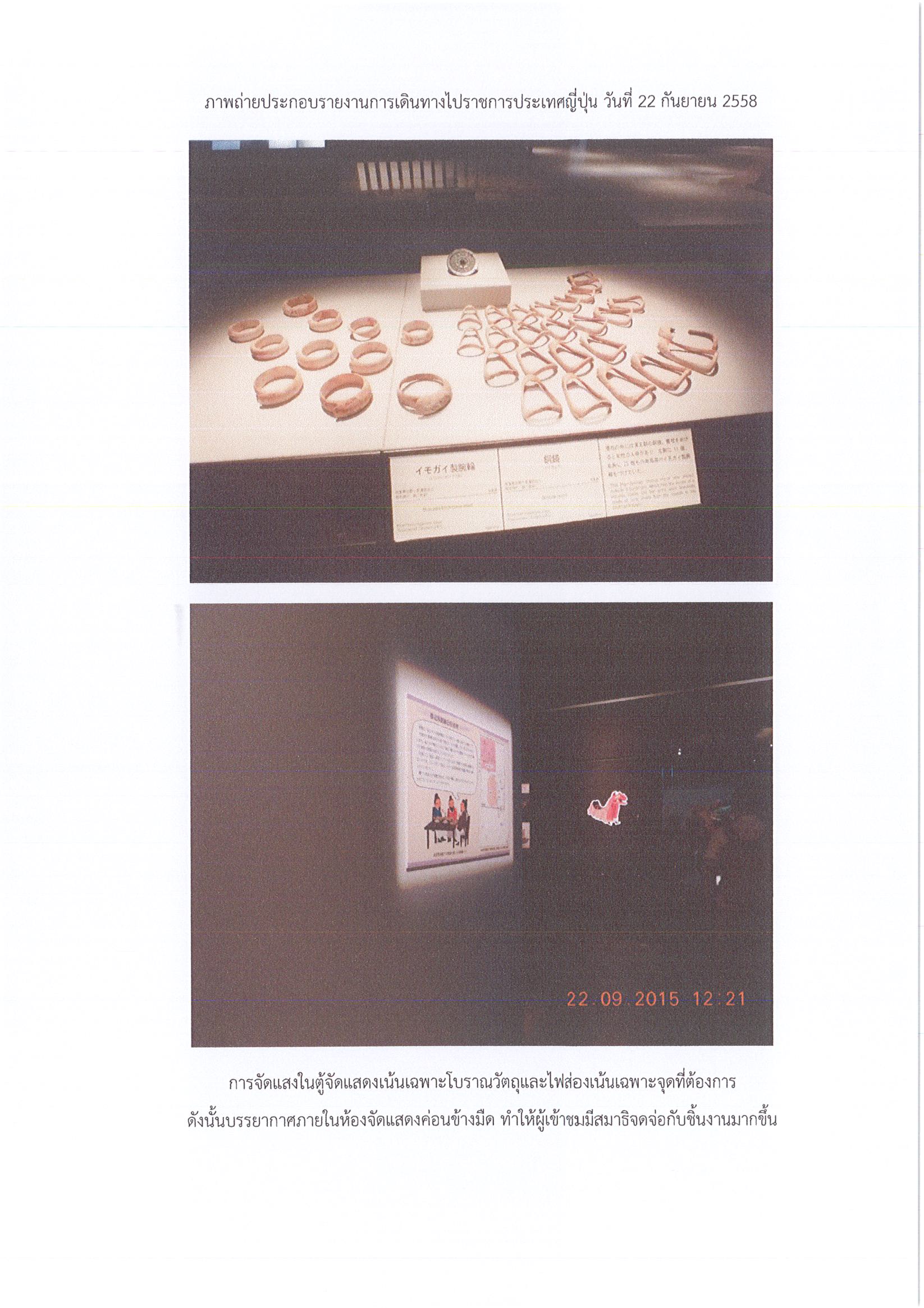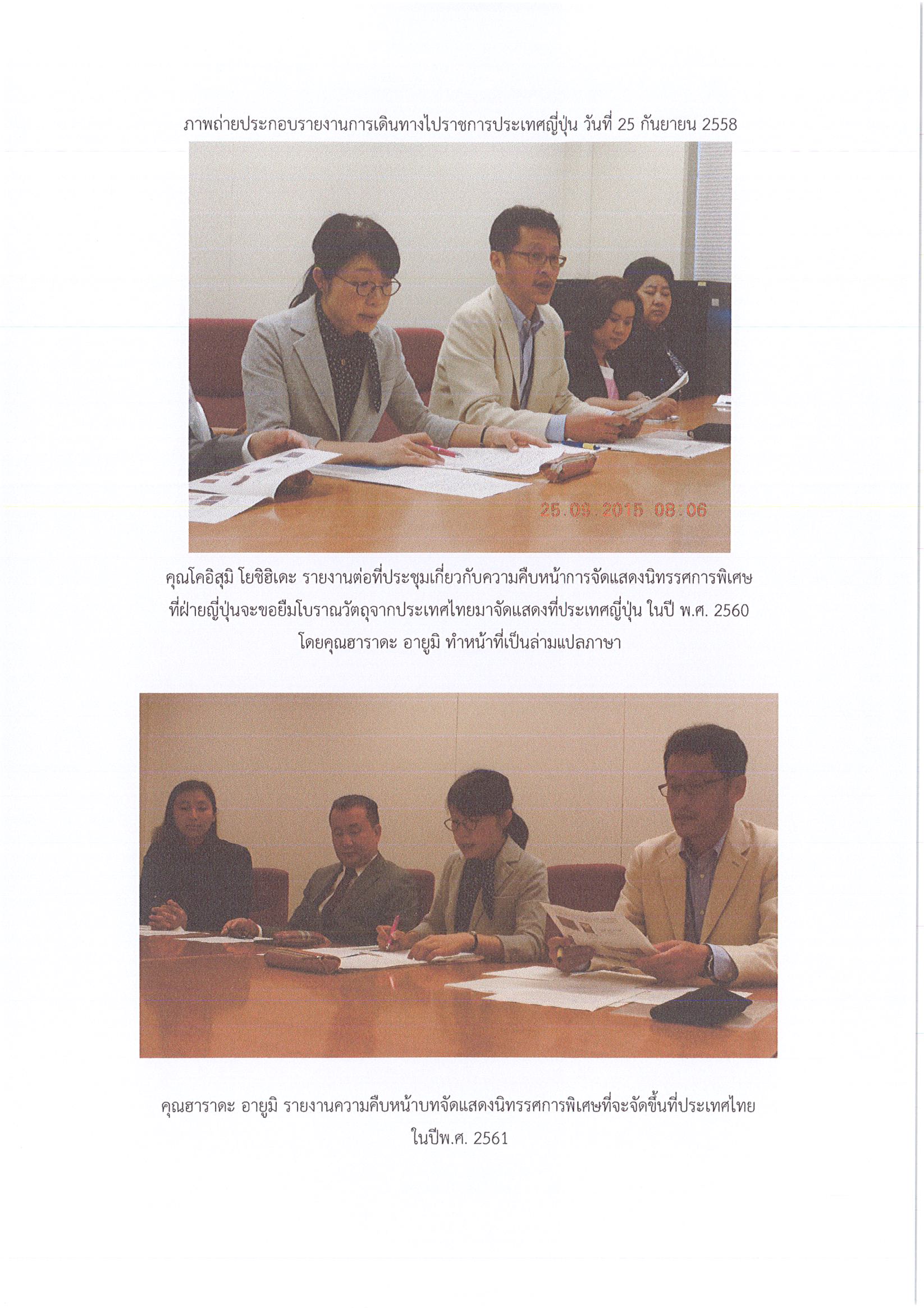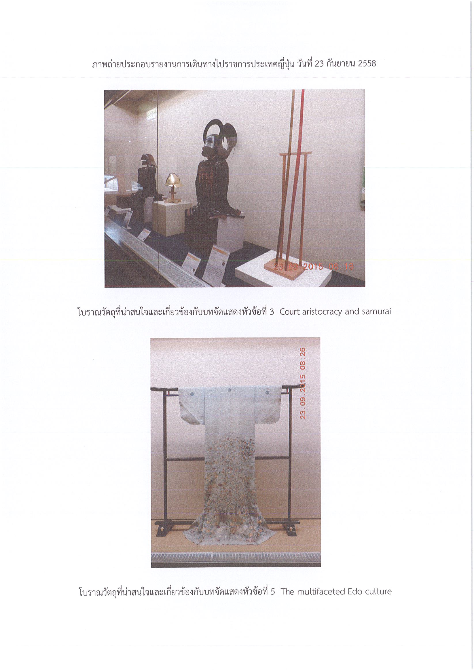รายงานการเดินทางไปราชการ ณ ประเทศญี่ปุ่น ระหว่างวันที่ 21 – 26 กันยายน 2558 โครงการจัดแสดงนิทรรศการพิเศษ เนื่องในโอกาสครบรอบ 130 ปี ความสัมพันธ์ไทย – ญี่ปุ่น ภายใต้โครงการแลกเปลี่ยนการศึกษาค้นคว้าอารยธรรมของสองประเทศ ไทย – ญี่ปุ่น กับโลกภายนอก