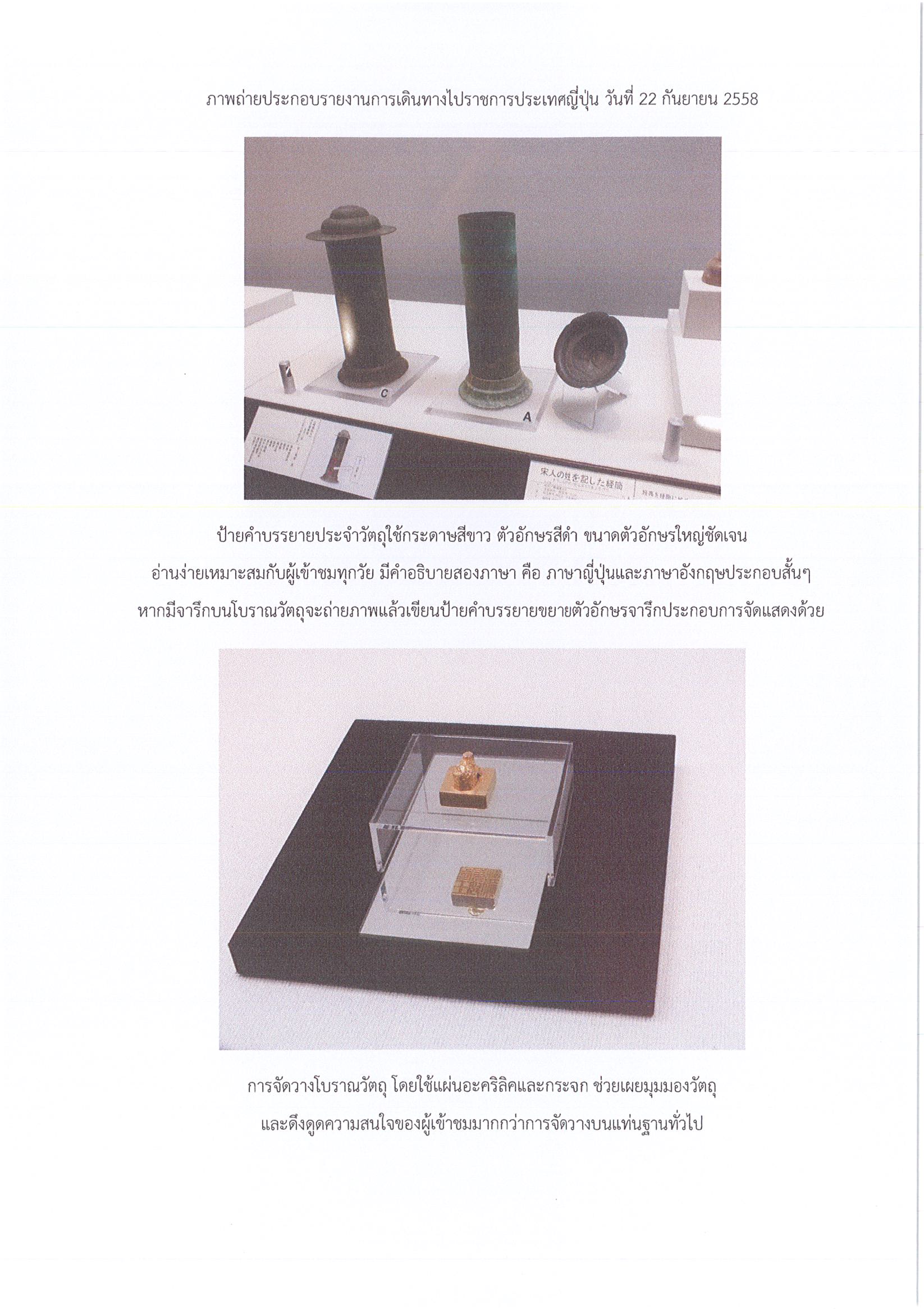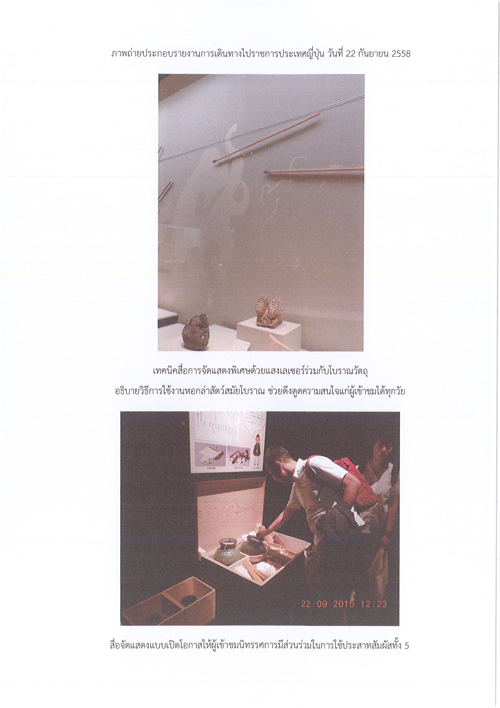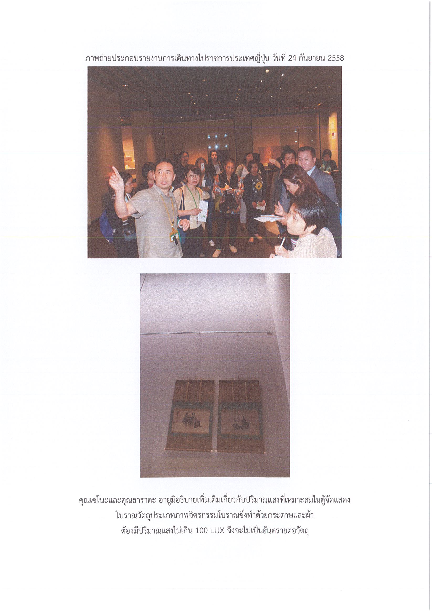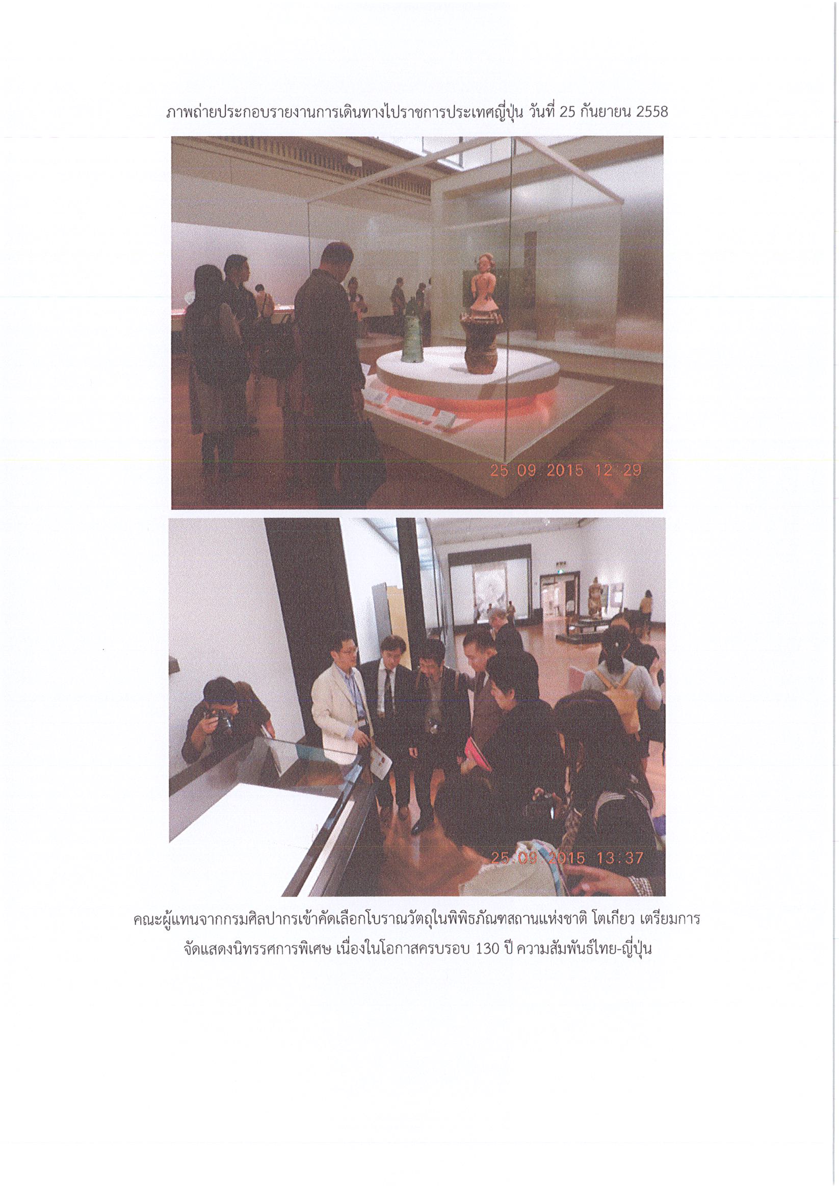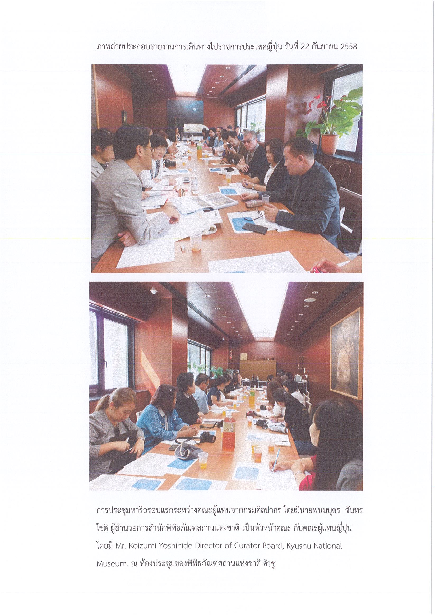รายงานการเดินทางไปราชการ ณ ประเทศญี่ปุ่น ระหว่างวันที่ 21 – 26 กันยายน 2558 โครงการจัดแสดงนิทรรศการพิเศษ เนื่องในโอกาสครบรอบ 130 ปี ความสัมพันธ์ไทย – ญี่ปุ่น ภายใต้โครงการแลกเปลี่ยนการศึกษาค้นคว้าอารยธรรมของสองประเทศ ไทย – ญี่ปุ่น กับโลกภายนอก