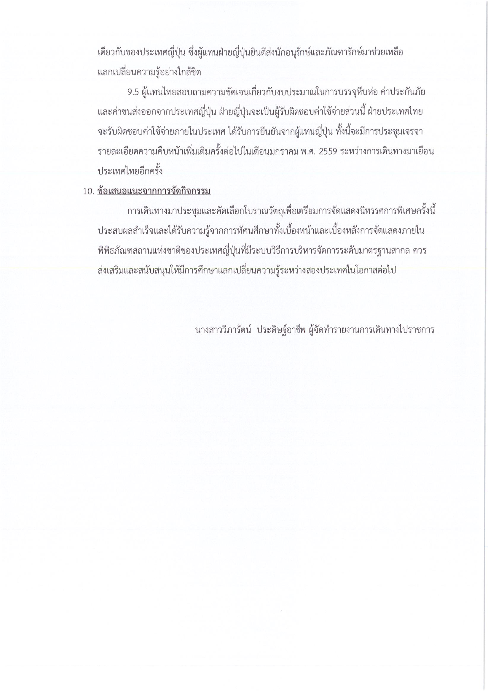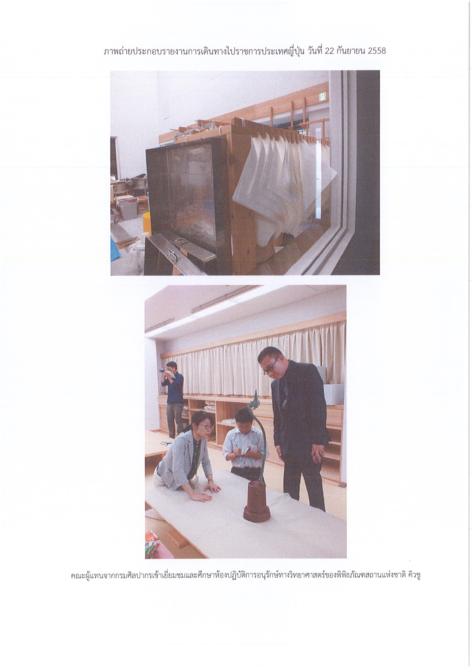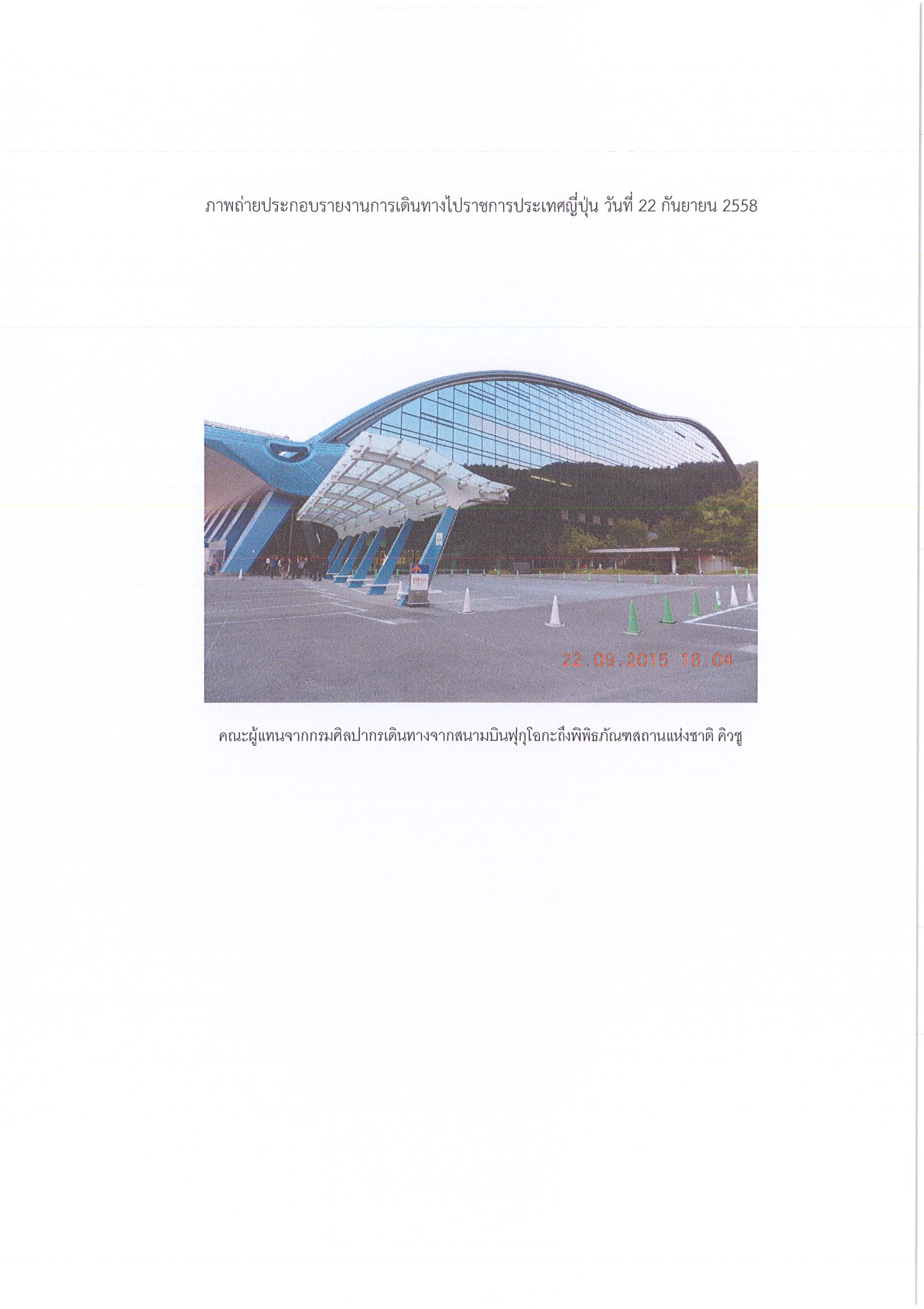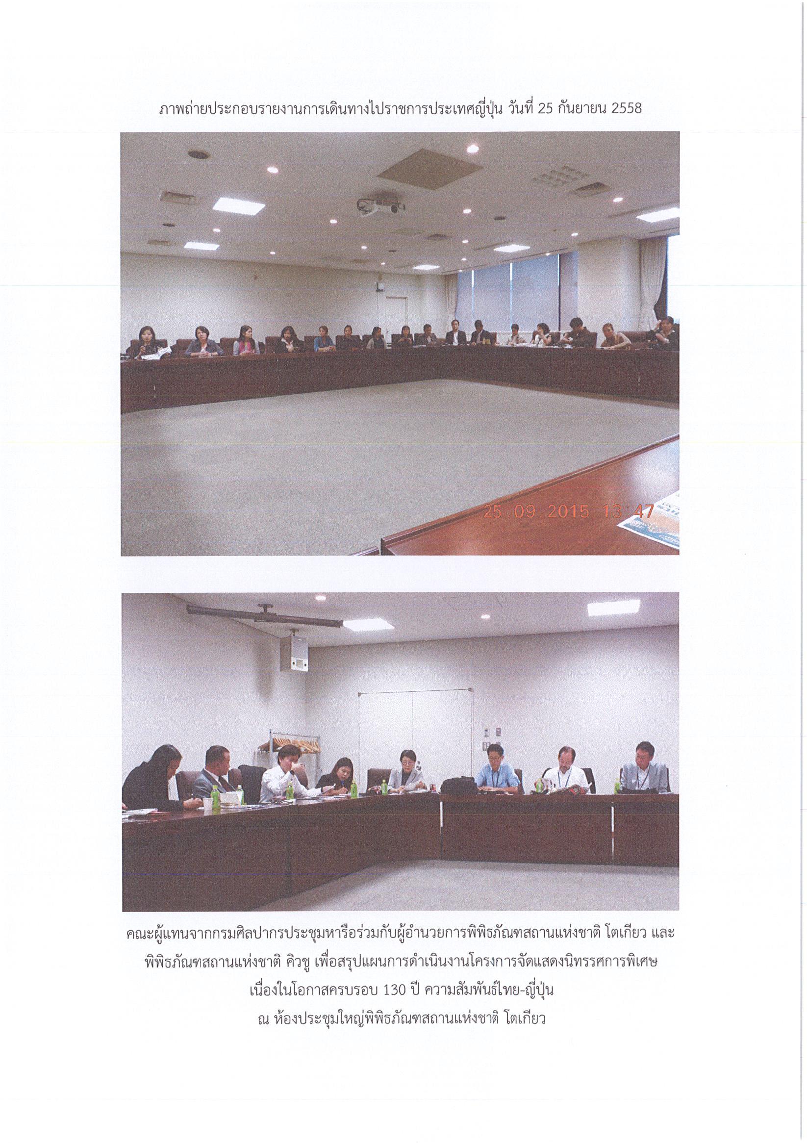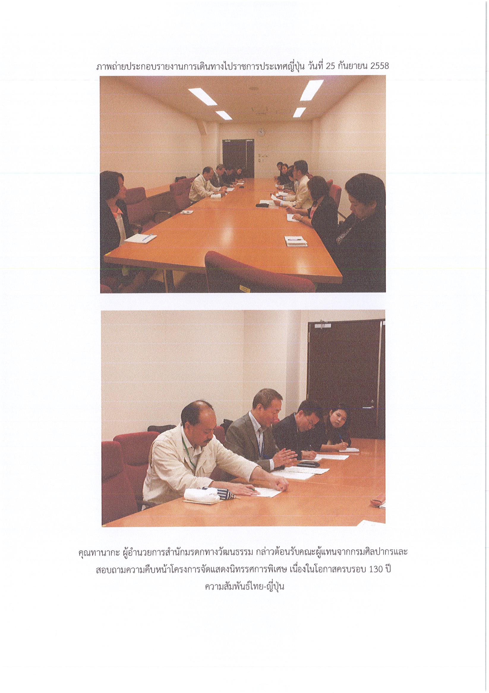 รายงานการเดินทางไปราชการ ณ ประเทศญี่ปุ่น ระหว่างวันที่ 21 – 26 กันยายน 2558 โครงการจัดแสดงนิทรรศการพิเศษ เนื่องในโอกาสครบรอบ 130 ปี ความสัมพันธ์ไทย – ญี่ปุ่น ภายใต้โครงการแลกเปลี่ยนการศึกษาค้นคว้าอารยธรรมของสองประเทศ ไทย – ญี่ปุ่น กับโลกภายนอก