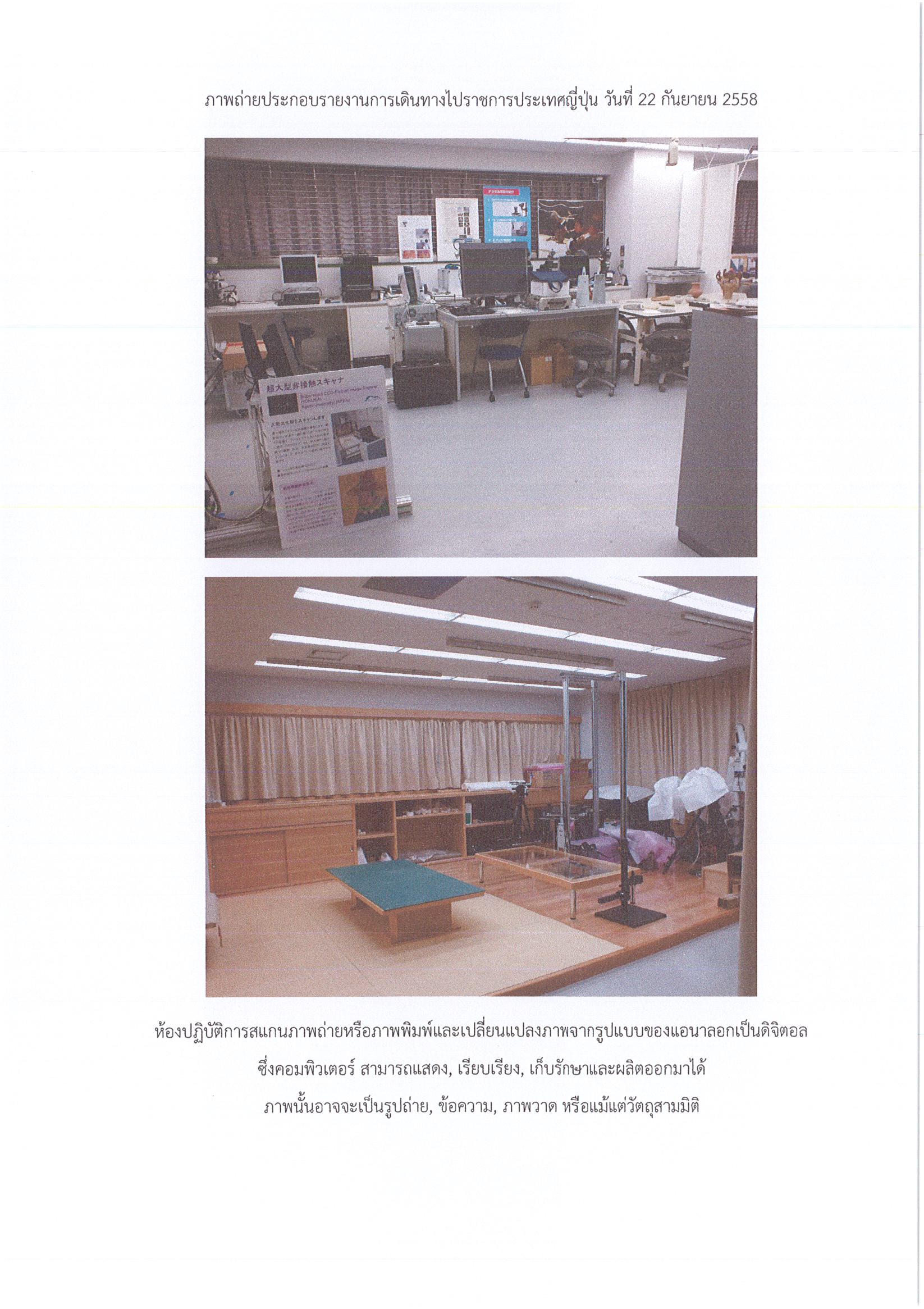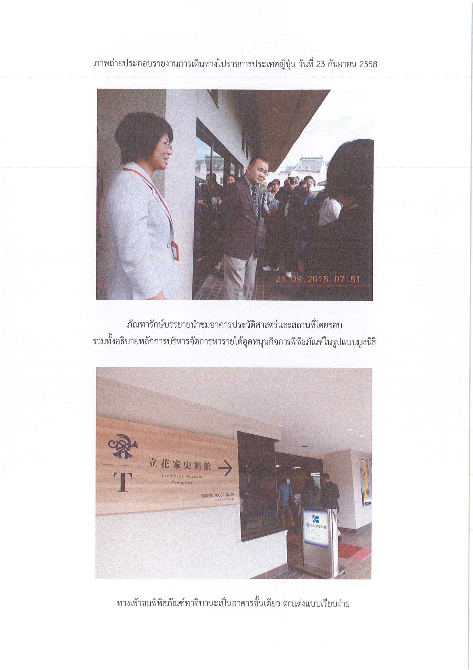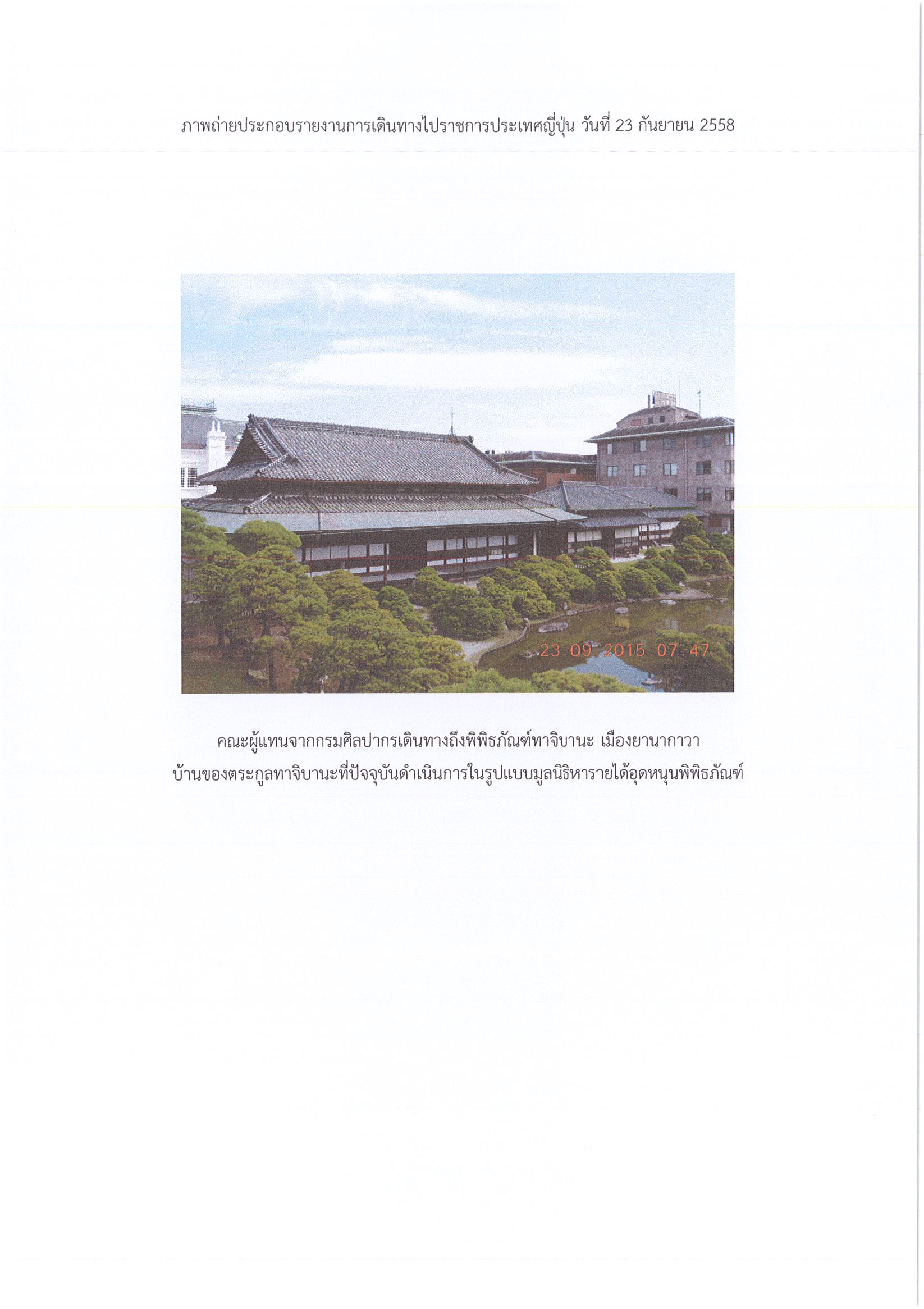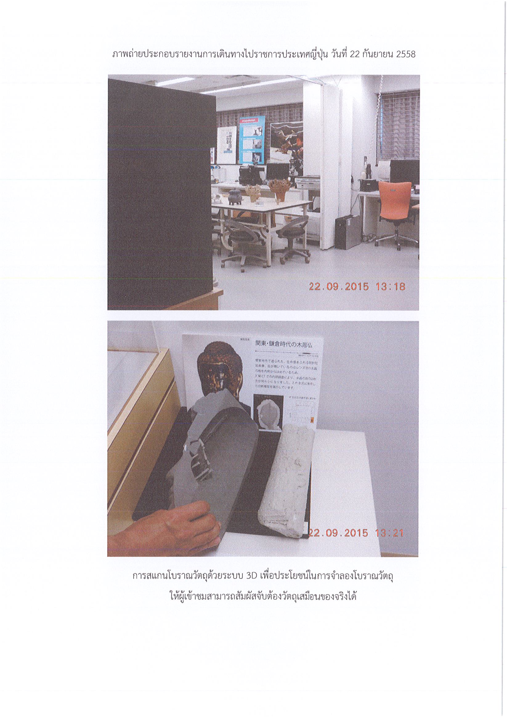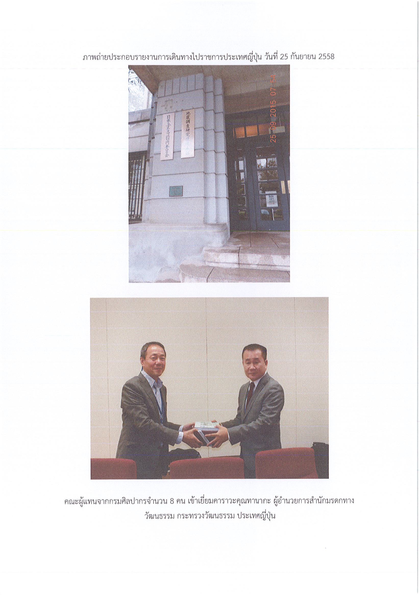 รายงานการเดินทางไปราชการ ณ ประเทศญี่ปุ่น ระหว่างวันที่ 21 – 26 กันยายน 2558 โครงการจัดแสดงนิทรรศการพิเศษ เนื่องในโอกาสครบรอบ 130 ปี ความสัมพันธ์ไทย – ญี่ปุ่น ภายใต้โครงการแลกเปลี่ยนการศึกษาค้นคว้าอารยธรรมของสองประเทศ ไทย – ญี่ปุ่น กับโลกภายนอก