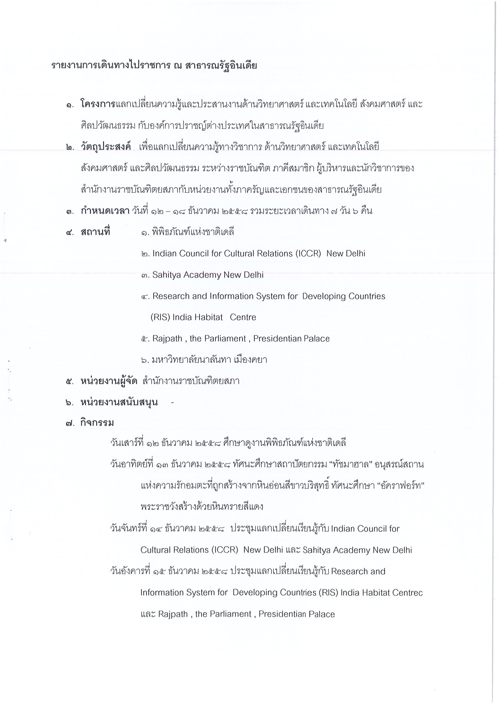 รายงานการเดินทางไปราชการ ณ สาธารณรัฐอินเดีย ระหว่างวันที่ 12 – 18 ธันวาคม 2558 โครงการแลกเปลี่ยนความรู้และประสานงานด้านวิทยาศาสตร์และเทคโนโลยี สังคมศาสตร์และศิลปวัฒนธรรม กับองค์การปราชญ์ต่างประเทศในสาธารณรัฐอินเดีย