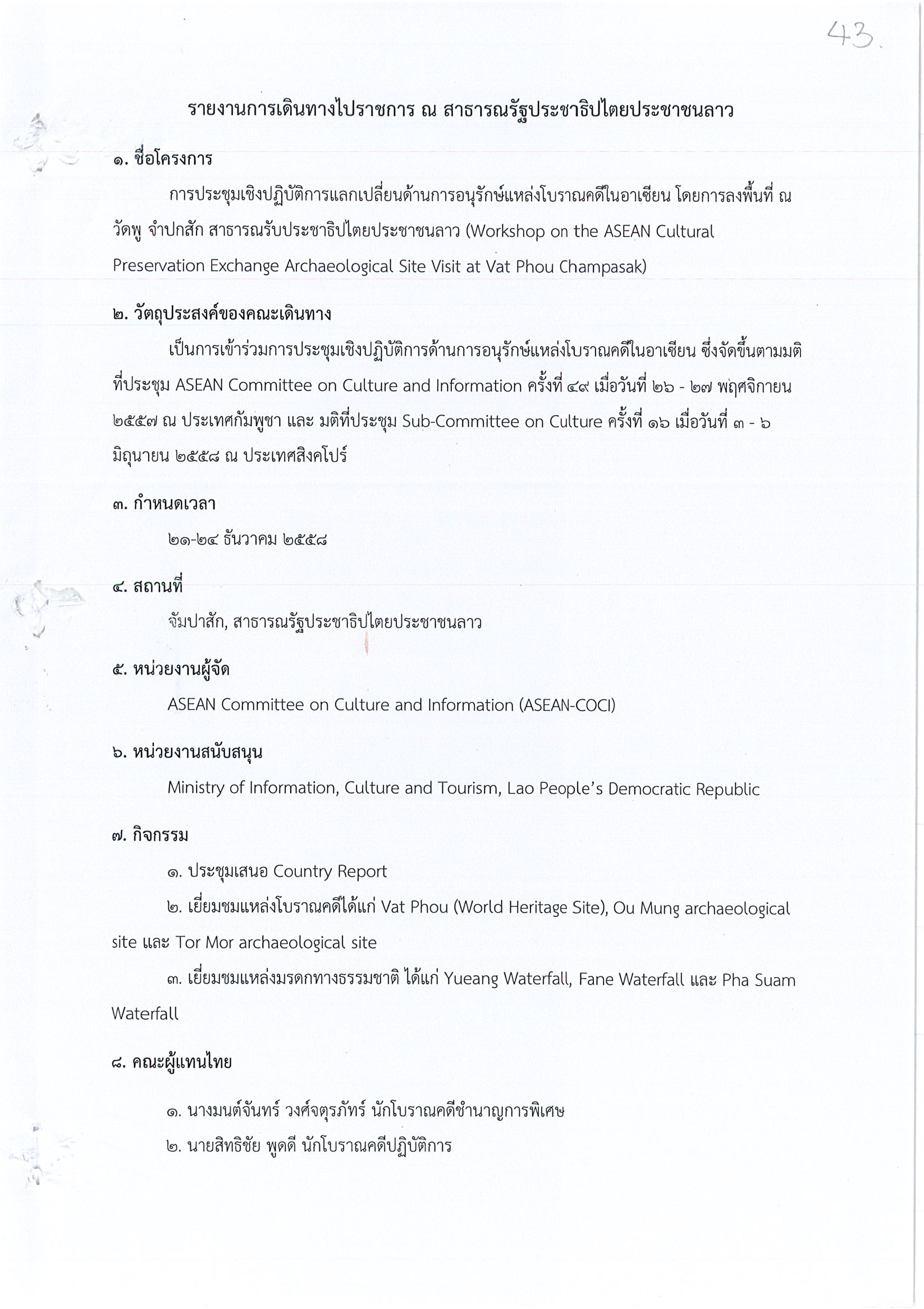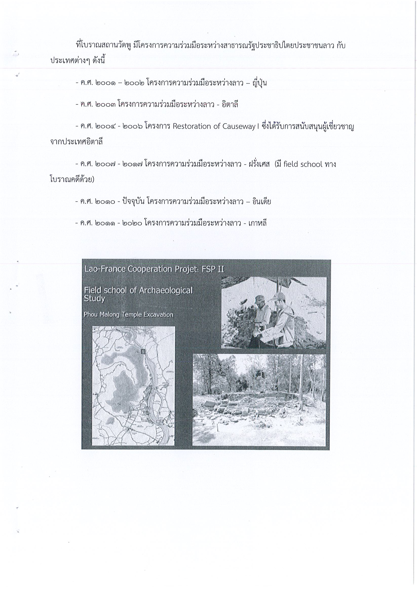 รายงานการเดินทางไปราชการ ณ สาธารณรัฐประชาธิปไตยประชาชนลาว ระหว่างวันที่ 21 -24 ธันวาคม 2558 โครงการประชุมเชิงปฏิบัติการแลกเปลี่ยนด้านการอนุรักษ์แหล่งโบราณคดีในอาเซียน โดยการลงพื้นที่ ณ วัดพู แขวงจำปาสัก