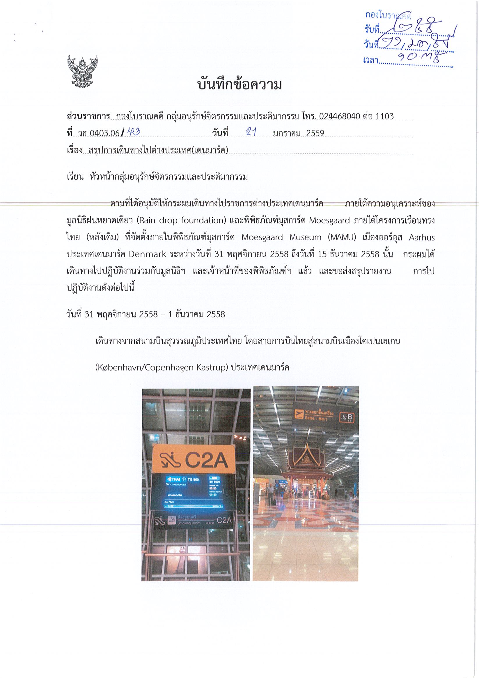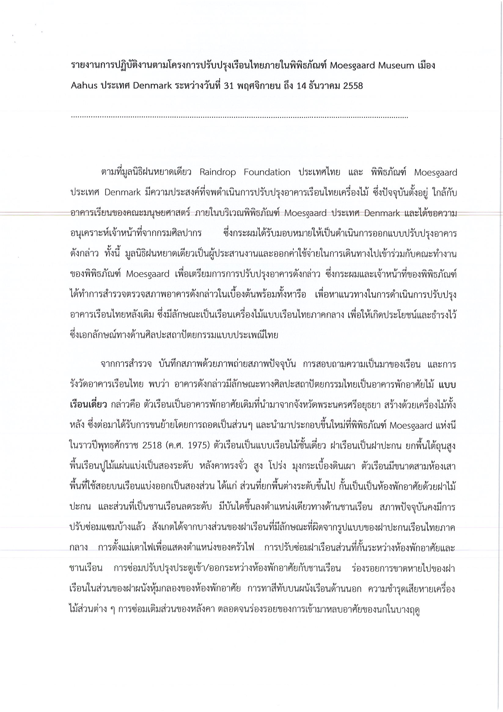 รายงานการเดินทางไปราชการ ณ ราชอาณาจักรเดนมาร์ก ระหว่างวันที่ 1 – 14 ธันวาคม 2558 โครงการปรับปรุงอาคารเรือนทรงไทย ณ พิพิธภัณฑ์ MOESGAAD