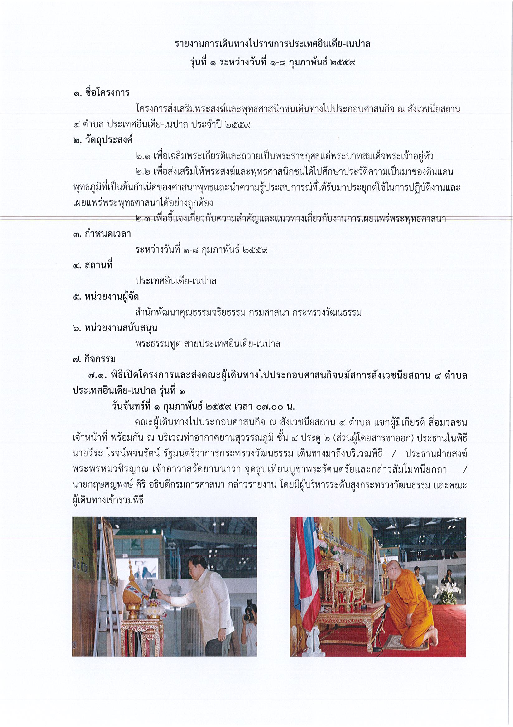 รายงานการเดินทางไปราชการ ณ สาธารณรัฐอินเดีย และสหพันธ์สาธารณรัฐประชาธิปไตยเนปาล ระหว่างวันที่ 1 – 8 กุมภาพันธ์ 2559 โครงการส่งเสริมพระสงฆ์และพุทธศาสนิกชนเดินทางไปประกอบศาสนกิจ ณ สังเวชนียสถาน 4 ตำบล