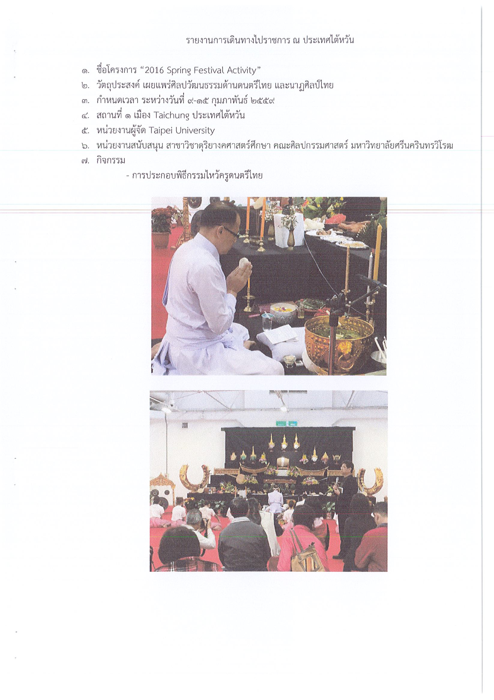 รายงานการเดินทางไปราชการ ณ สาธารณรัฐจีน (ไต้หวัน) ระหว่างวันที่ 9 – 15 กุมภาพันธ์ 2559 โครงการ 2016 Spring Festival Activity