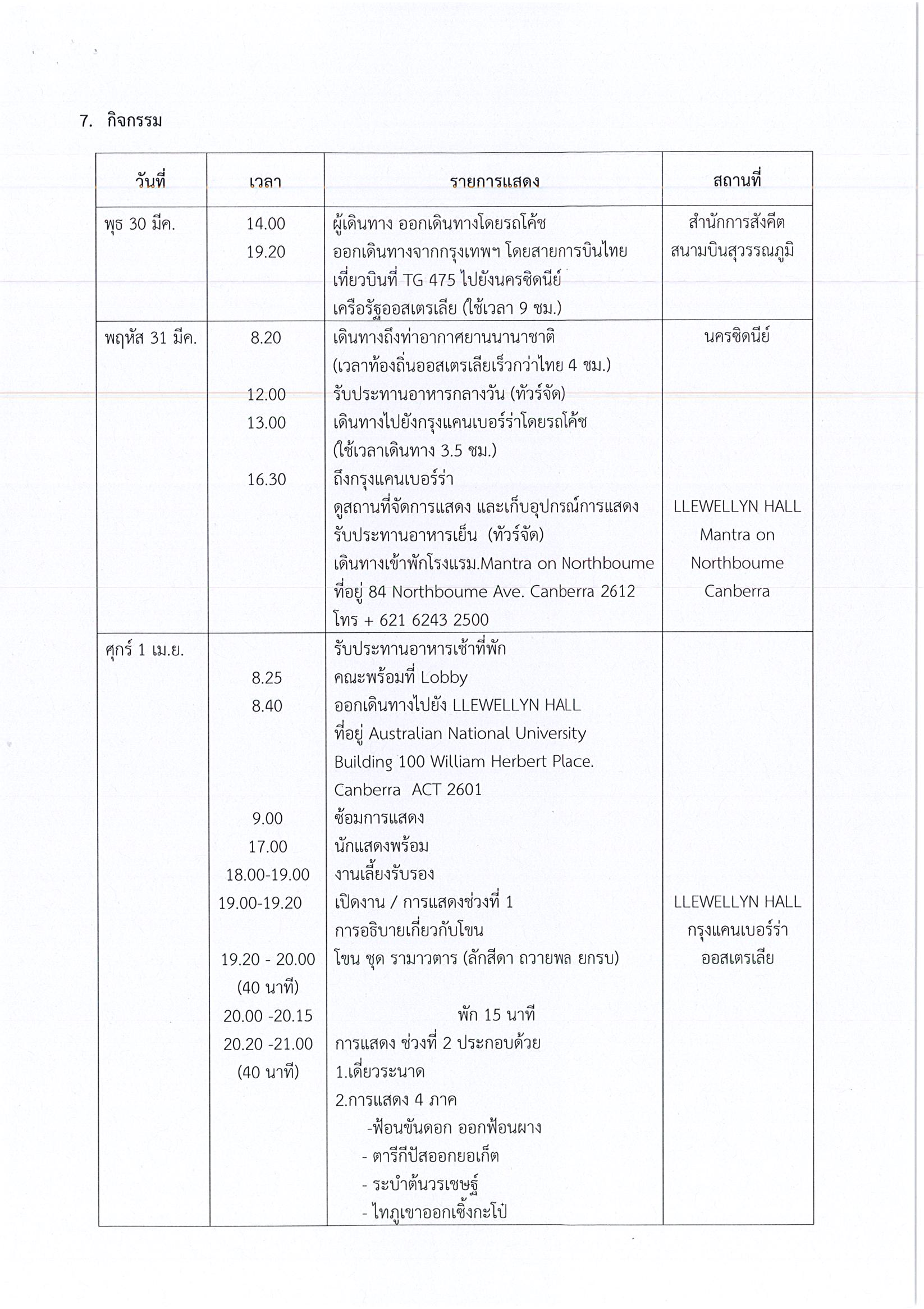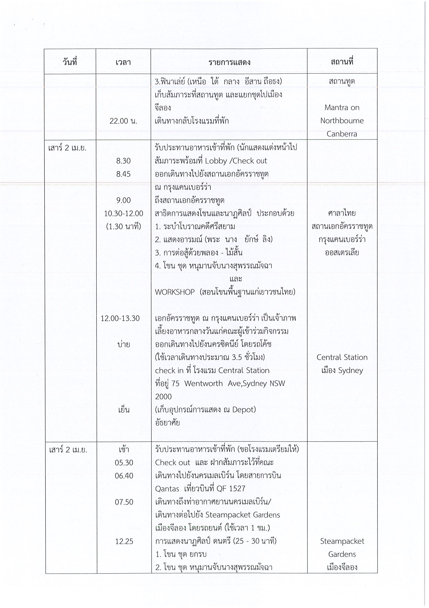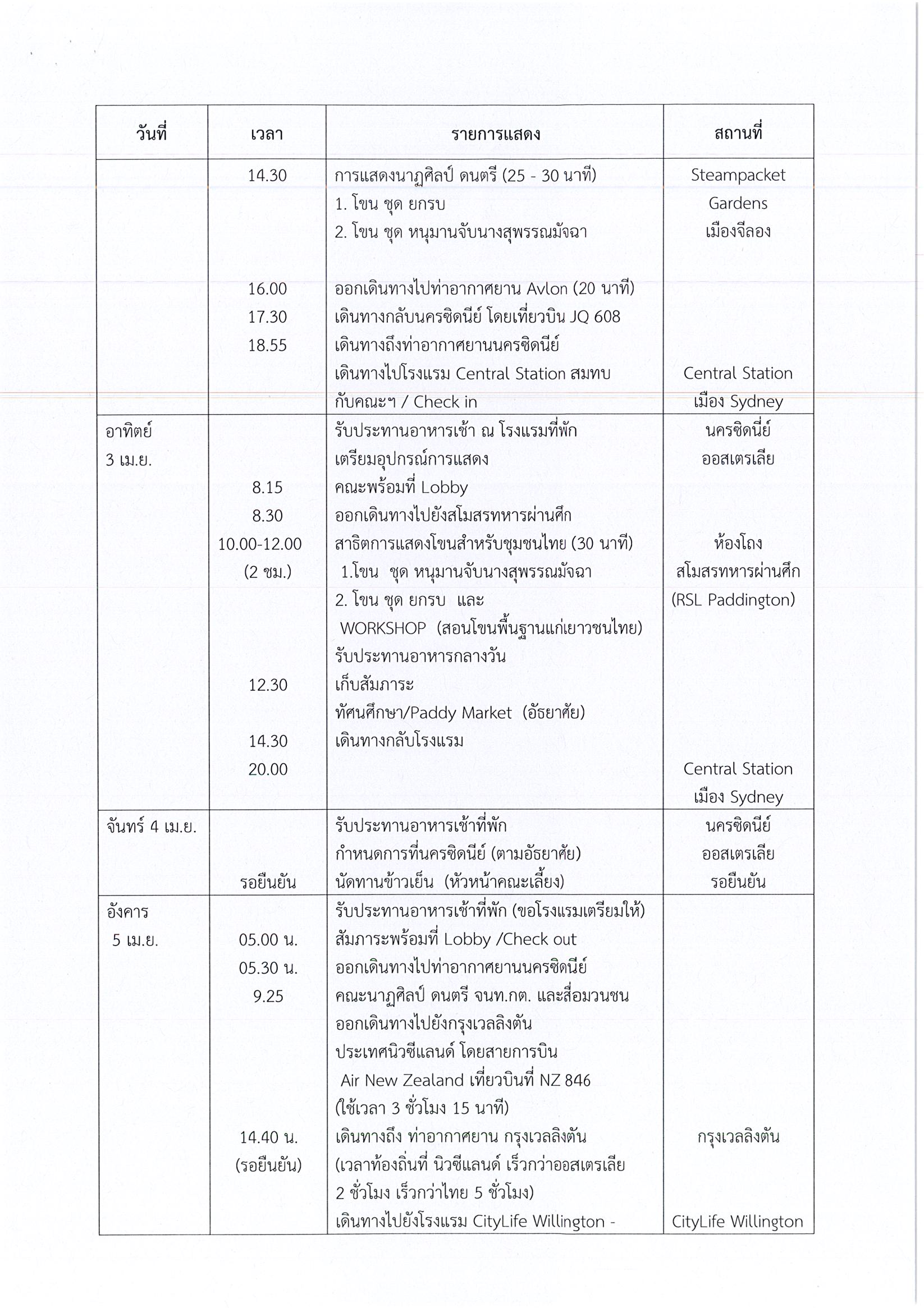 รายงานการเดินทางไปราชการ ณ เครือรัฐออสเตรเลีย และประเทศนิวซีแลนด์ ระหว่างวันที่ 30 มีนาคม – 15 เมษายน 2559 โครงการมหกรรมการแสดงด้านนาฏศิลป์ ดุริยางคศิลป์ และดนตรีแบบบูรณาการ ภายใต้โครงการส่งเสริมอุตสาหกรรมวัฒนธรรมสร้างสรรค์ เพื่อเพิ่มศักยภาพในการแข่งขันกิจกรรมการแสดงนาฏศิลป์และดนตรีไทย ปี 2559