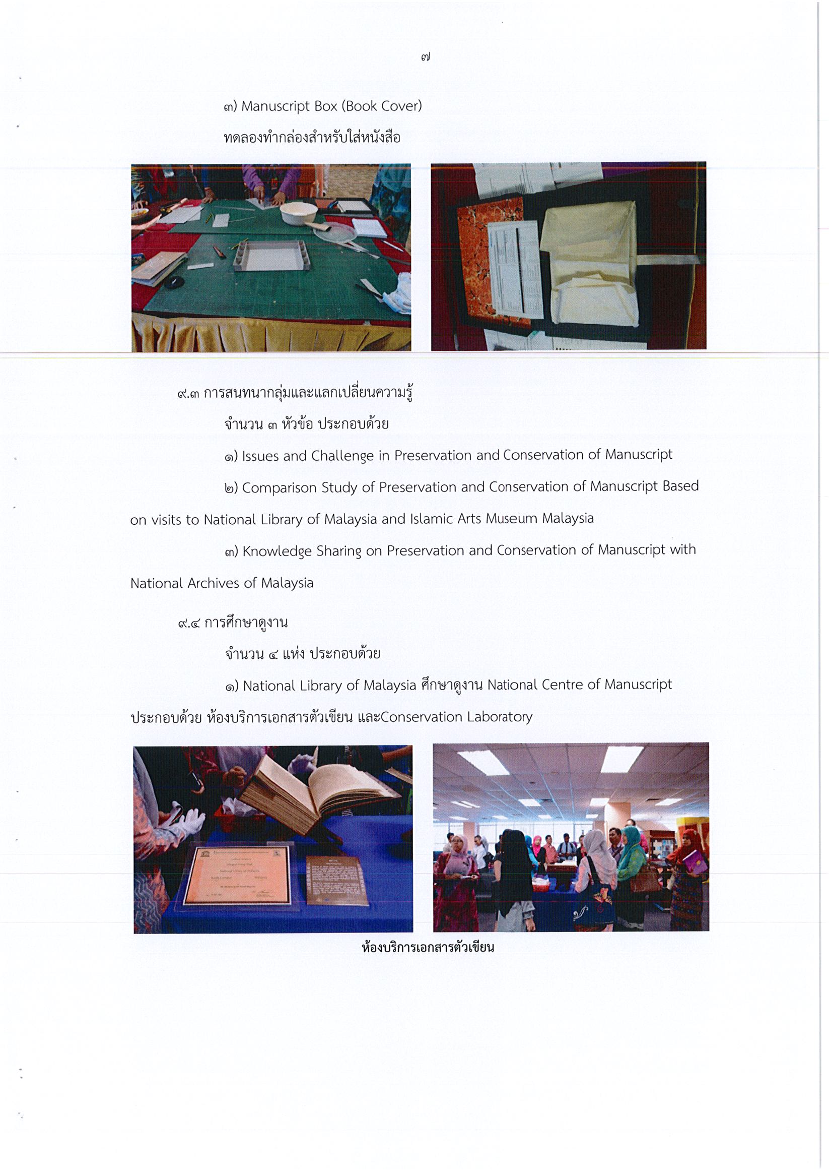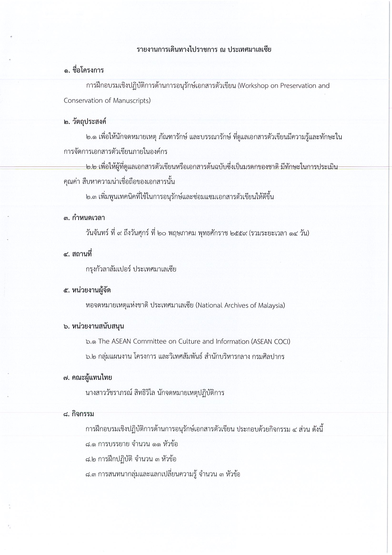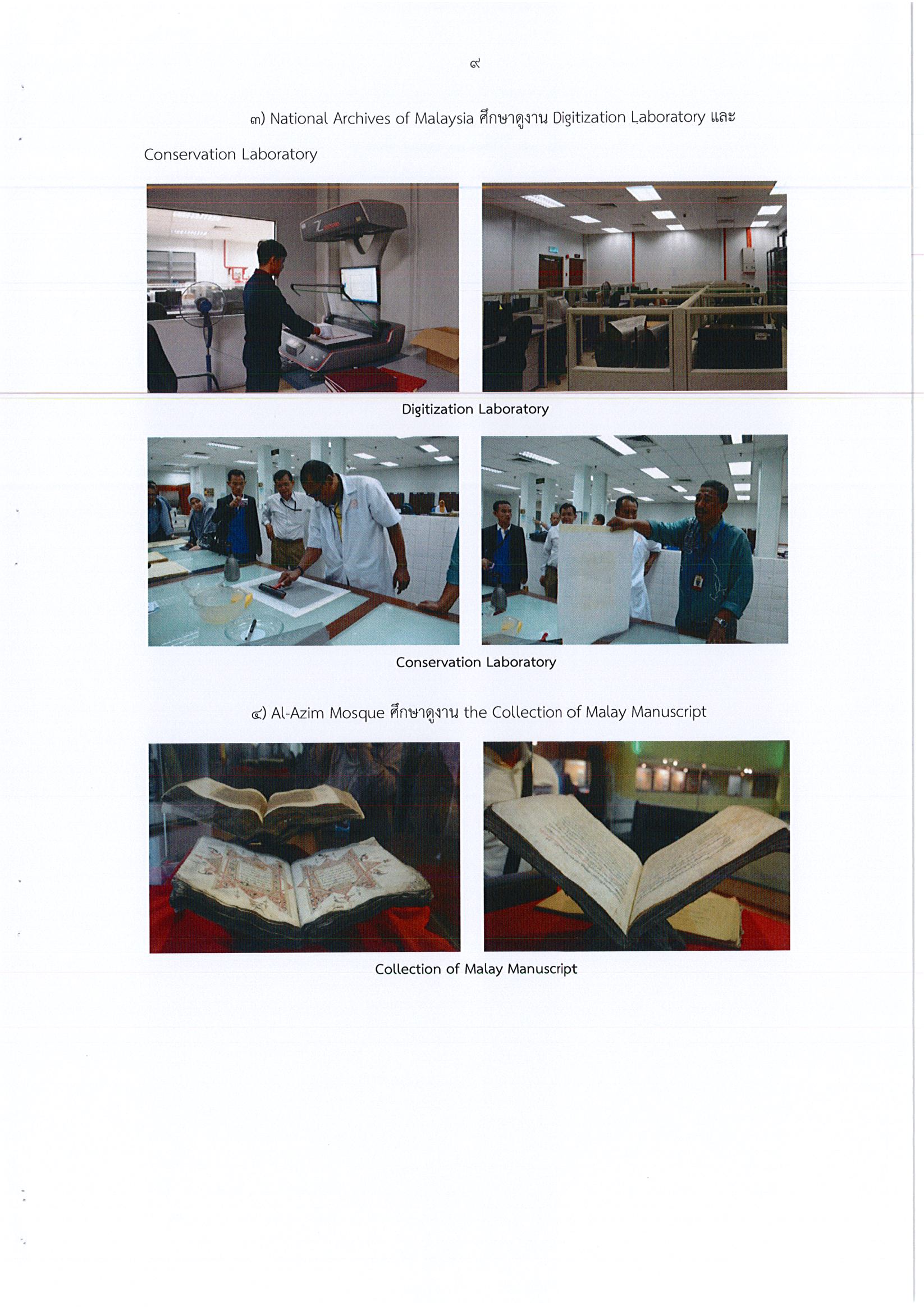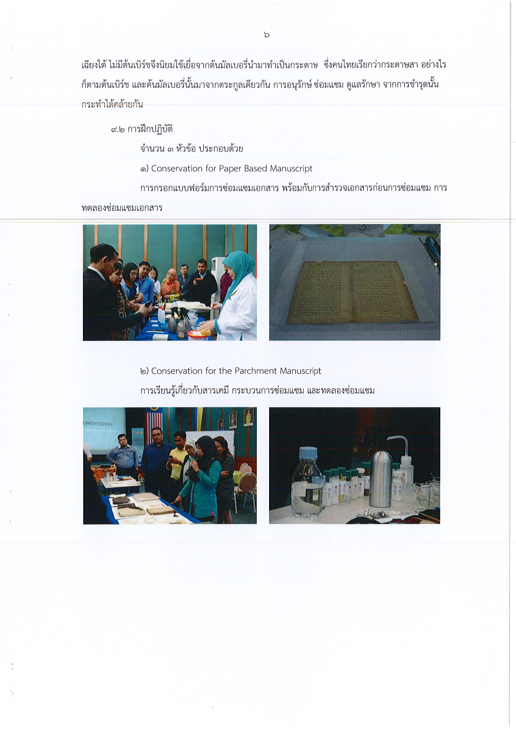 รายงานการเดินทางไปราชการ ณ สหพันธรัฐมาเลเซีย ระหว่างวันที่ 9 – 20 พฤษภาคม 2559 โครงการฝึกอบรมเชิงปฏิบัติการด้านการอนุรักษ์เอกสารตัวเขียน