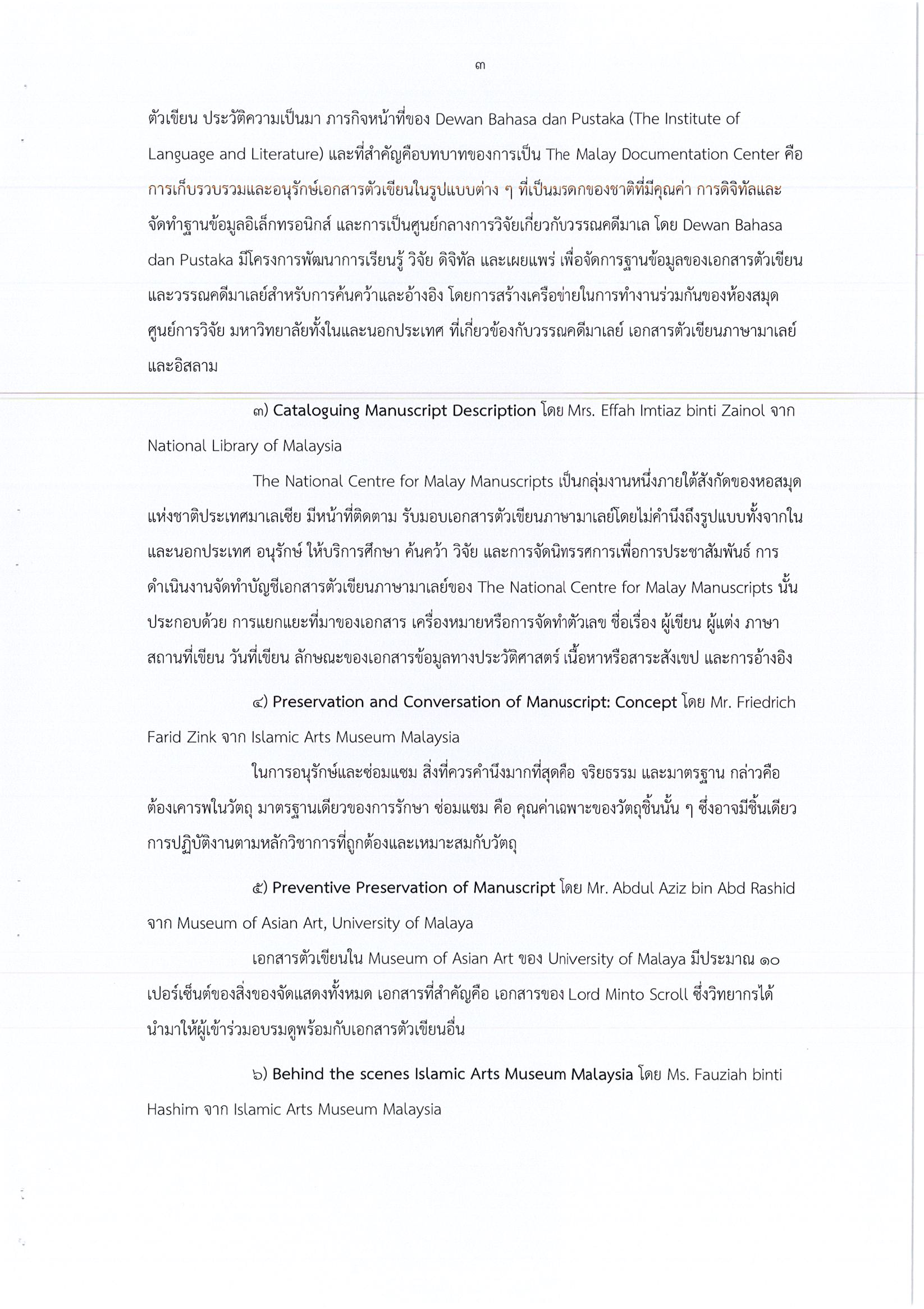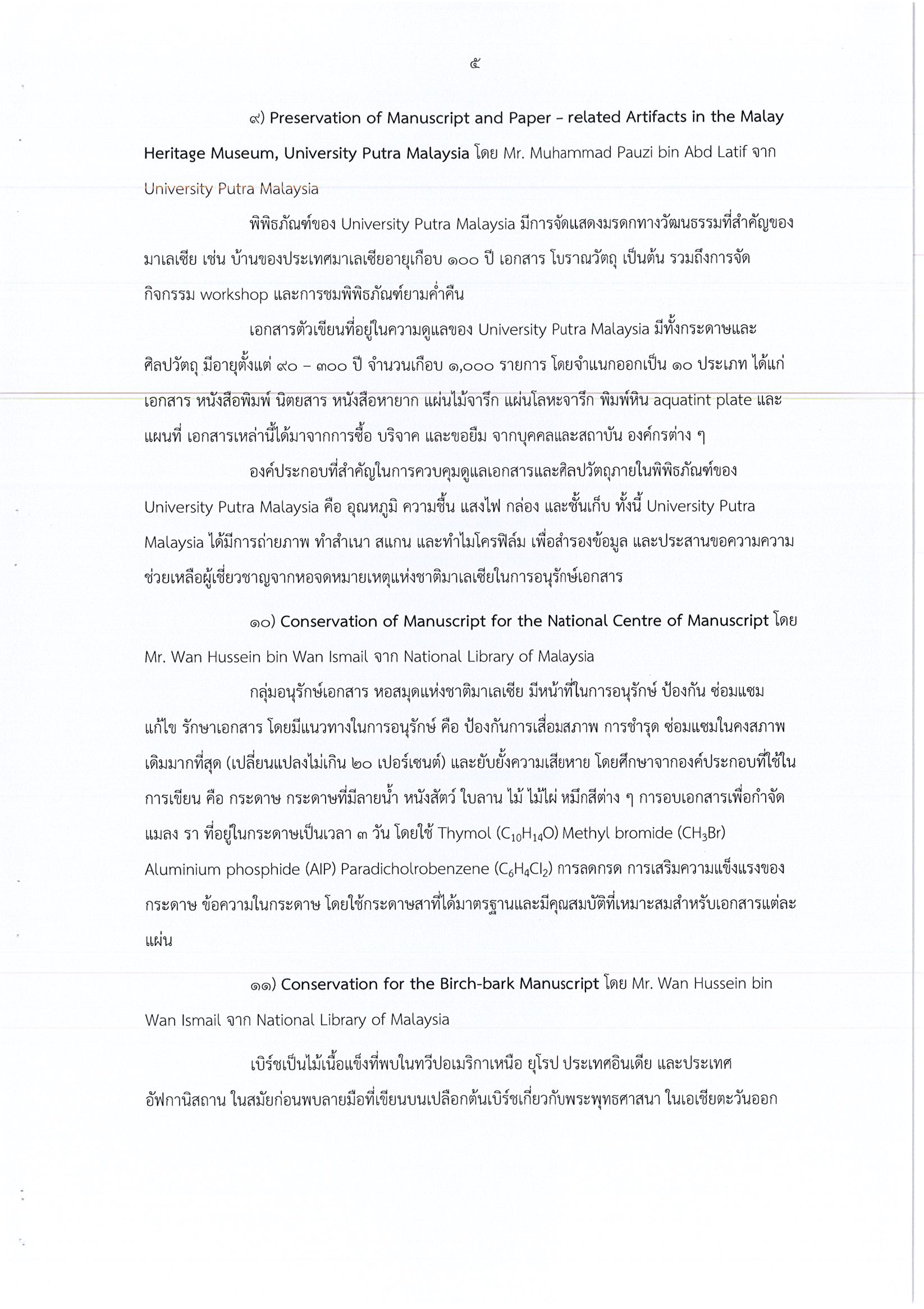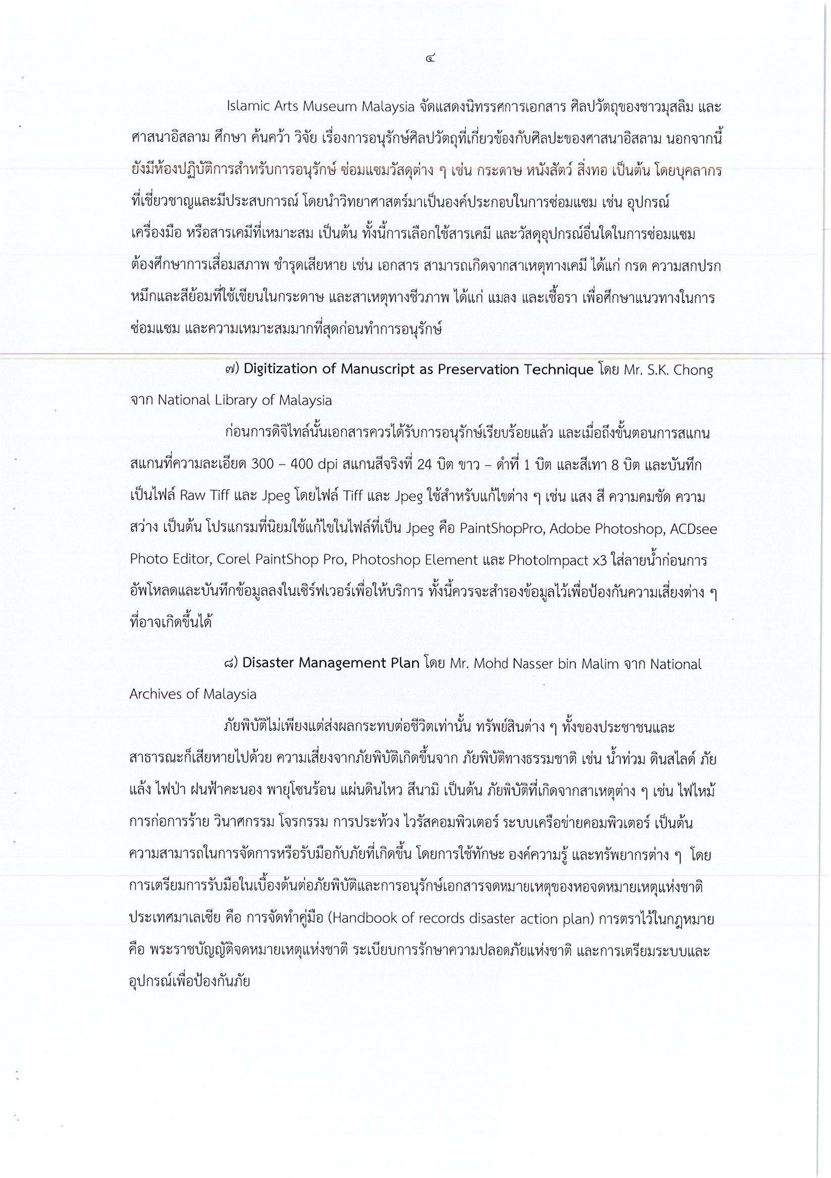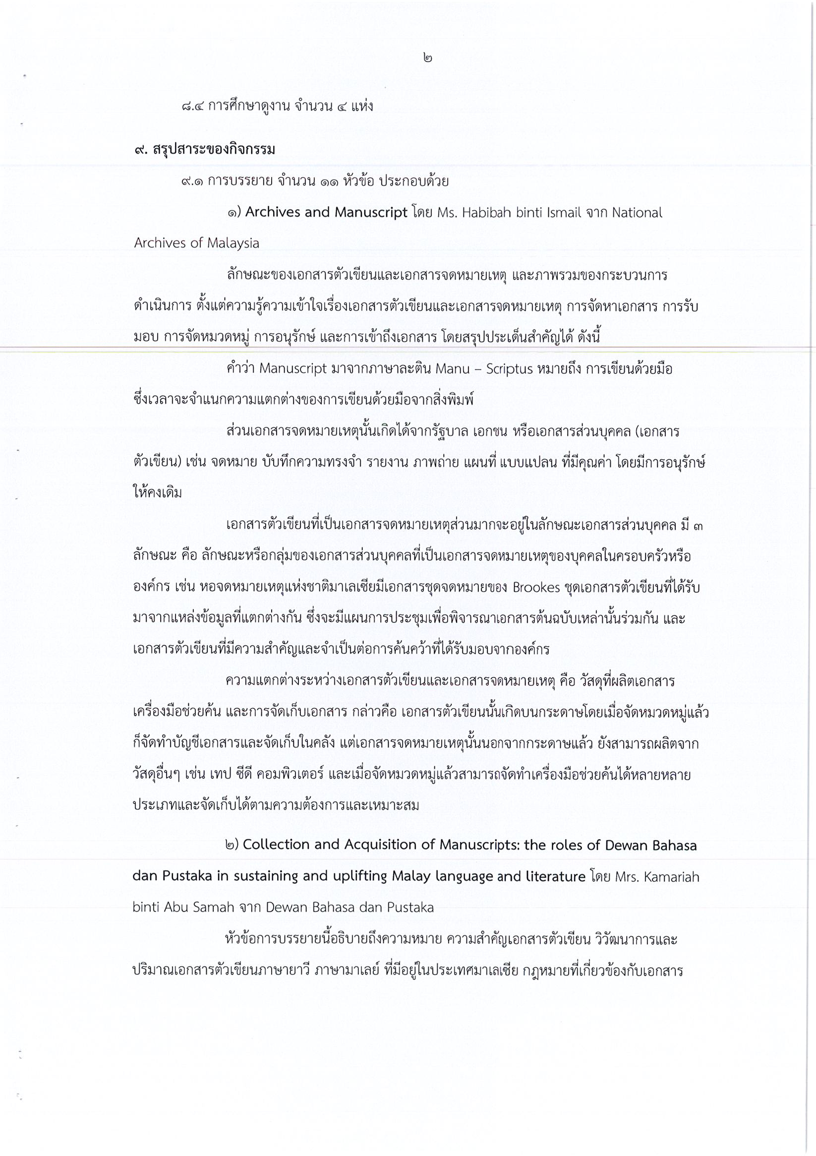 รายงานการเดินทางไปราชการ ณ สหพันธรัฐมาเลเซีย ระหว่างวันที่ 9 – 20 พฤษภาคม 2559 โครงการฝึกอบรมเชิงปฏิบัติการด้านการอนุรักษ์เอกสารตัวเขียน