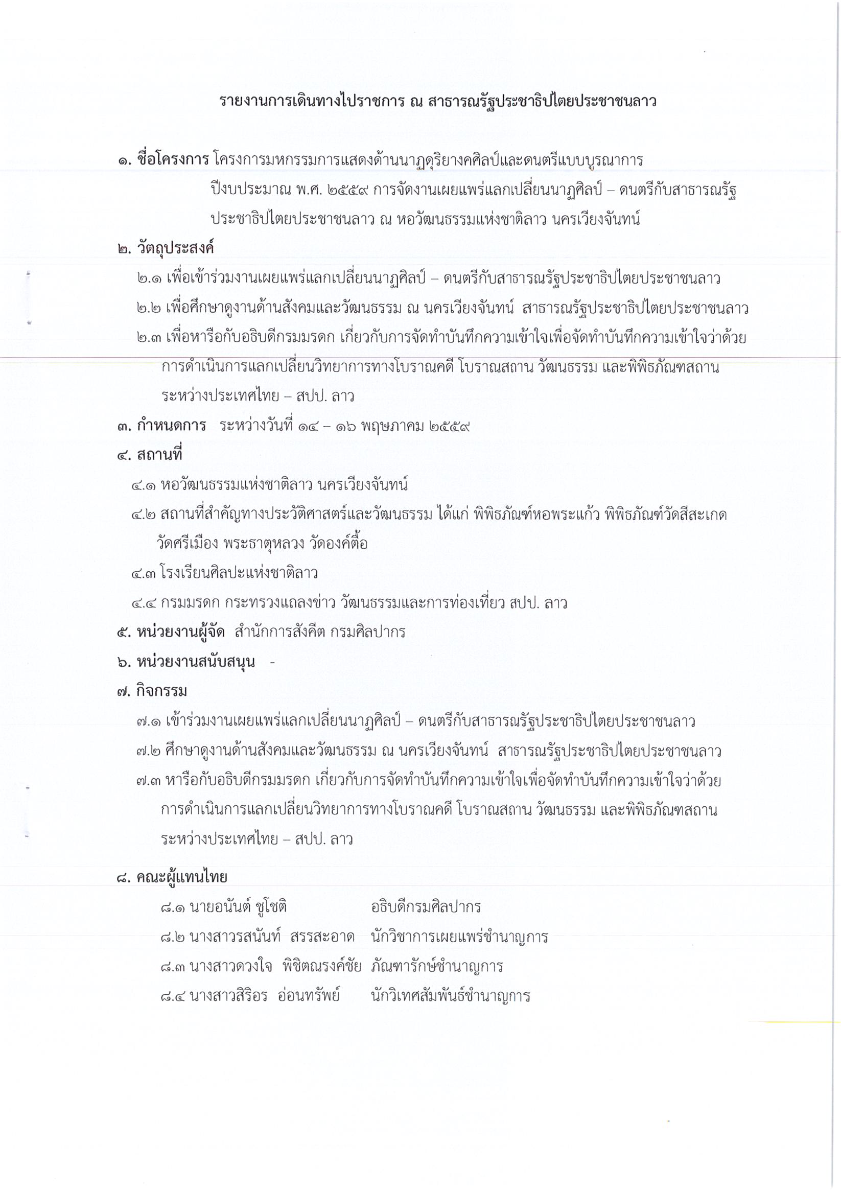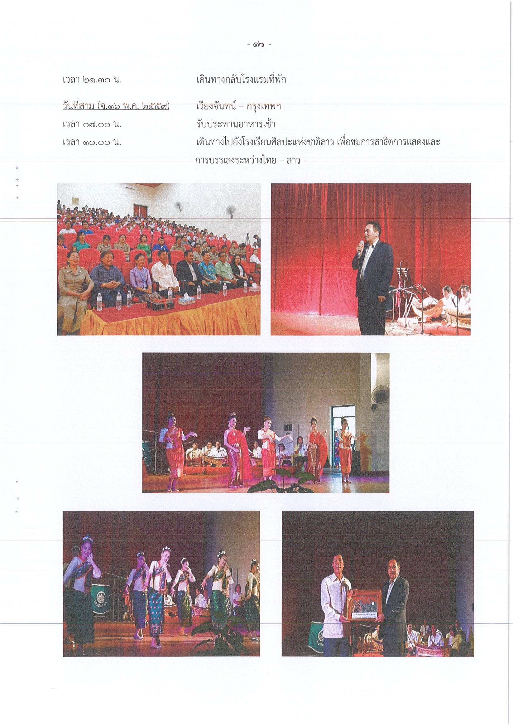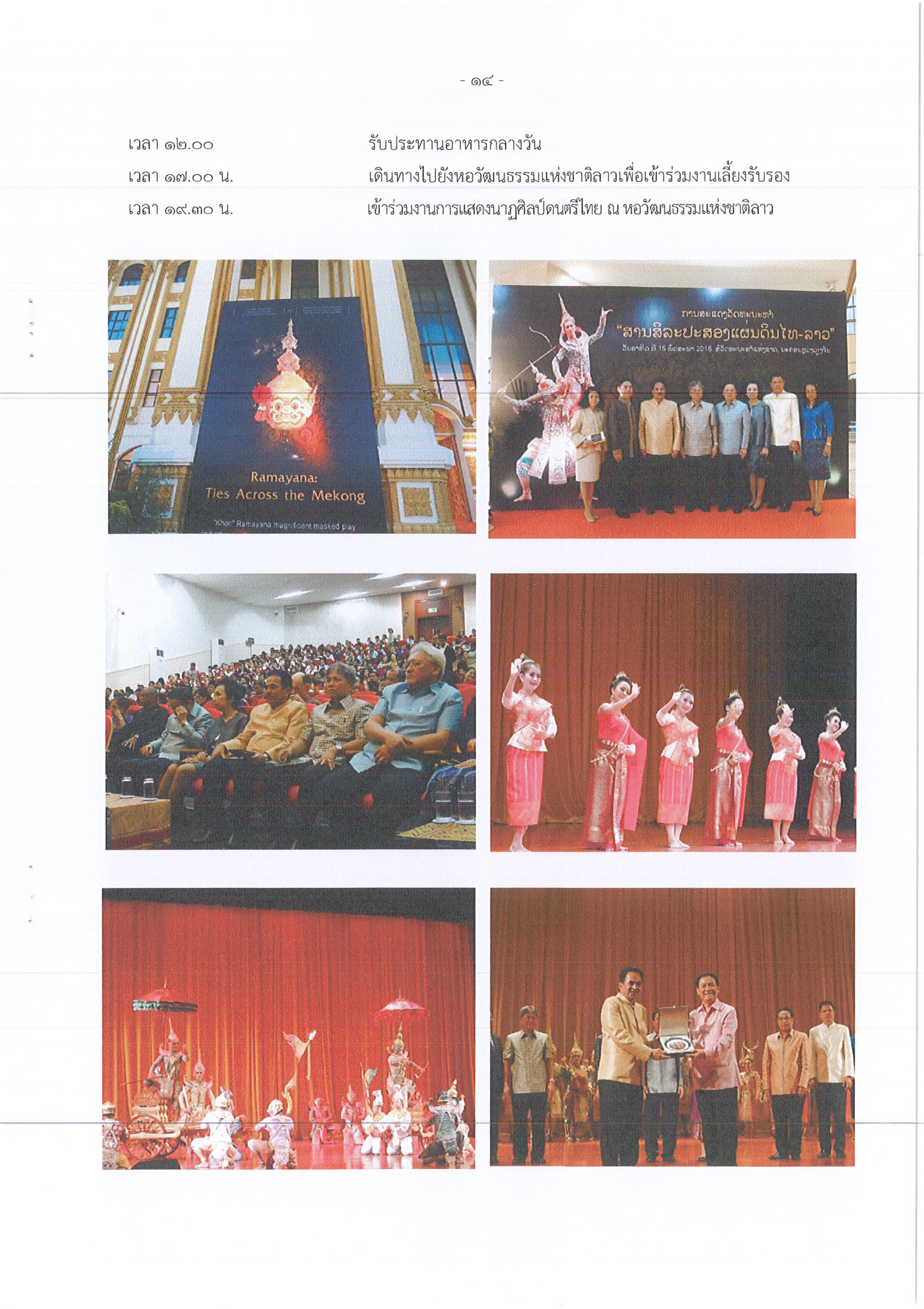 รายงานการเดินทางไปราชาร ณ สาธารณรัฐประชาธิปไตยประชาชนลาว ระหว่างวันที่ 14 – 16 พฤษภาคม 2559 โครงการมหกรรมการแสดงด้านนาฏศิลป์ ดุริยางคศิลป์ และดนตรีแบบบูรณาการ ปีงบประมาณ 2559 การจัดงานเผยแพร่แลกเปลี่ยนนาฏศิลป์ – ดนตรี ณ หอวัฒนธรรมแห่งชาติลาว นครหลวงเวียงจันทน์