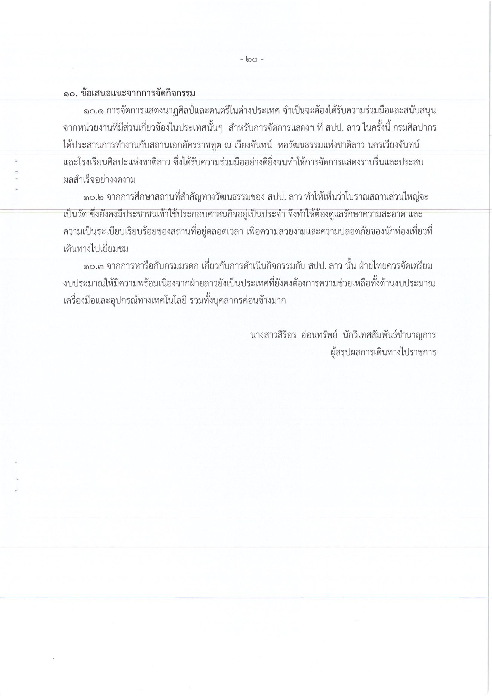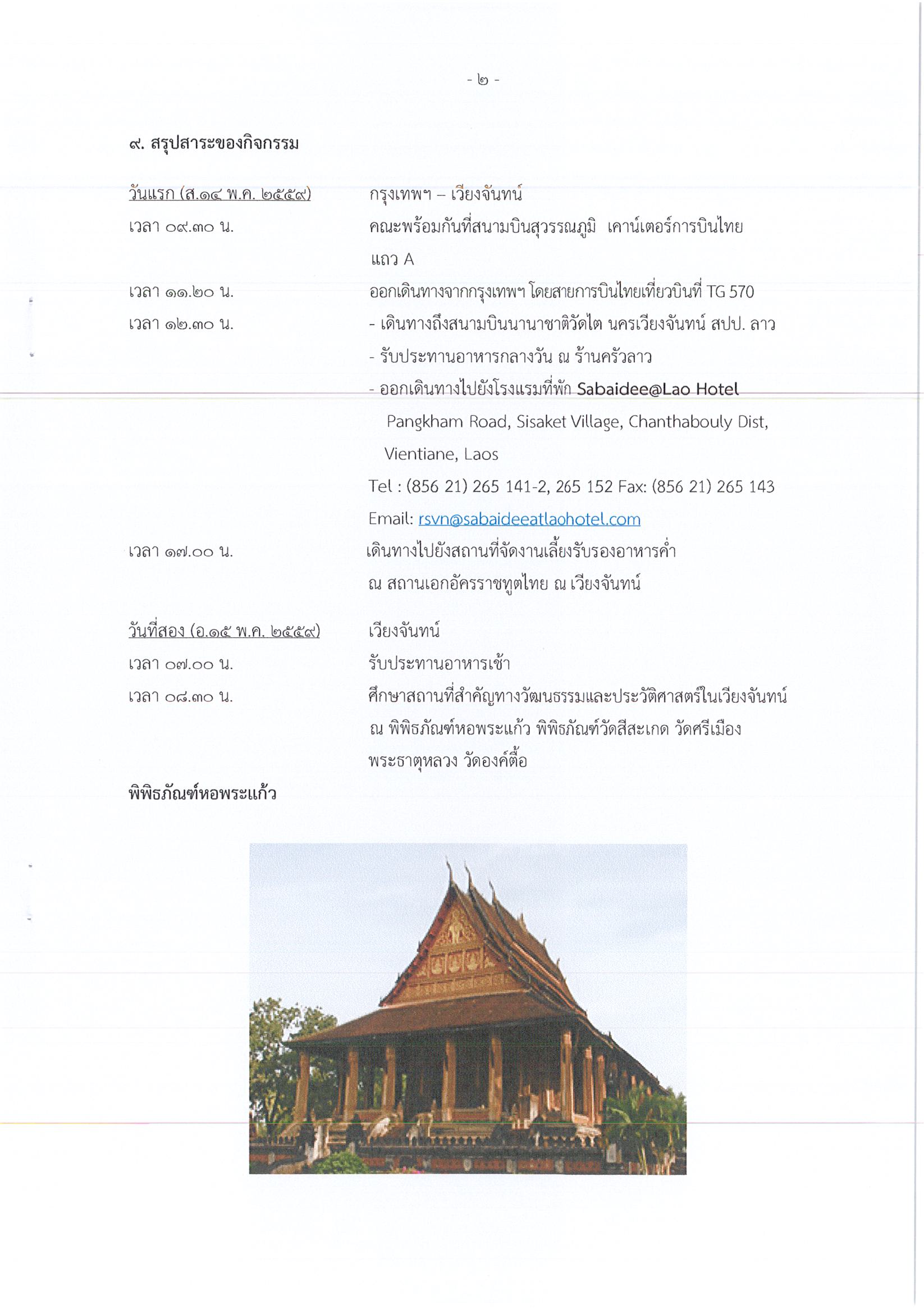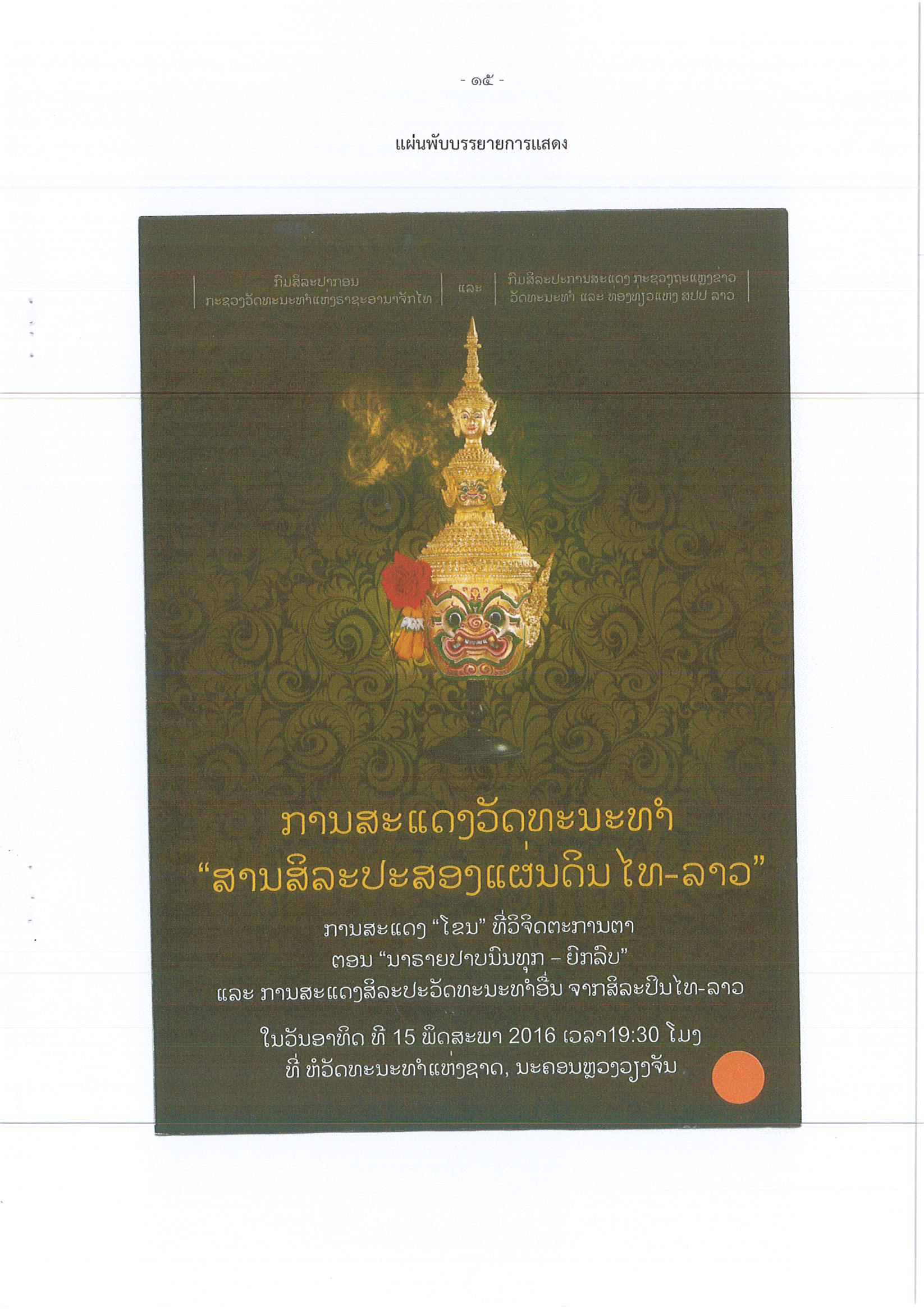 รายงานการเดินทางไปราชาร ณ สาธารณรัฐประชาธิปไตยประชาชนลาว ระหว่างวันที่ 14 – 16 พฤษภาคม 2559 โครงการมหกรรมการแสดงด้านนาฏศิลป์ ดุริยางคศิลป์ และดนตรีแบบบูรณาการ ปีงบประมาณ 2559 การจัดงานเผยแพร่แลกเปลี่ยนนาฏศิลป์ – ดนตรี ณ หอวัฒนธรรมแห่งชาติลาว นครหลวงเวียงจันทน์