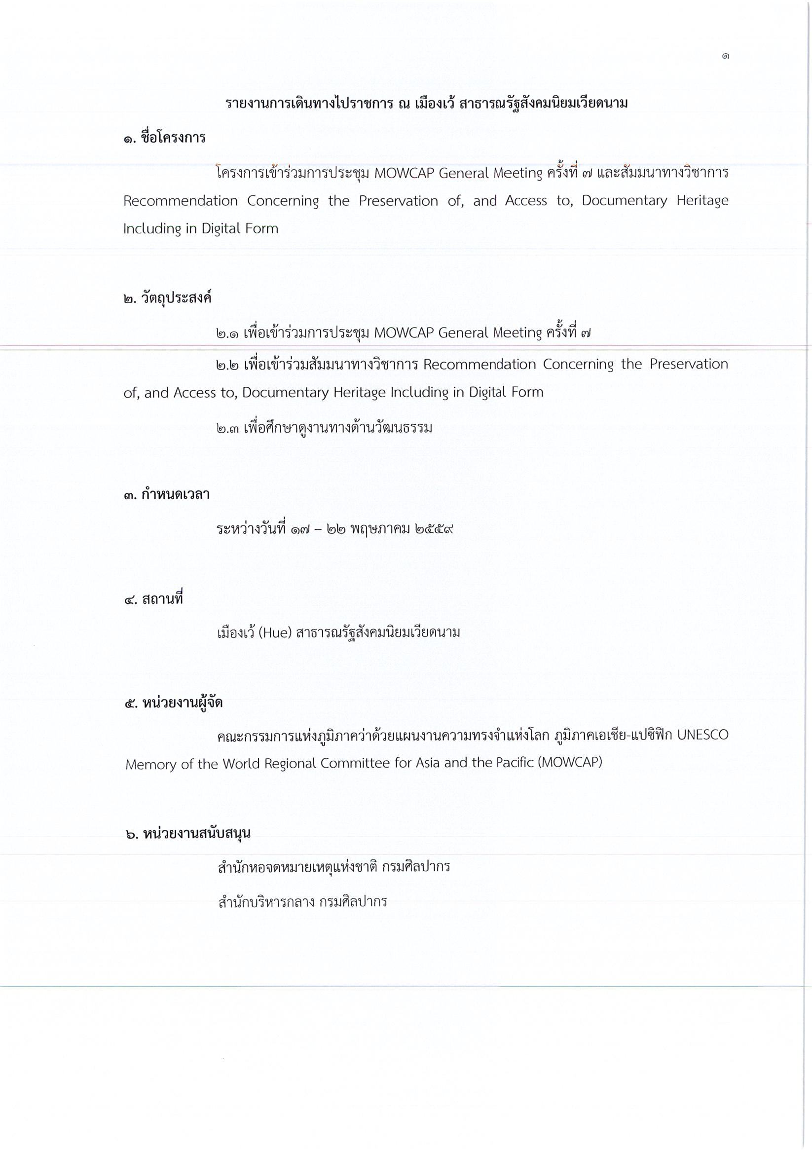 รายงานการเดินทางไปราชการ ณ สาธารณรัฐสังคมนิยมเวียดนาม ระหว่างวันที่ 17 – 22 พฤษภาคม 2559 โครงการเข้าร่วมการประชุมและสัมมนาทางวิชาการ ณ เมืองเว้