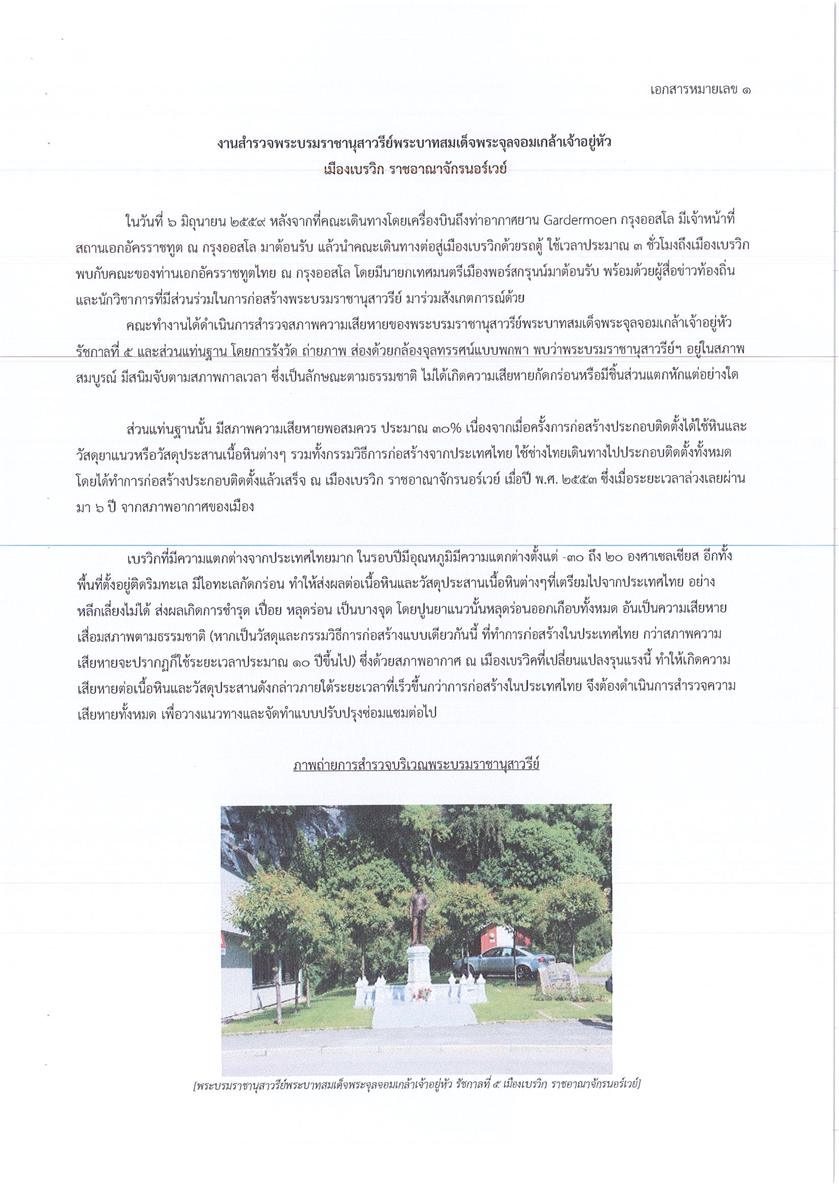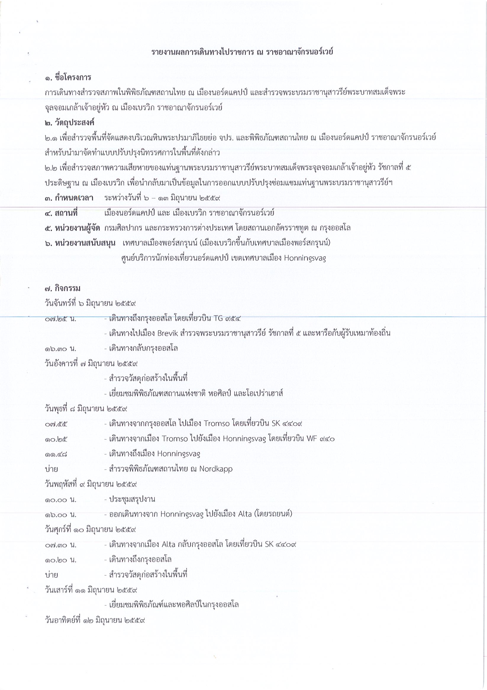 รายงานการเดินทางไปราชการ ณ ราชอาณาจักรนอร์เวย์ ระหว่างวันที่ 6 – 13 มิถุนายน 2559 โครงการสำรวจสภาพในพิพิธภัณฑสถานไทย ณ เมืองนอร์ดแคปป์ และสำรวจพระบรมราชานุสาวรีย์พระบาทสมเด็จพระจุลจอมเกล้าเจ้าอยู่หัว ณ เมืองเบรวิก