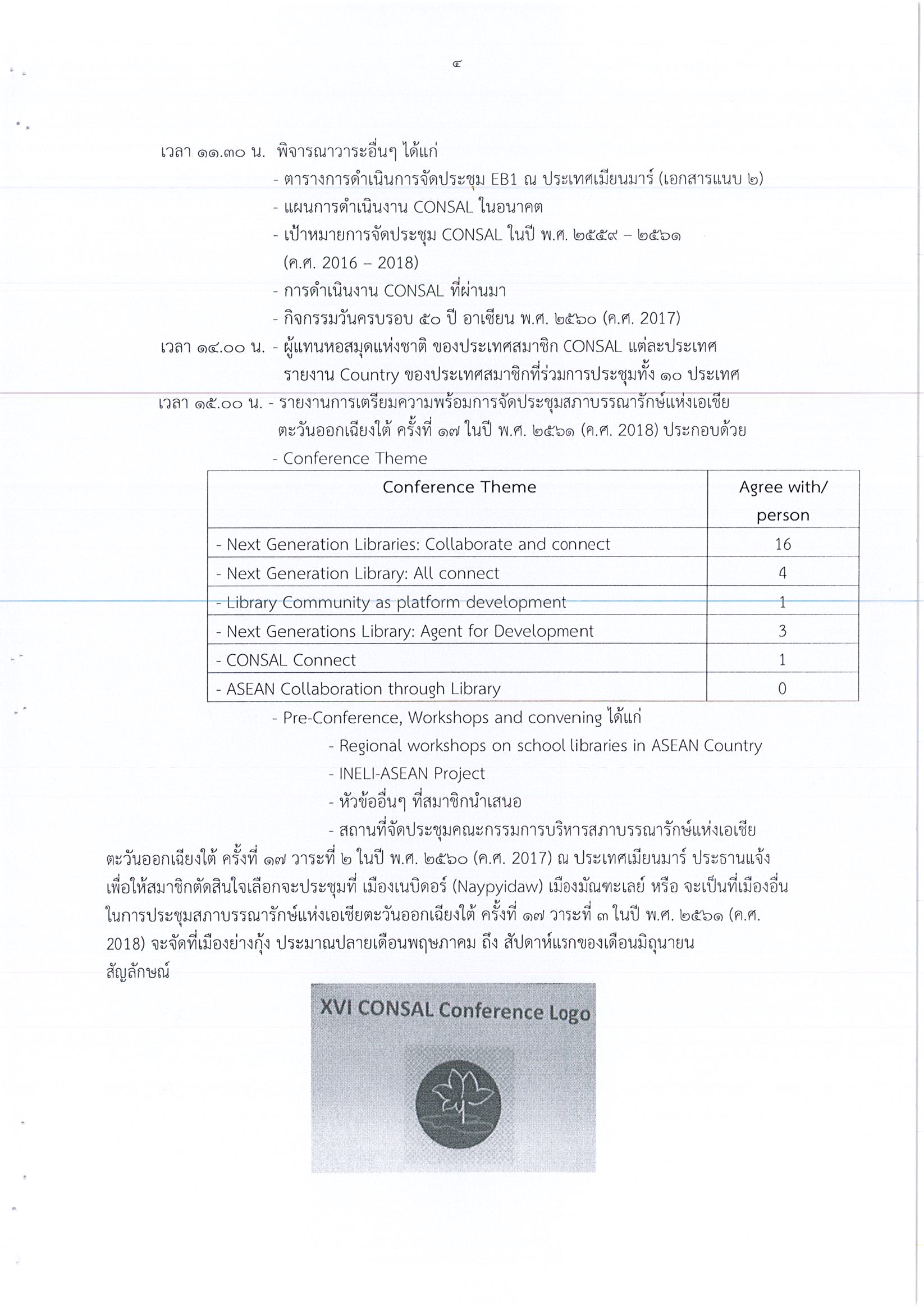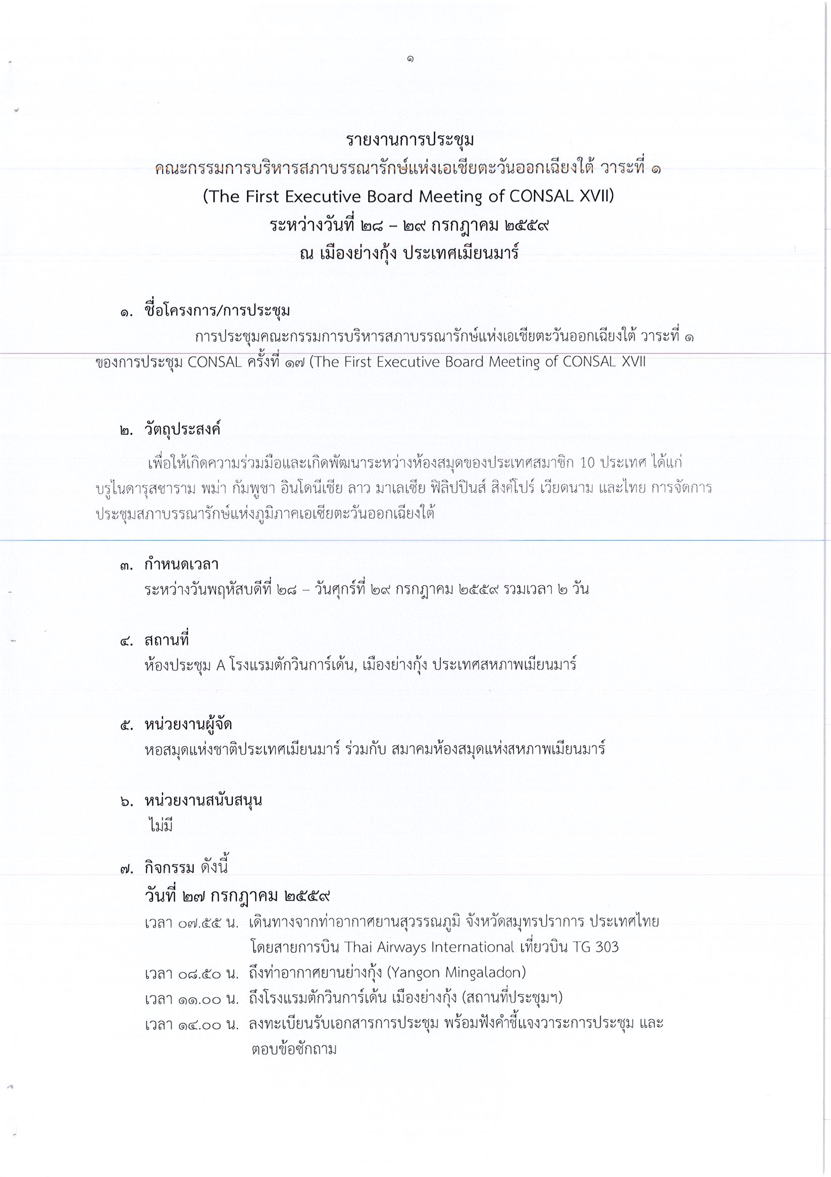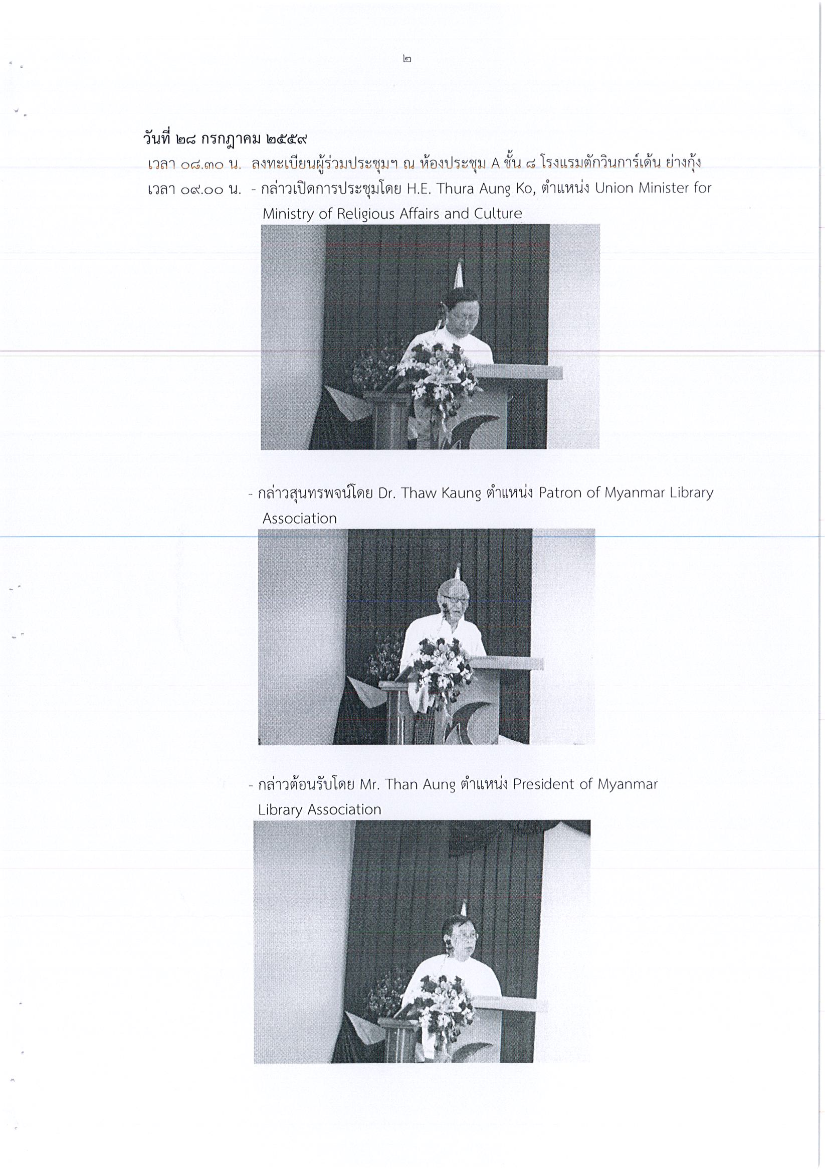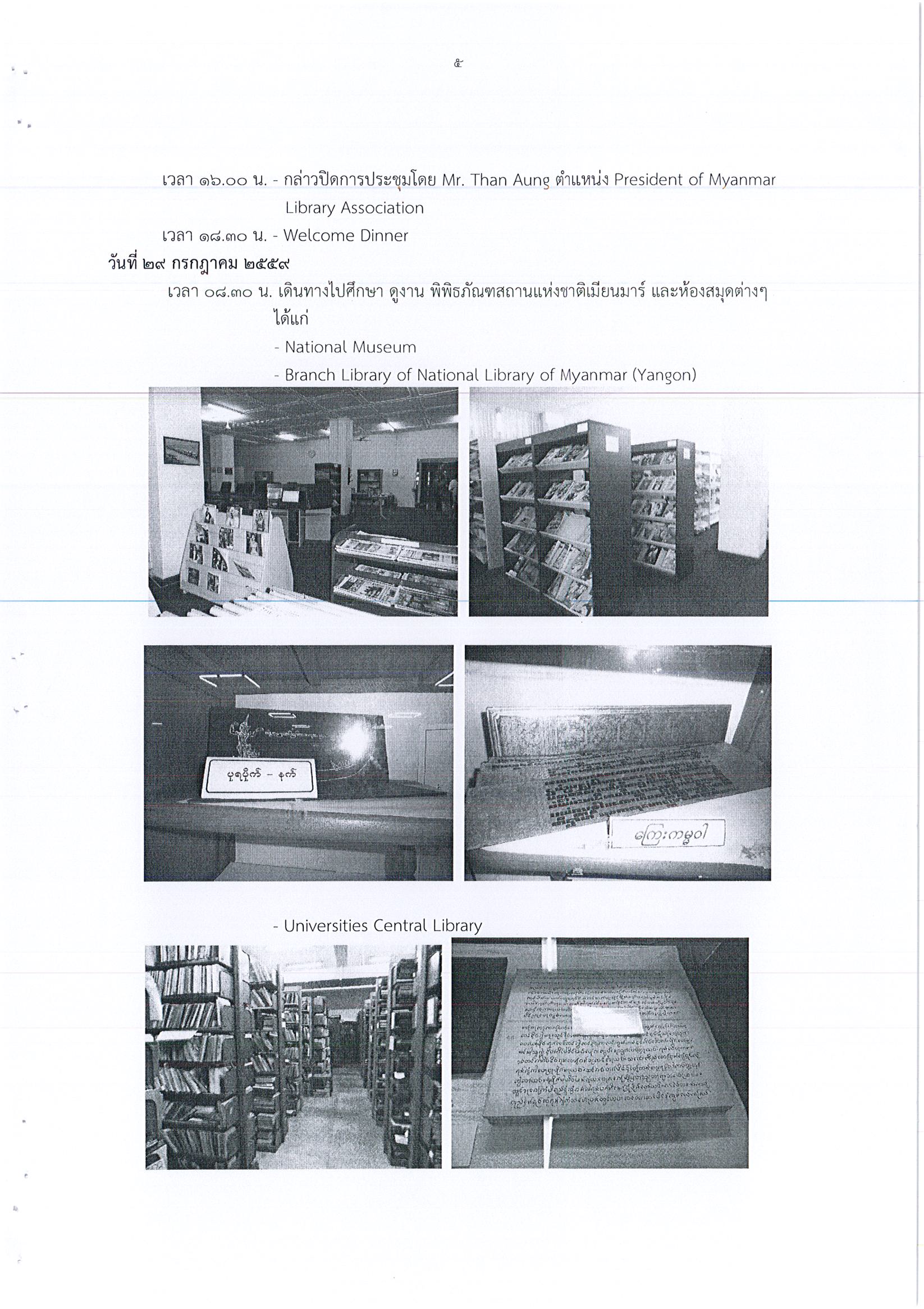 รายงานการเดินทางไปราชการ ณ สหภาพแห่งสาธารณรัฐเมียนมาร์ ระหว่างวันที่ 28 – 29 กรกฎาคม 2559 โครงการประชุมคณะกรรมการบริหารสภาบรรณารักษ์แห่งเอเชียตะวันออกเฉียงใต้ วาระที่ 1 ของการประชุม CONSAL ครั้งที่ 17