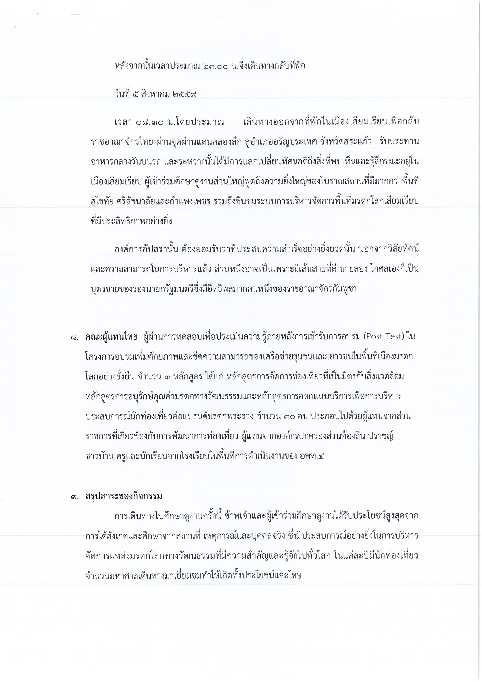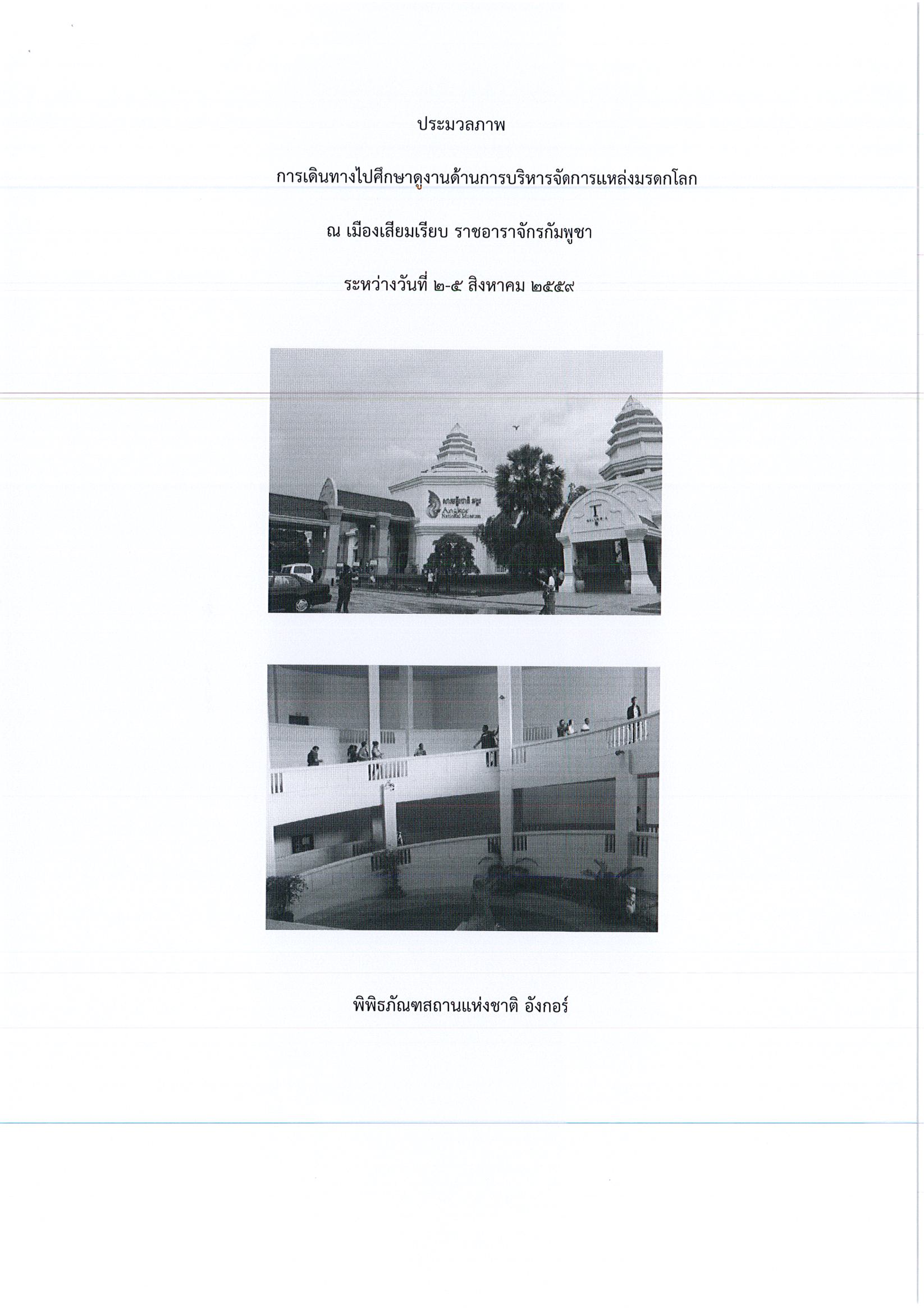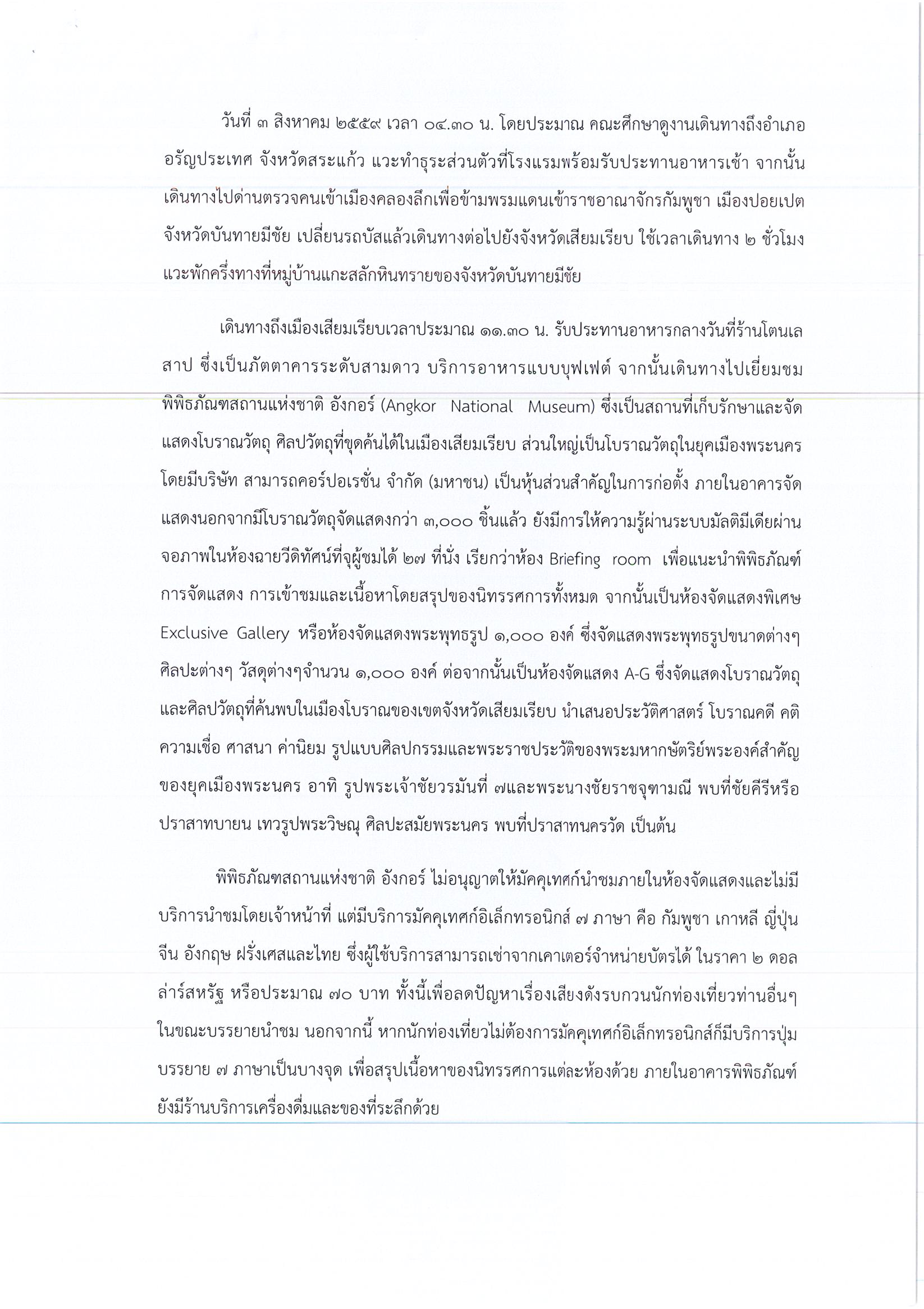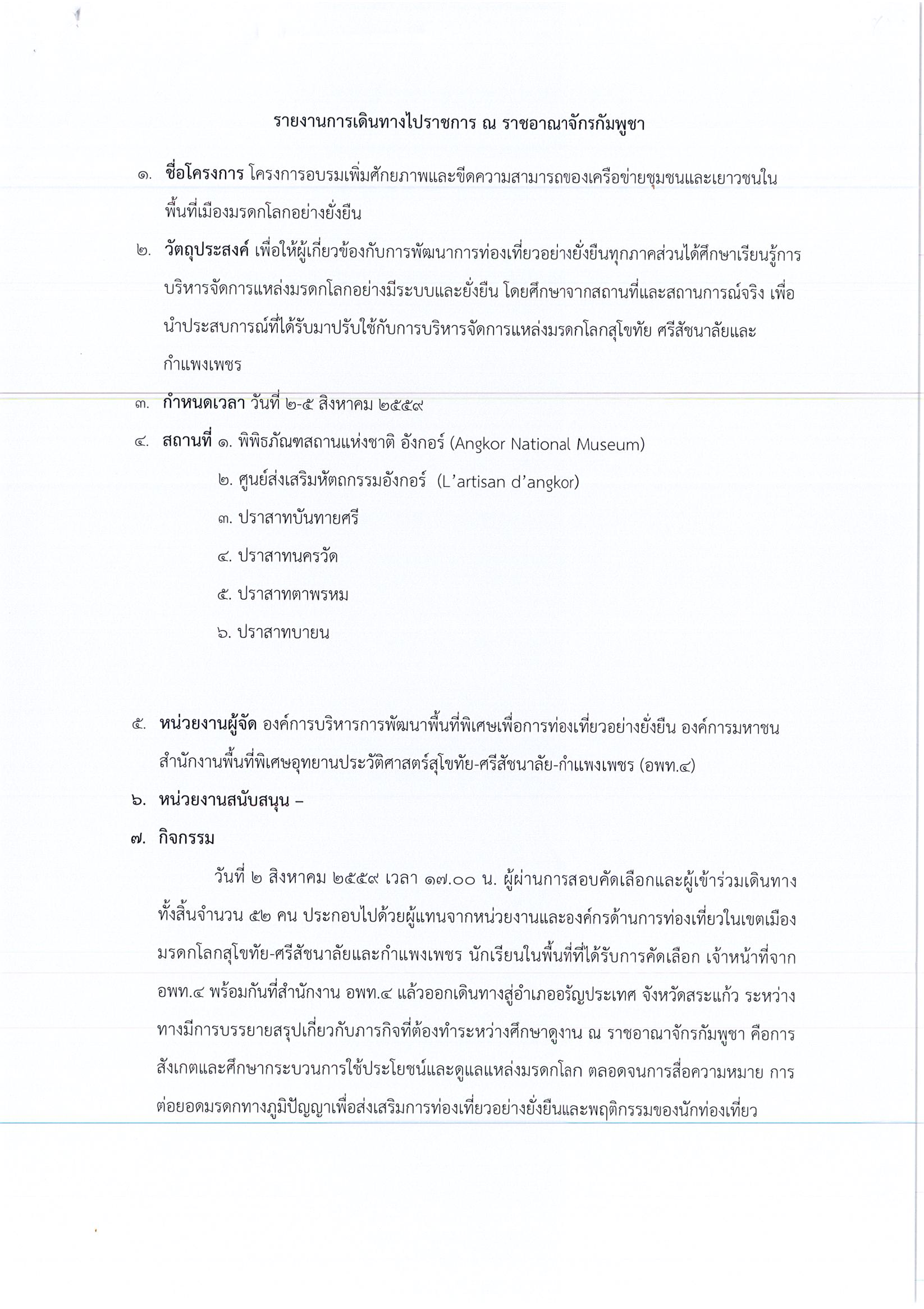 รายงานการเดินทางไปราชการ ณ ราชอาณาจักรกัมพูชา ระหว่างวันที่ 2 – 5 สิงหาคม 2559 โครงการอบรมเพิ่มศักยภาพและขีดความสามารถของเครือข่ายชุมชนและเยาวชนในพื้นที่เมืองมรดกโลกอย่างยั่งยืน