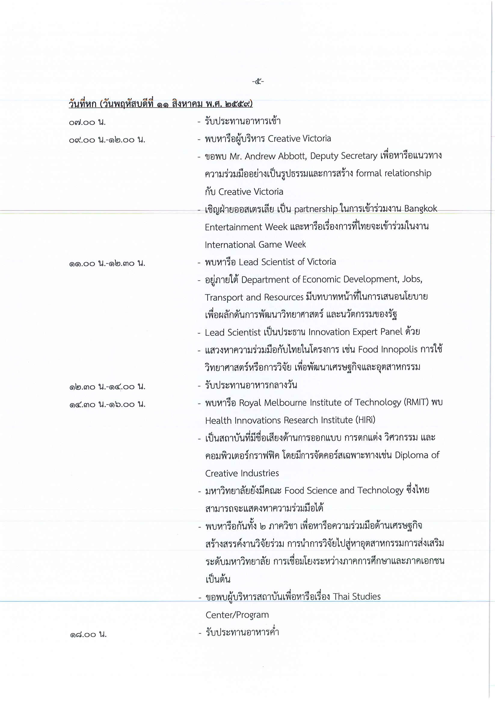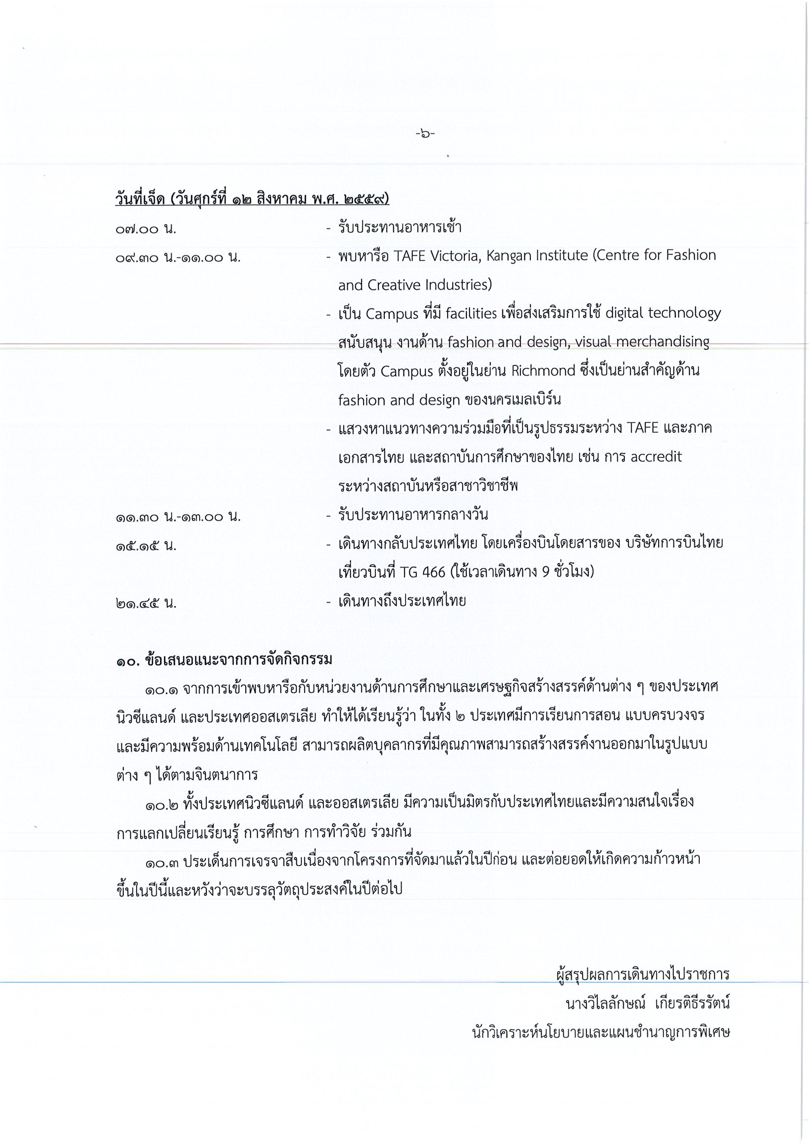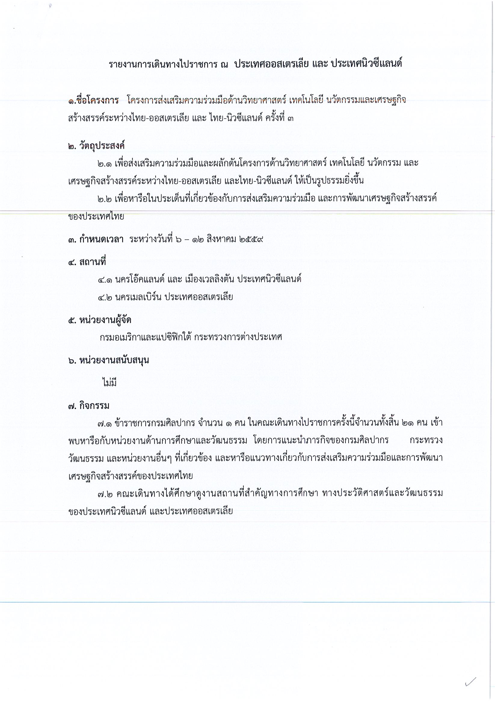 รายงานการเดินทางไปราชการ ณ เครือรัฐออสเตรเลีย และประเทศนิวซีแลนด์ ระหว่างวันที่ 6 – 12 สิงหาคม 2559 โครงการส่งเสริมความร่วมมือด้านวิทยาศาสตร์ เทคโนโลยี นวัตกรรมและเศรษฐกิจสร้างสรรค์ระหว่างไทย – ออสเตรเลีย และไทย – นิวซีแลนด์ ครั้งที่ 3