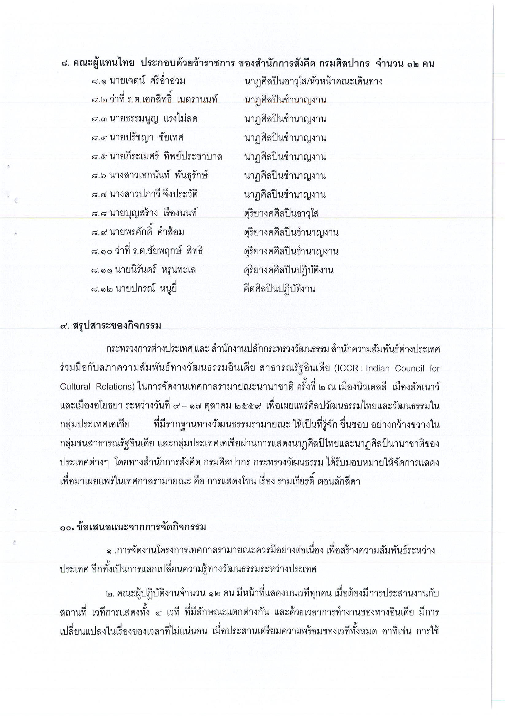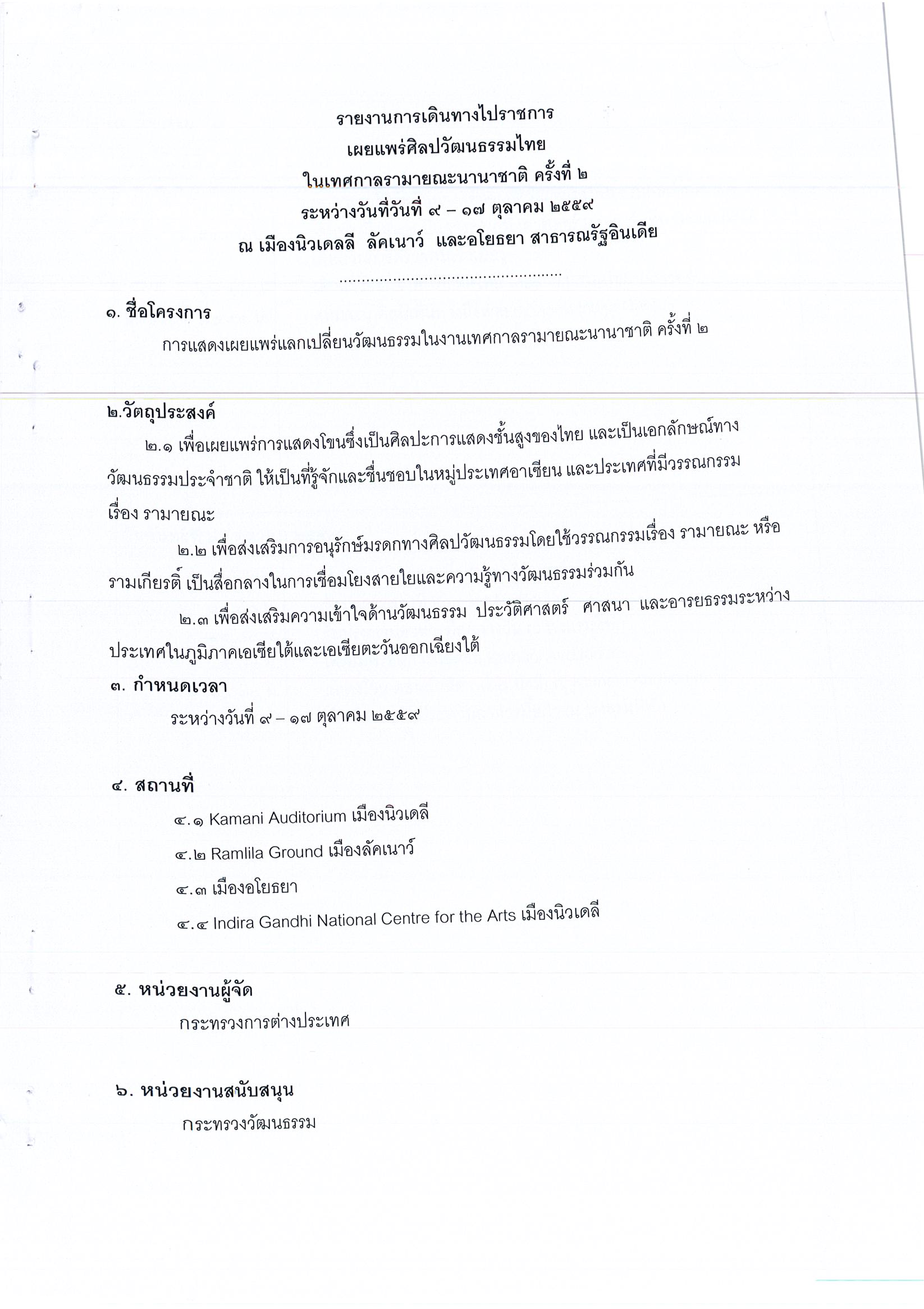 รายงานการเดินทางไปราชการ ณ สาธารณรัฐอินเดีย ระหว่างวันที่ 9 – 17 ตุลาคม 2559 โครงการเผยแพร่แลกเปลี่ยนวัฒนธรรมในงานเทศกาลรามายณะนานาชาติ ครั้งที่ 2