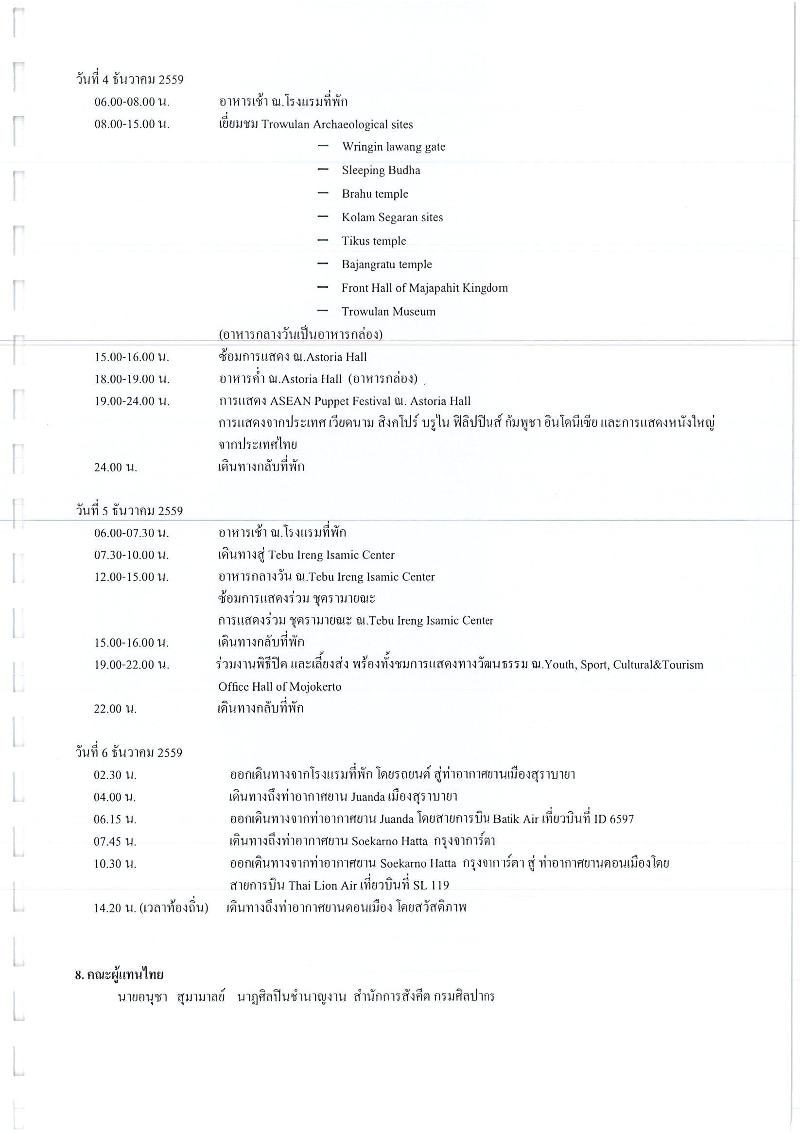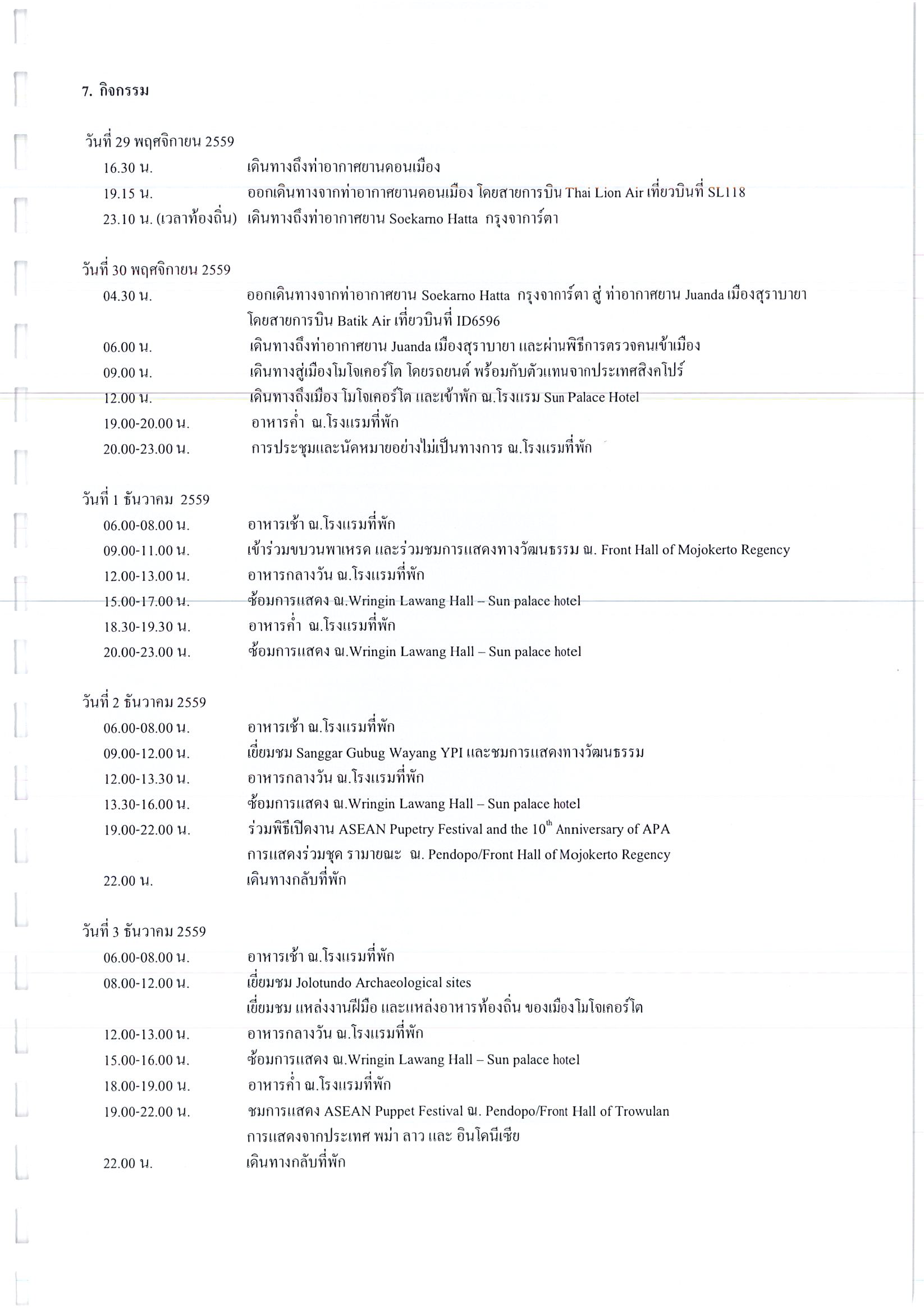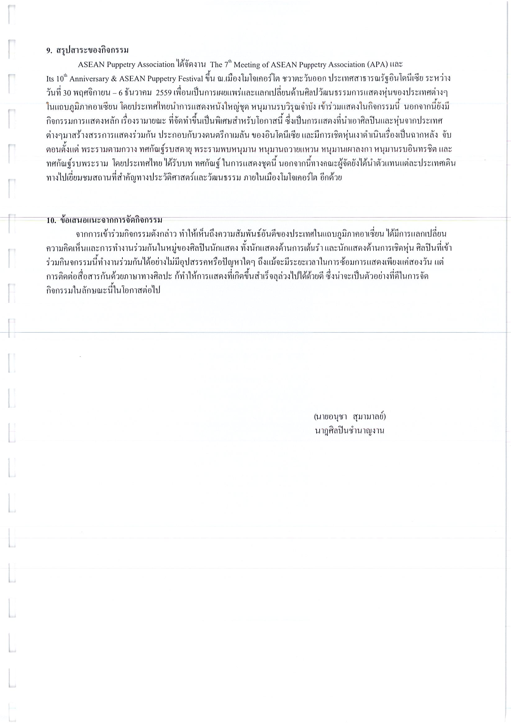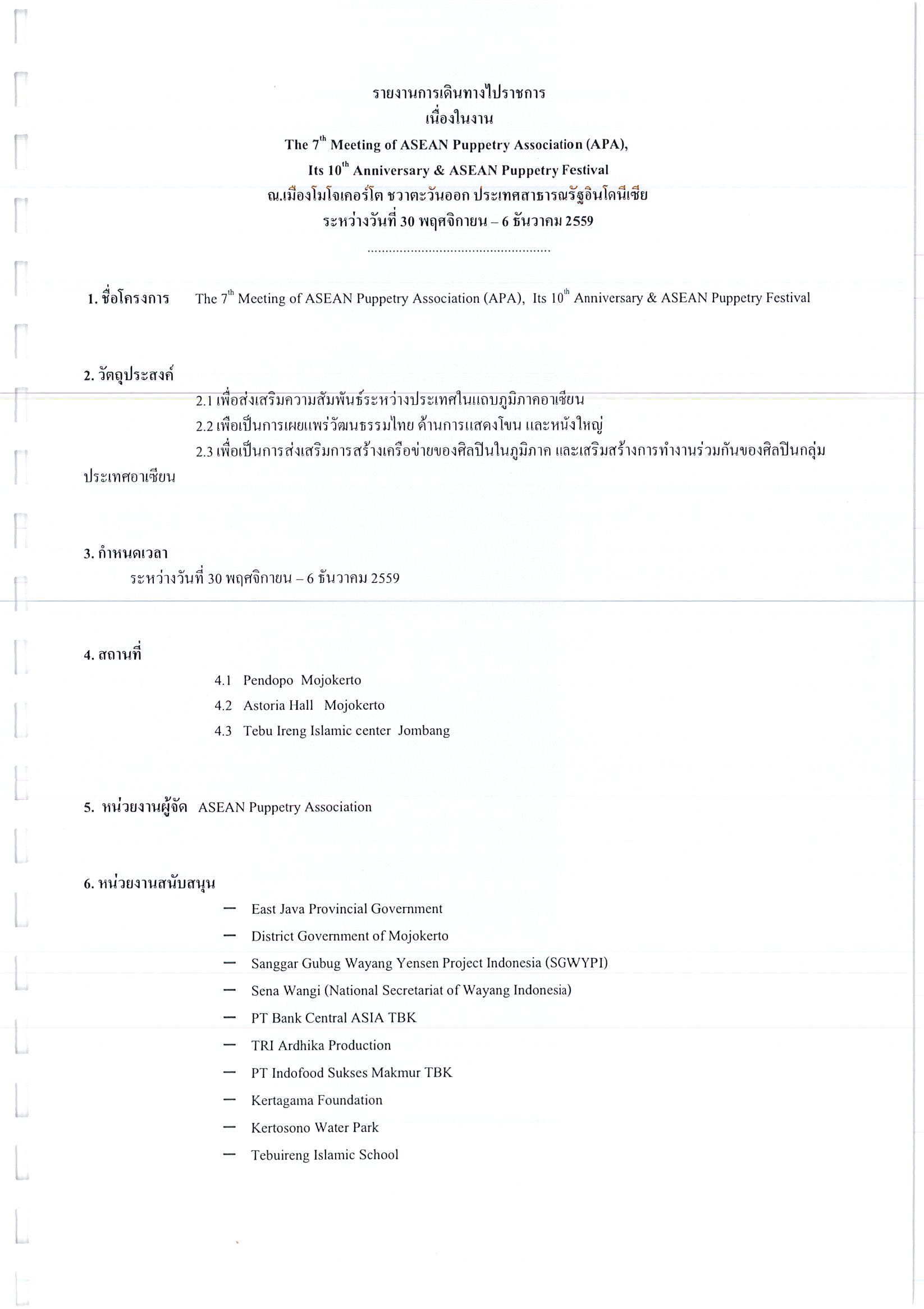 รายงานการเดินทางไปราชการ ณ สาธารณรัฐอินโดนีเซีย ระหว่างวันที่ 30 พฤศจิกายน – 6 ธันวาคม 2559 โครงการ The 7th Meeting of ASEAN Puppetry Association (APA), Its 10th Anniversary & ASEAN Puppetry Festival