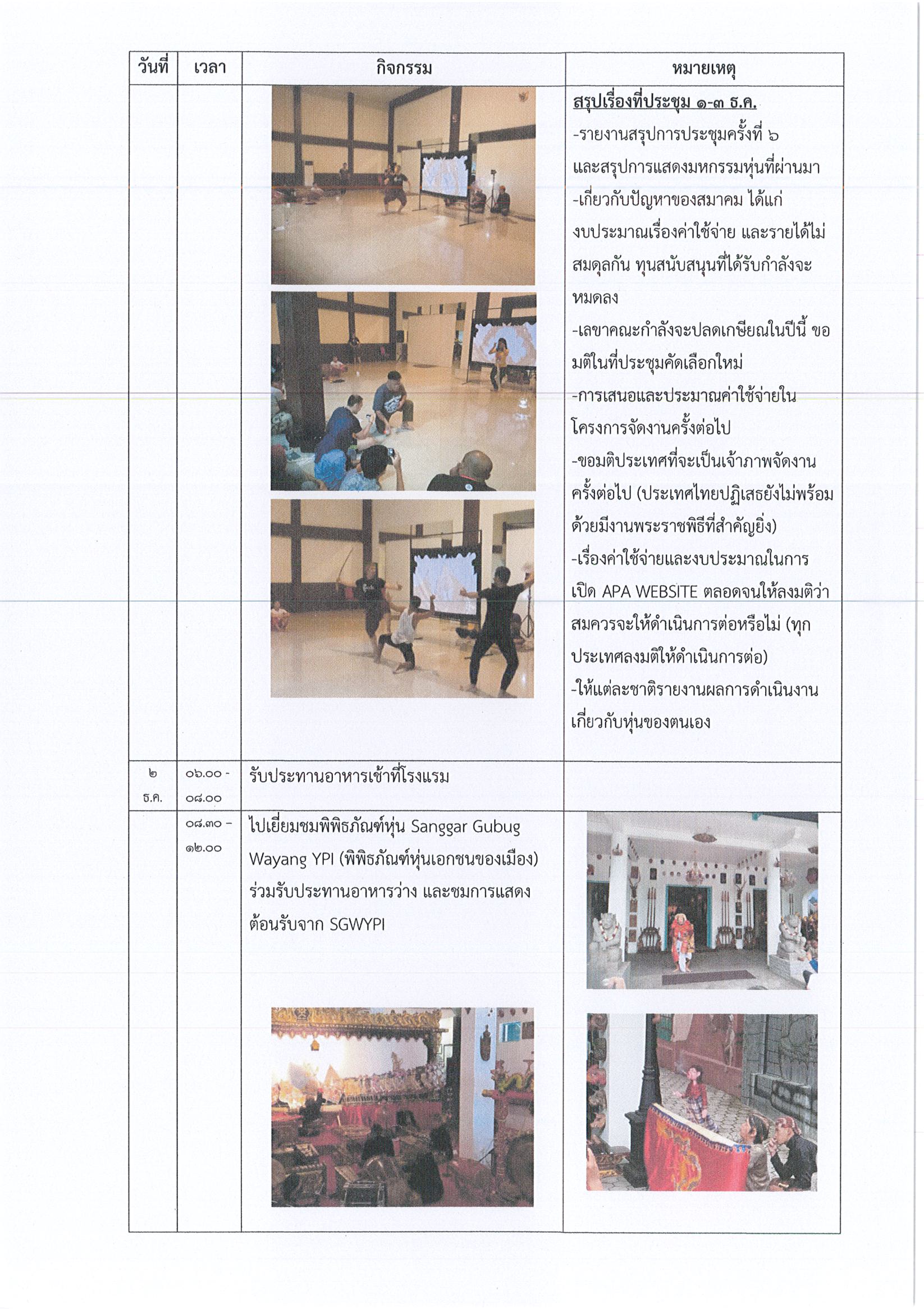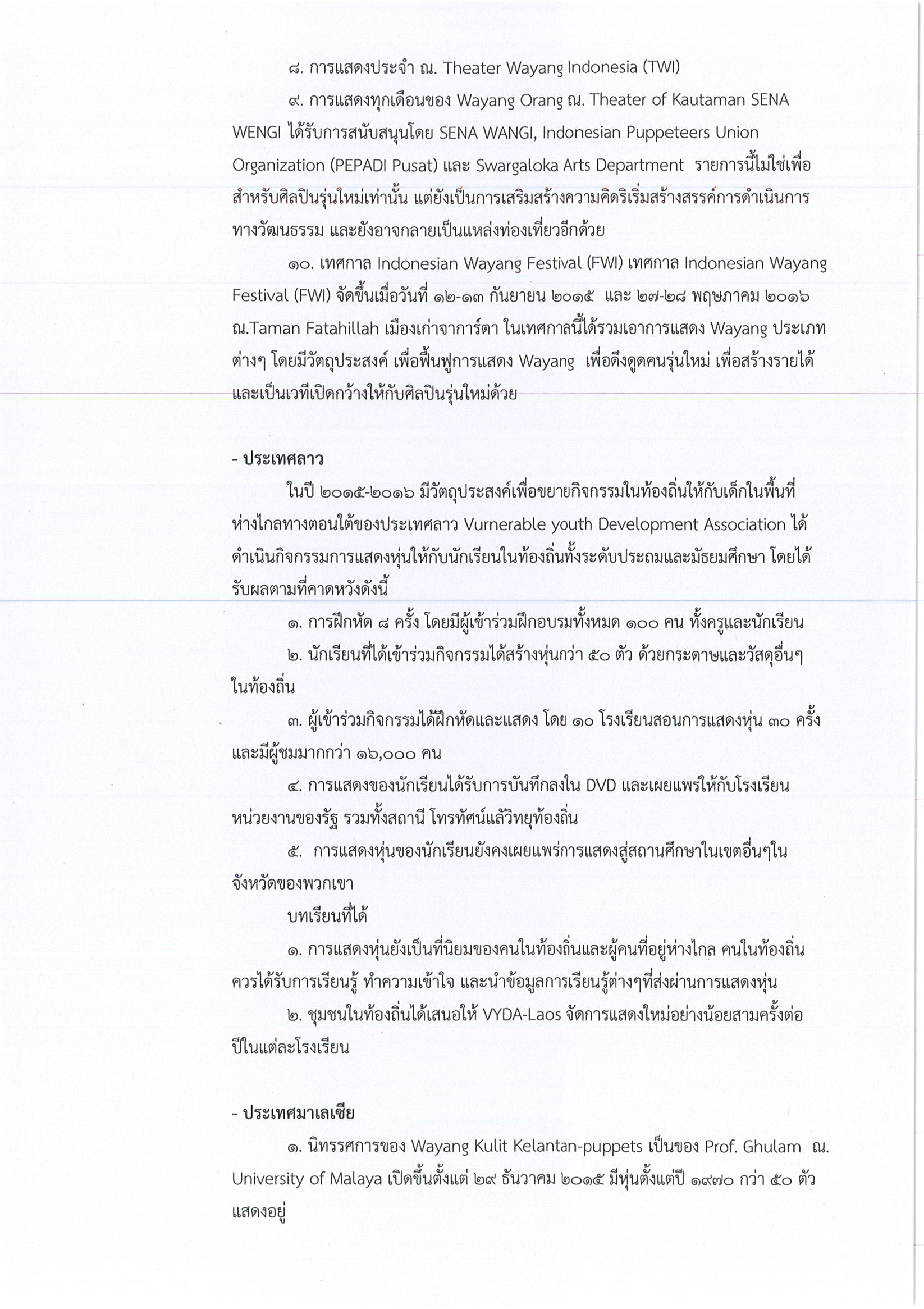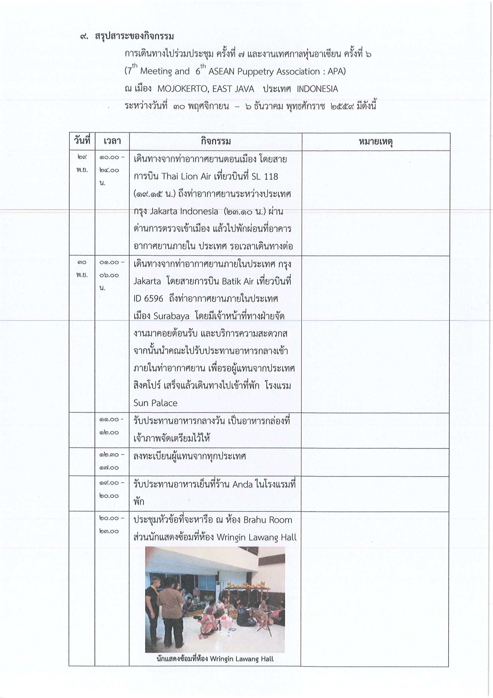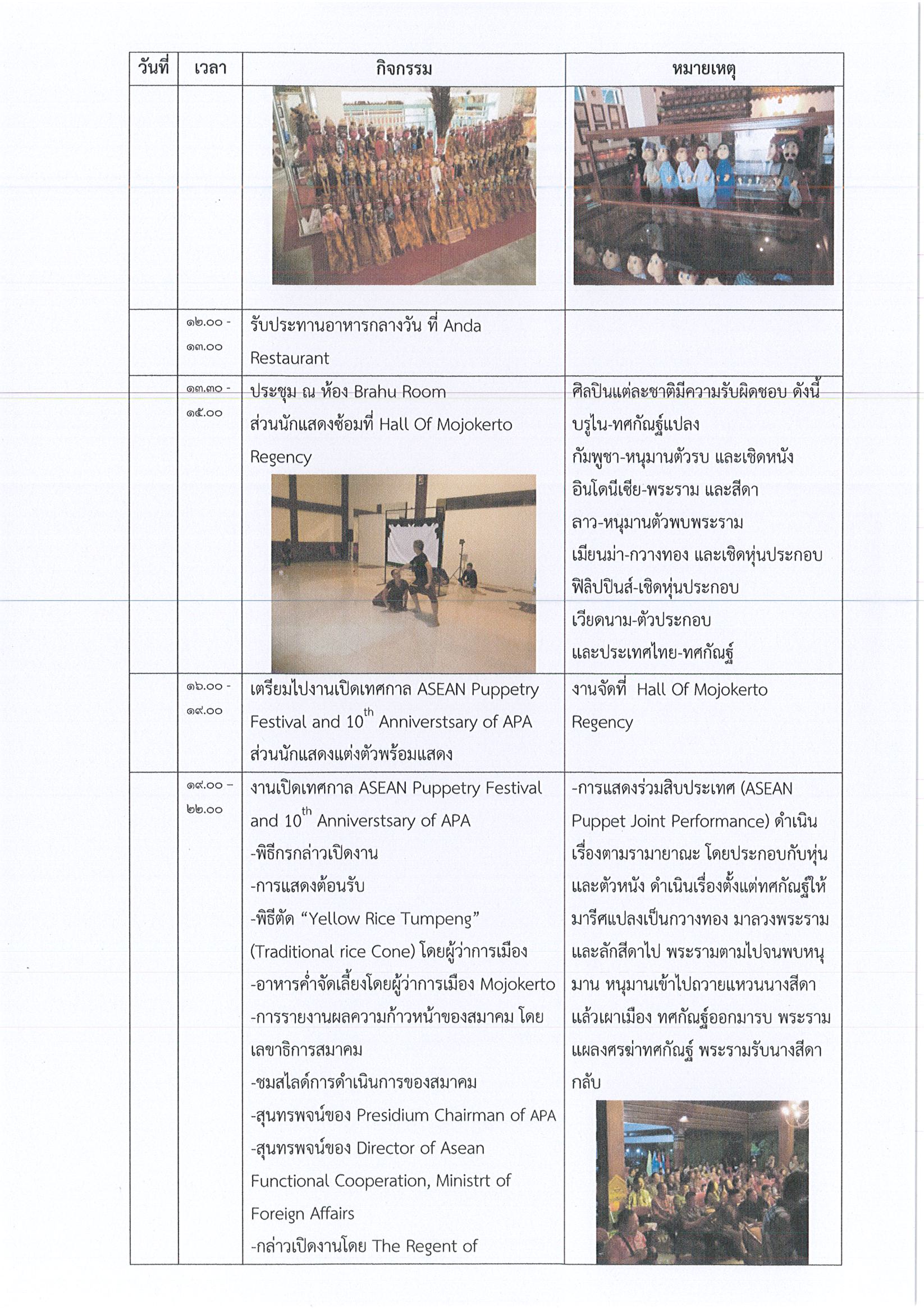 รายงานการเดินทางไปราชการ ณ สาธารณรัฐอินโดนีเซีย ระหว่างวันที่ 30 พฤศจิกายน – 6 ธันวาคม 2559 โครงการประชุมครั้งที่ 7 และเทศกาลหุ่นอาเซียนครั้งที่ 6