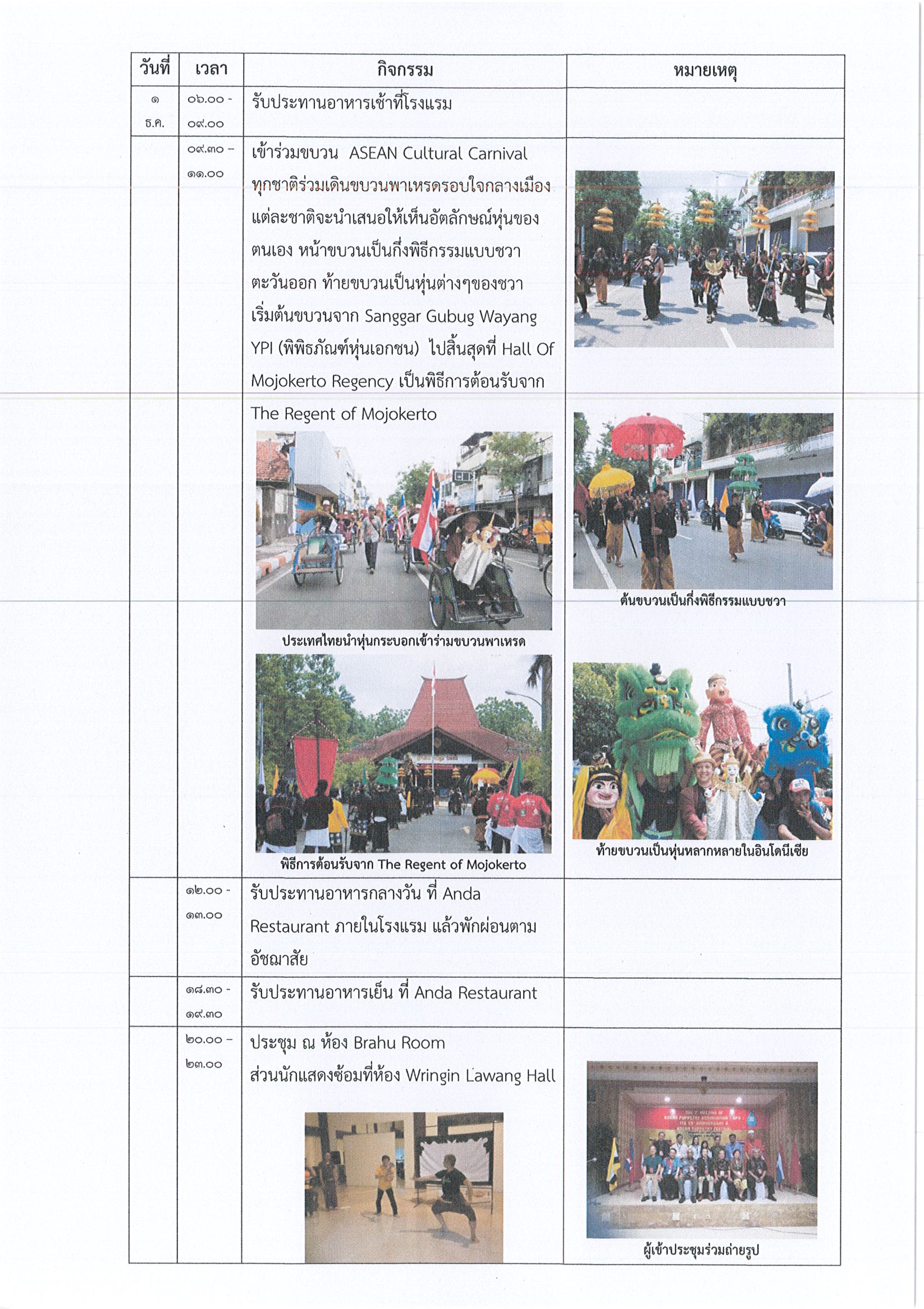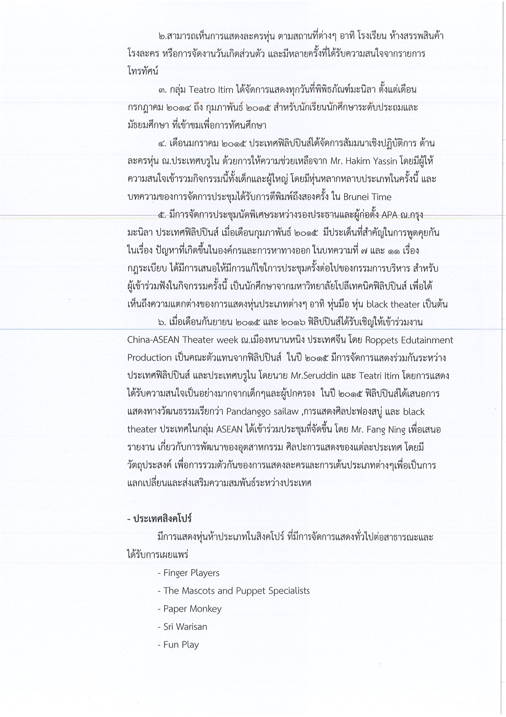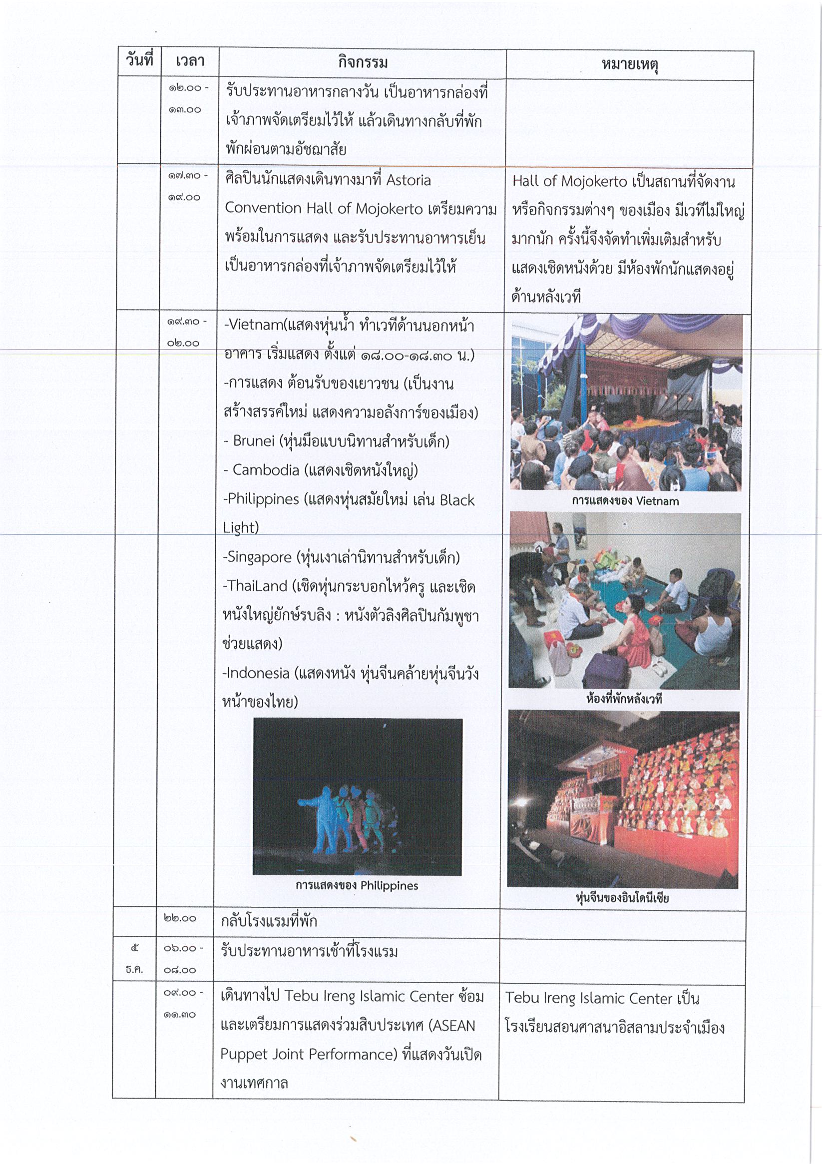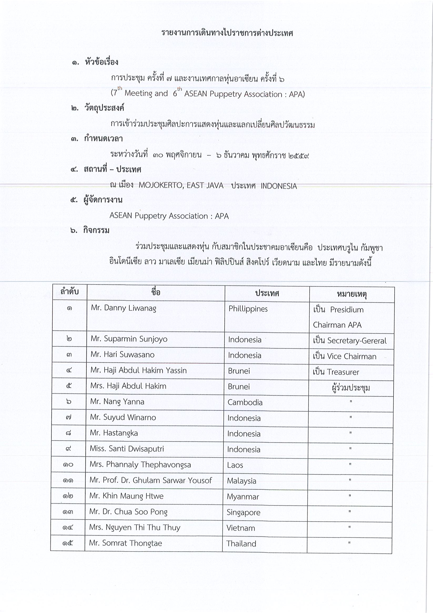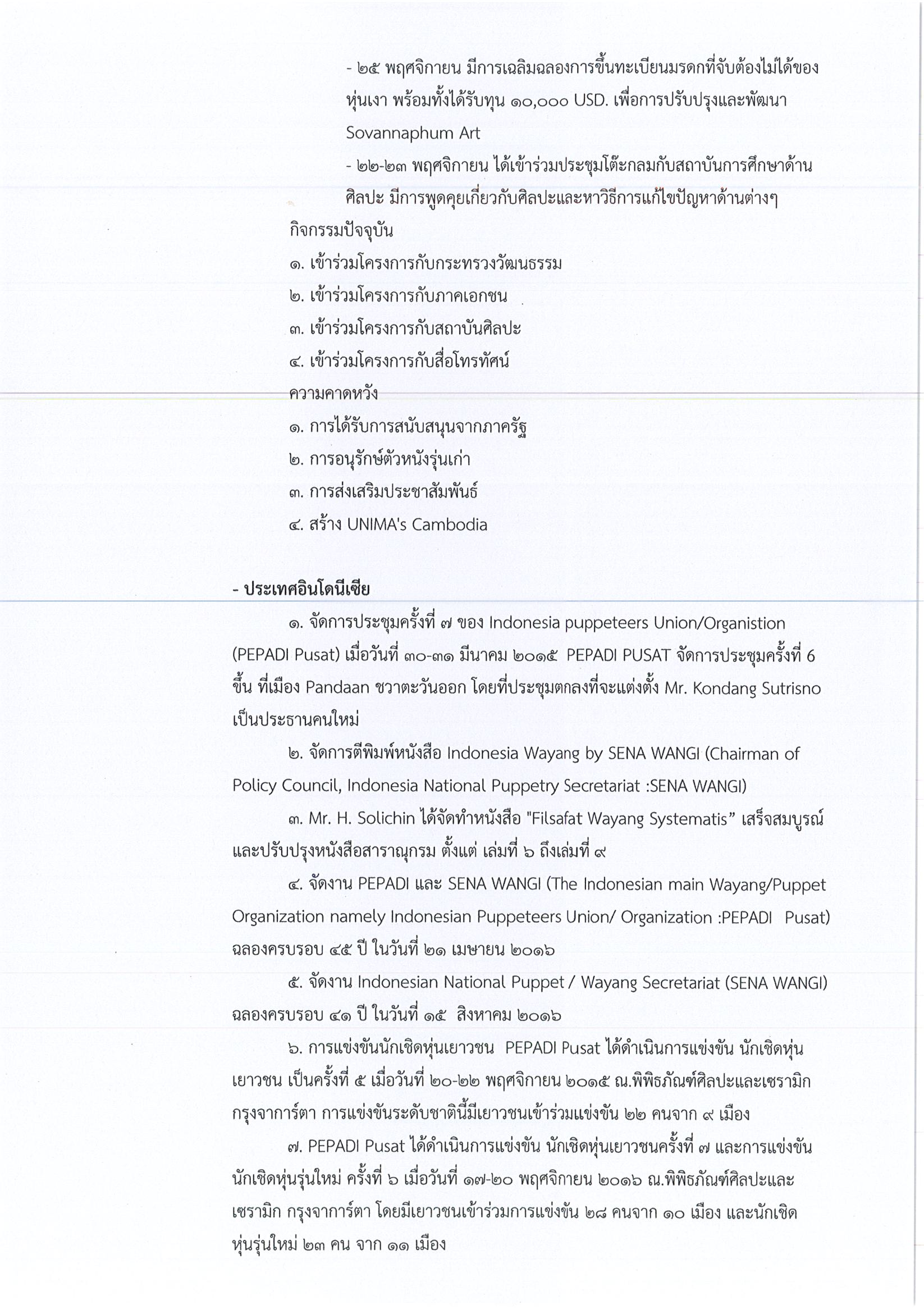 รายงานการเดินทางไปราชการ ณ สาธารณรัฐอินโดนีเซีย ระหว่างวันที่ 30 พฤศจิกายน – 6 ธันวาคม 2559 โครงการประชุมครั้งที่ 7 และเทศกาลหุ่นอาเซียนครั้งที่ 6