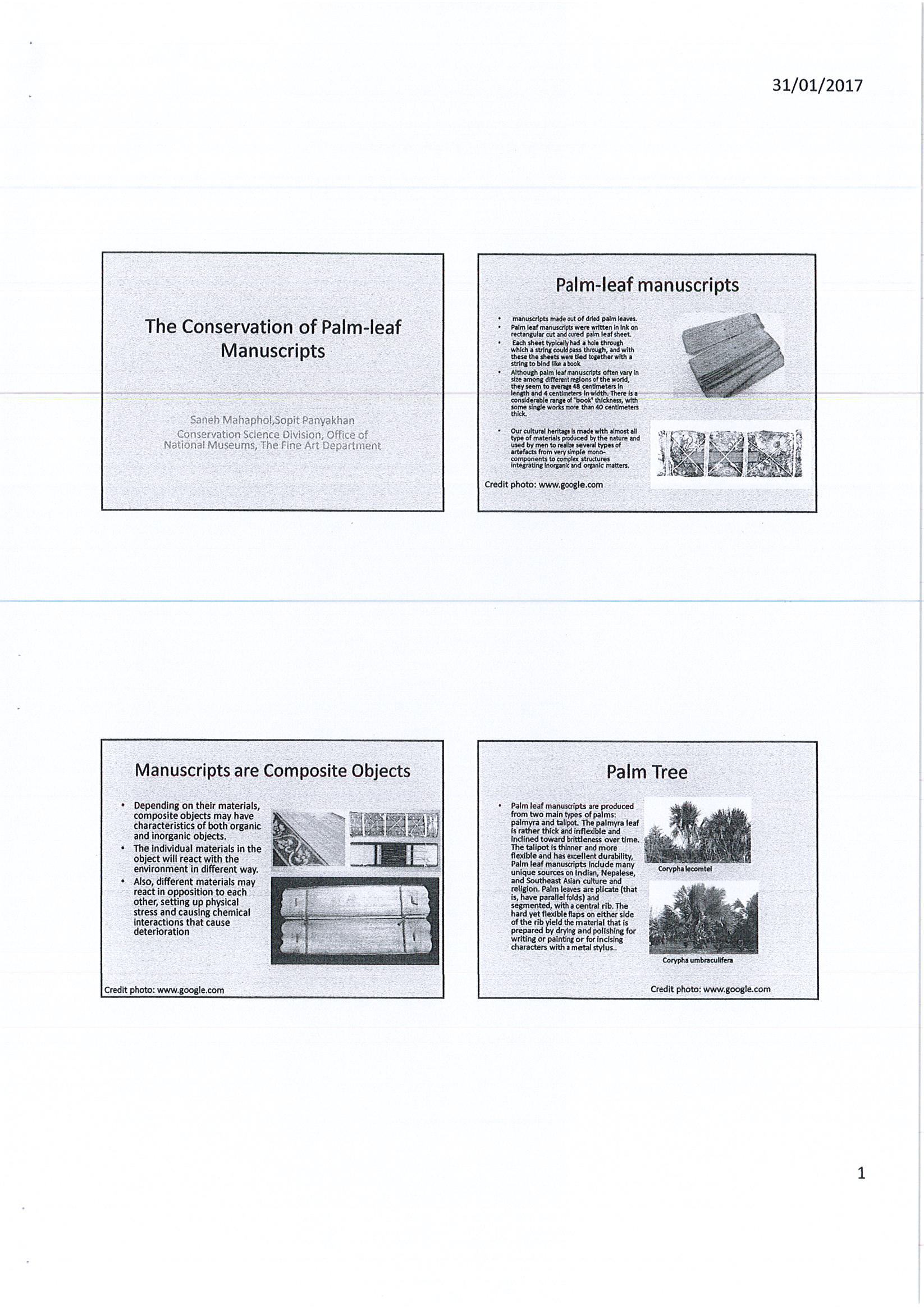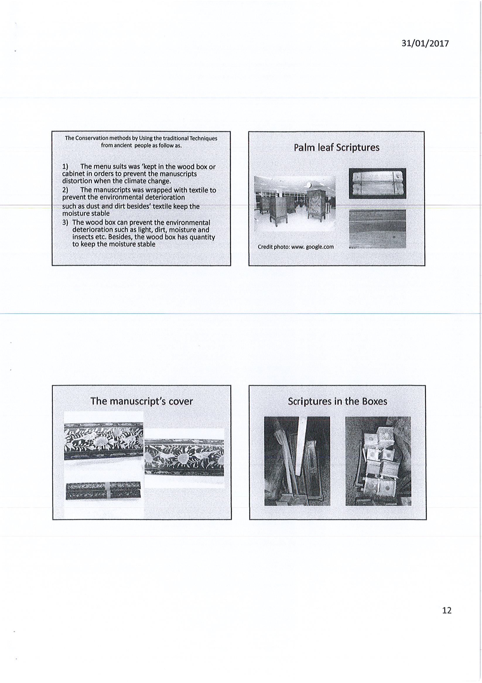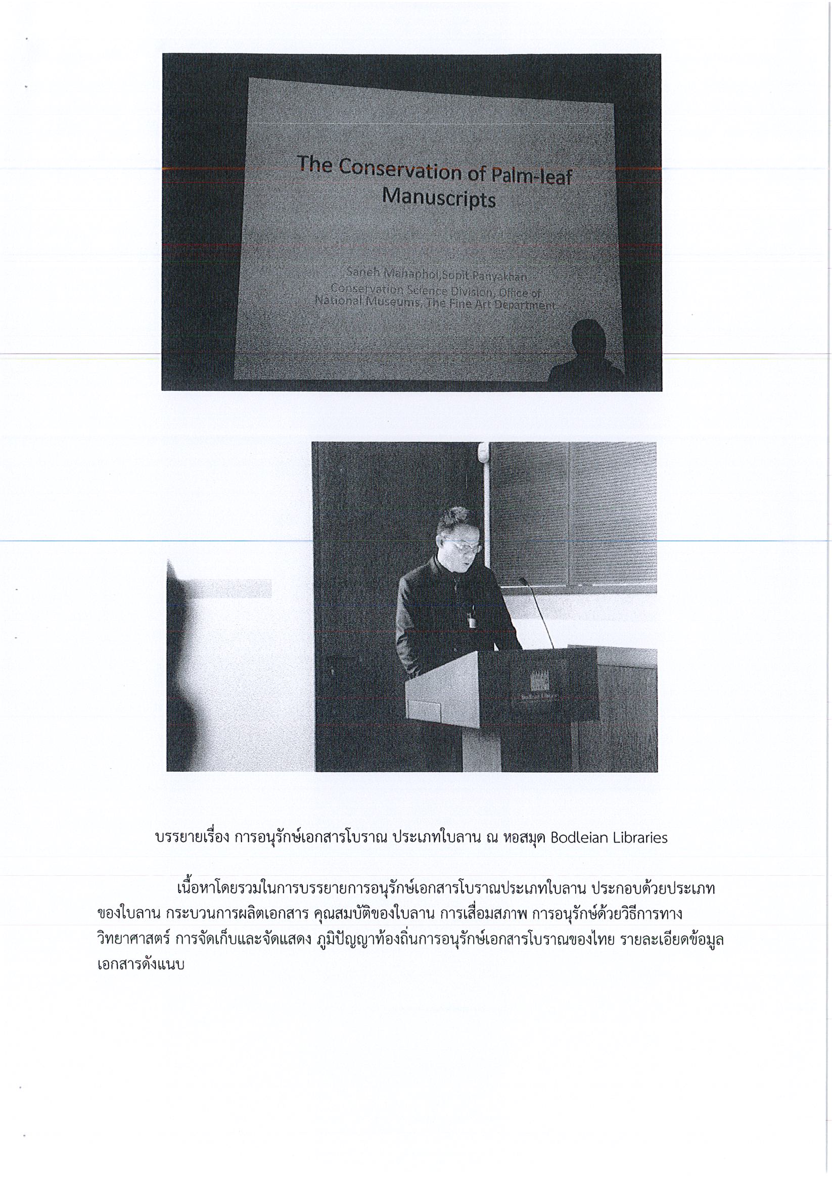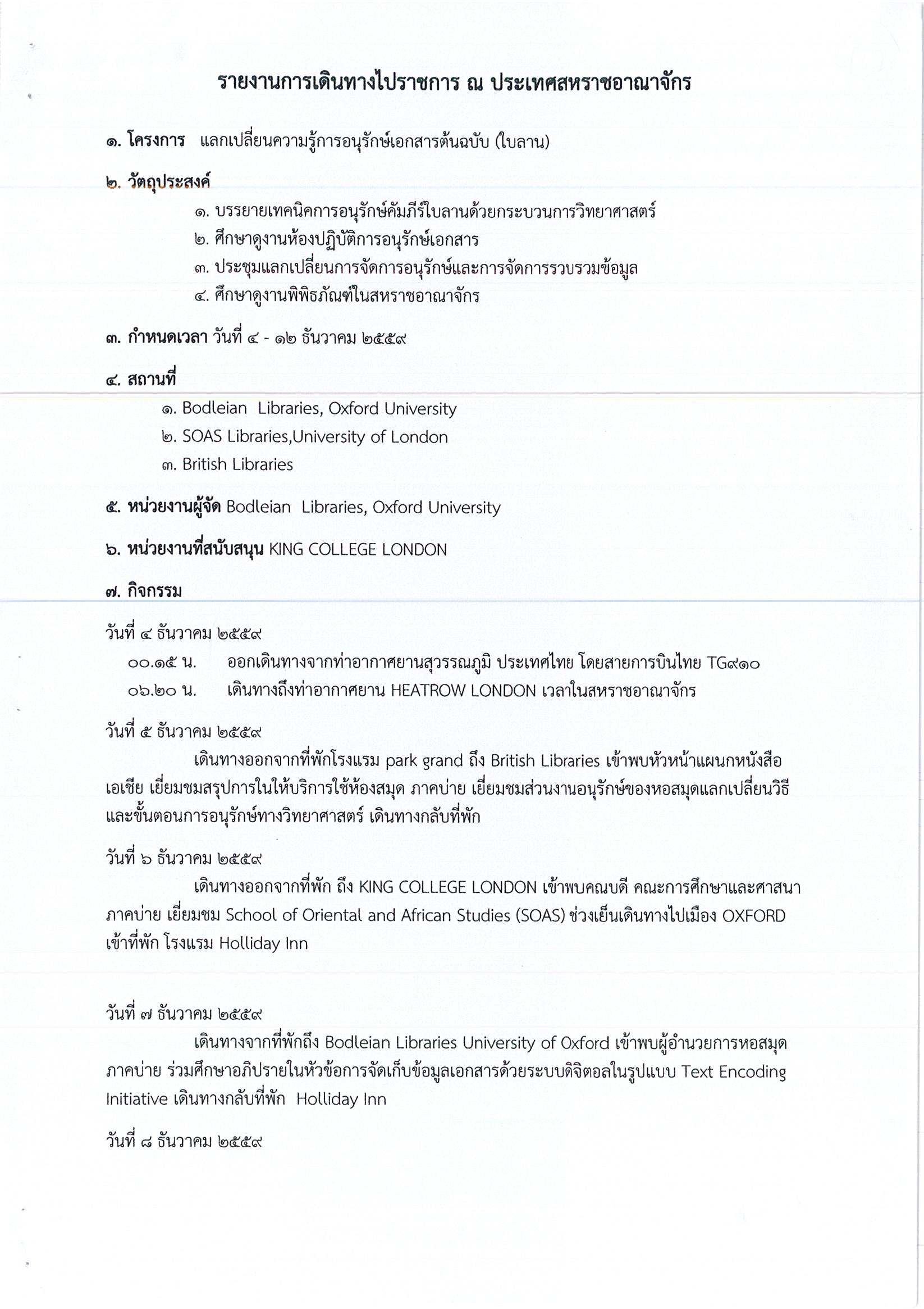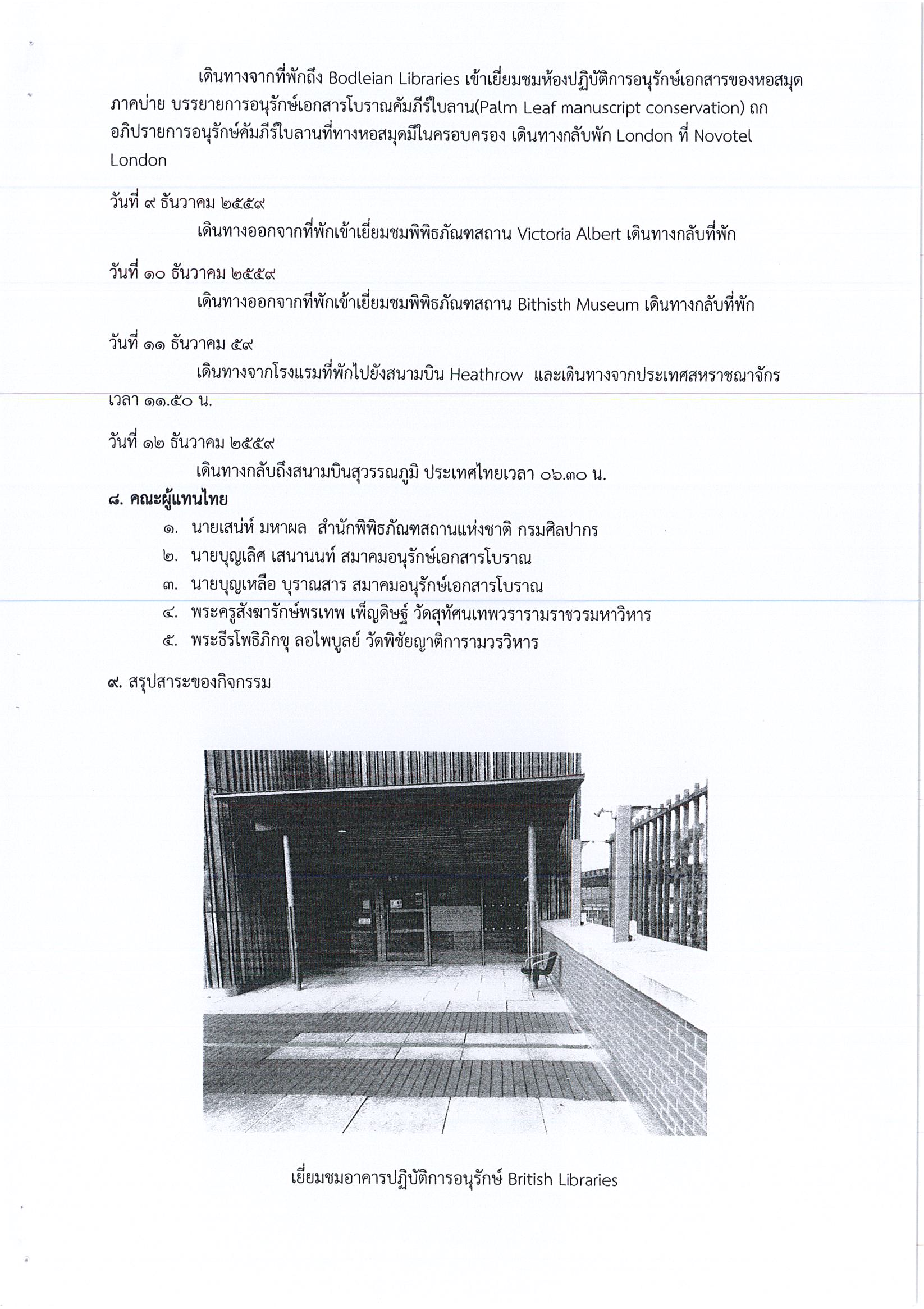 รายงานการเดินทางไปราชการ ณ สหราชอาณาจักร ระหว่างวันที่ 4 – 12 ธันวาคม 2559 โครงการแลกเปลี่ยนความรู้การอนุรักษ์เอกสารต้นฉบับ (ใบลาน)