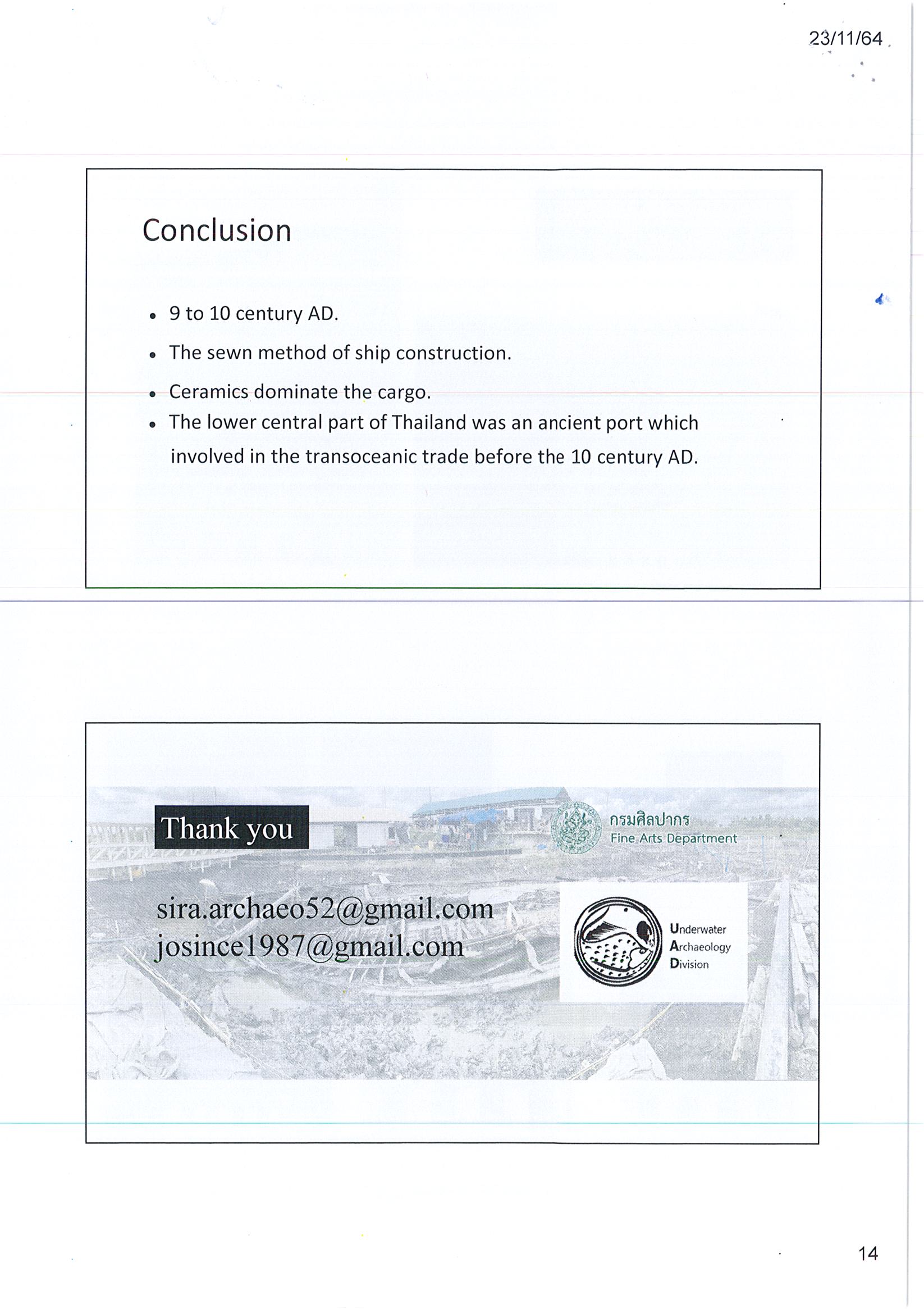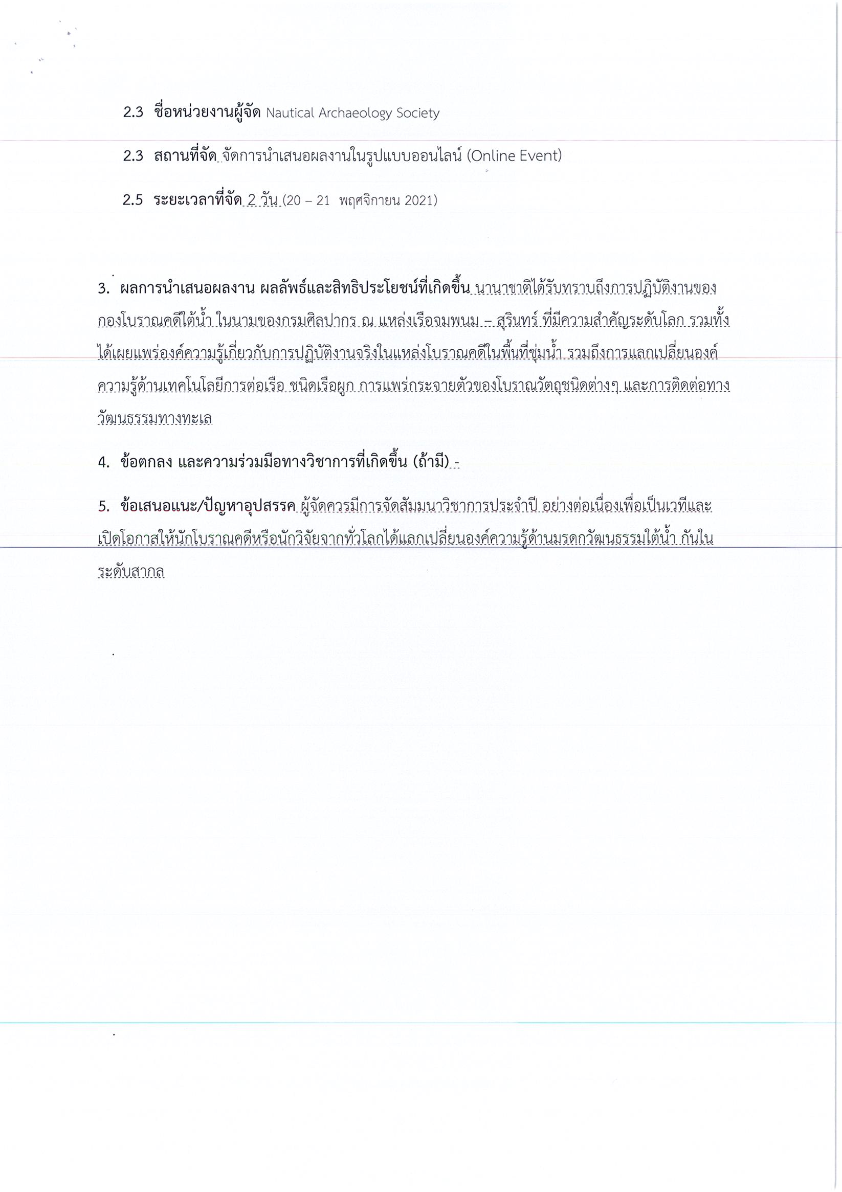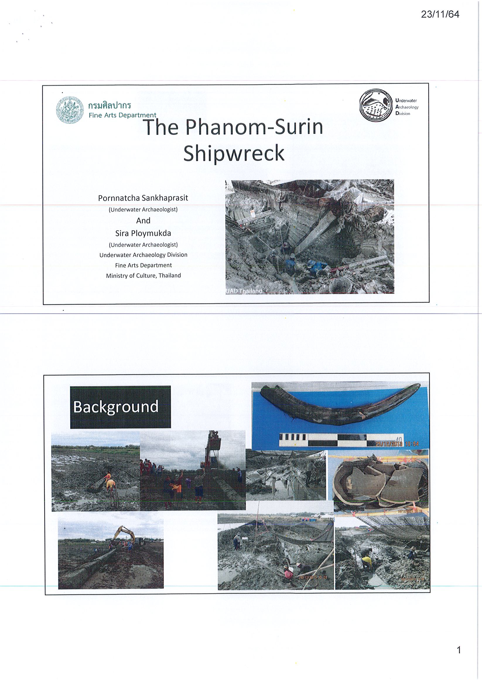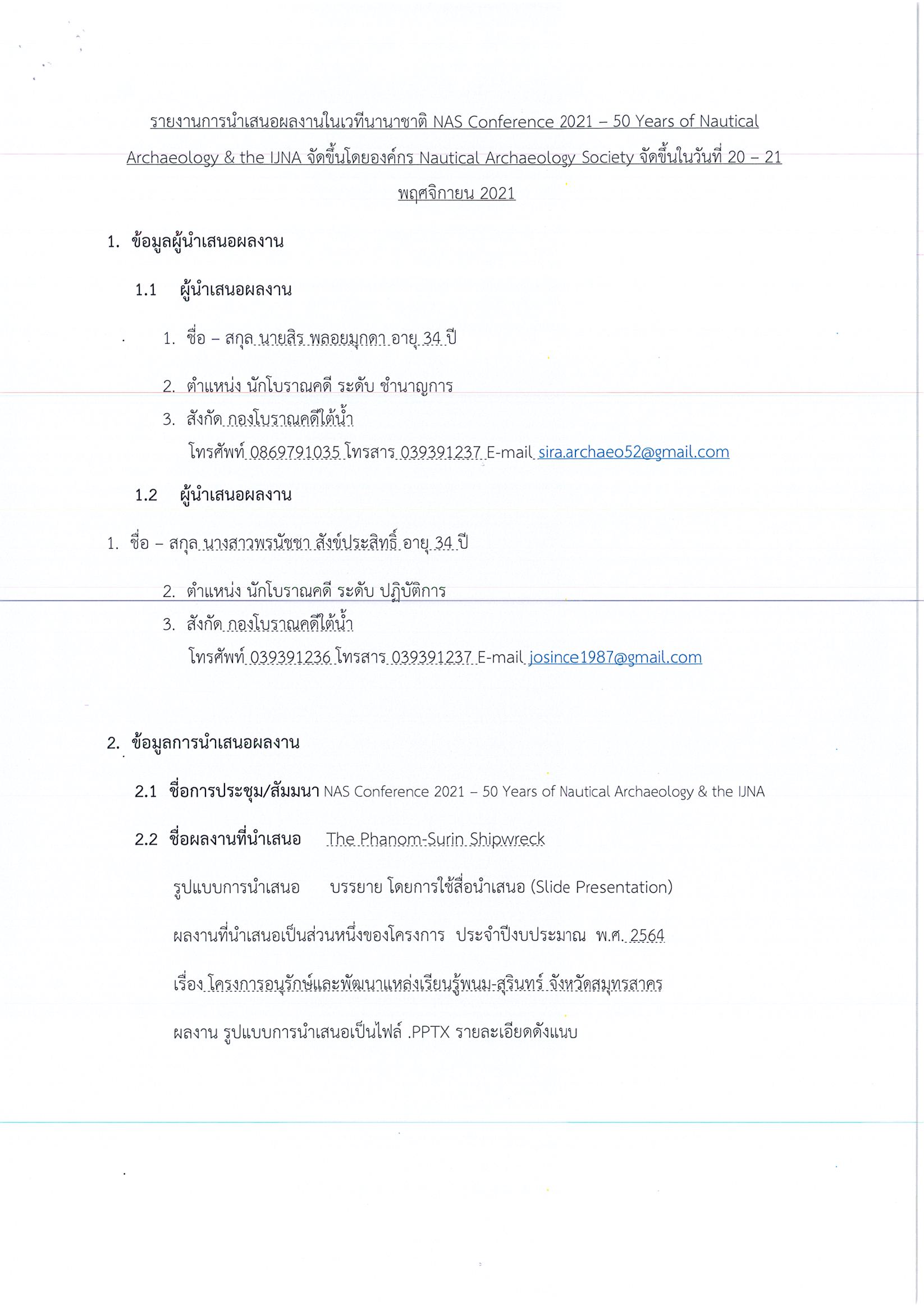 รายงานการนำเสนอผลงานในเวทีนานาชาติ NAS Conference 2021 - 50 Years of Nautical Archaeology & the UNA ระหว่างวันที่ 20 - 21 พฤศจิกายน 2564 ในรูปแบบออนไลน์ เรื่อง The Phanom – Surin Shipwreck (แหล่งเรือโบราณพนม – สุรินทร์)