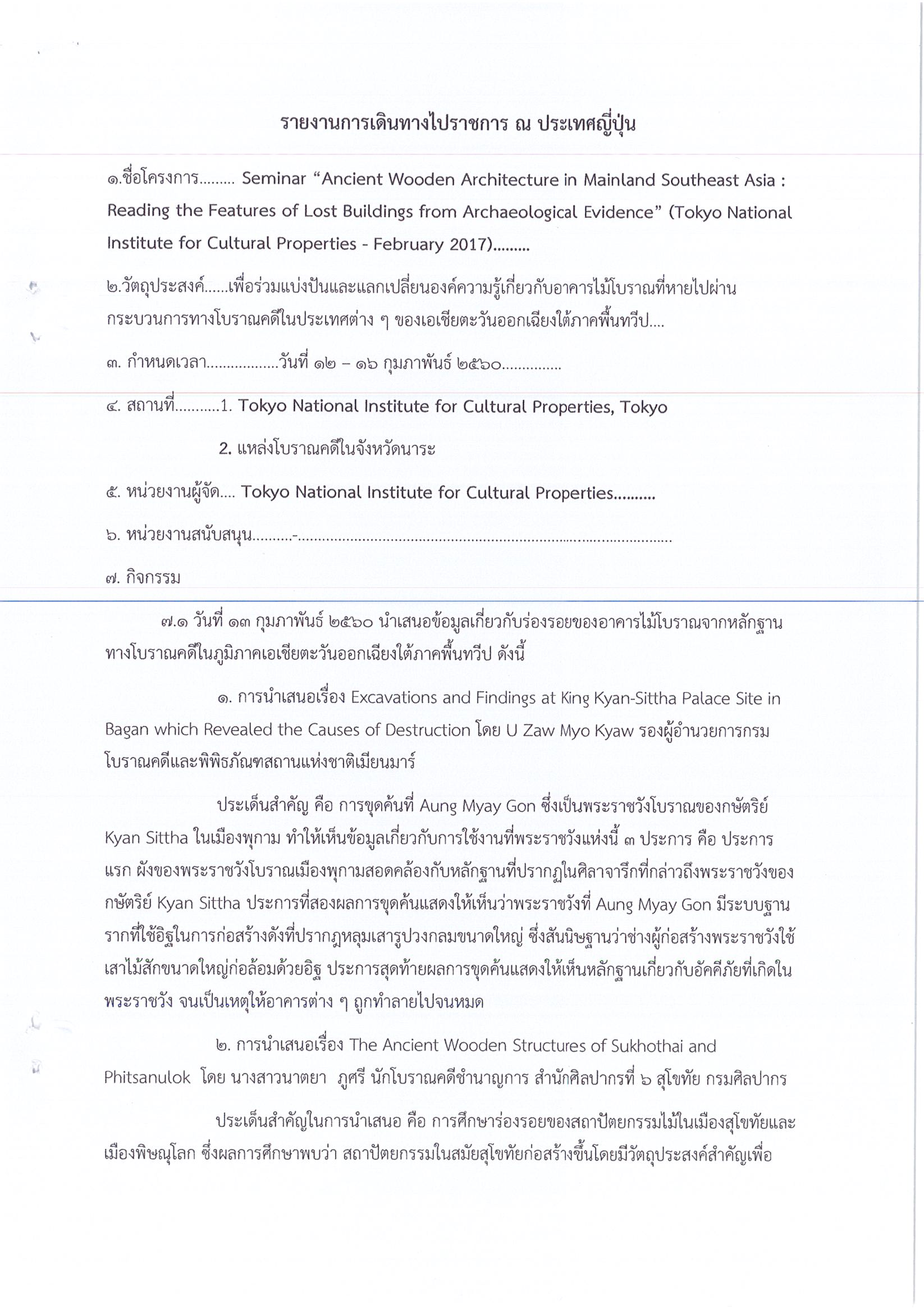 รายงานการเดินทางไปราชการ ณ ประเทศญี่ปุ่น ระหว่างวันที่ 12 – 16 กุมภาพันธ์ 2560 โครงการสัมมนาองค์ความรู้เกี่ยวกับอาคารไม้โบราณที่หายไปผ่านกระบวนการทางโบราณคดีในประเทศต่างๆ ในภูมิภาคเอเชียตะวันออกเฉียงใต้ภาคพื้นทวีป