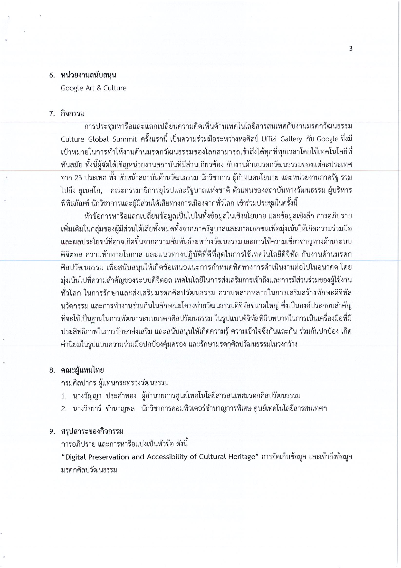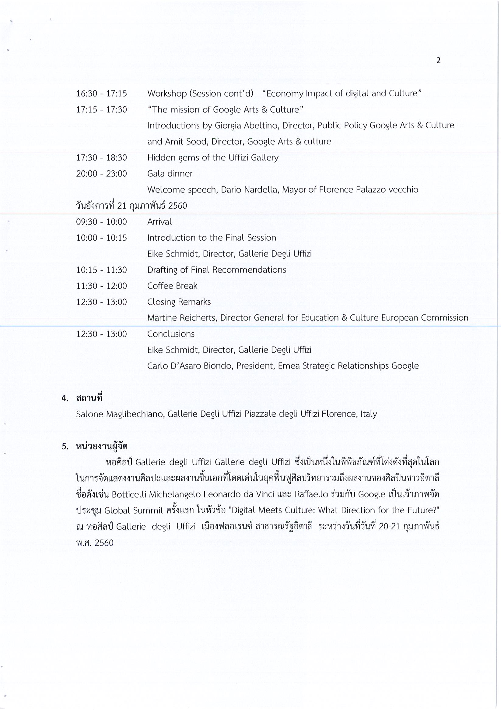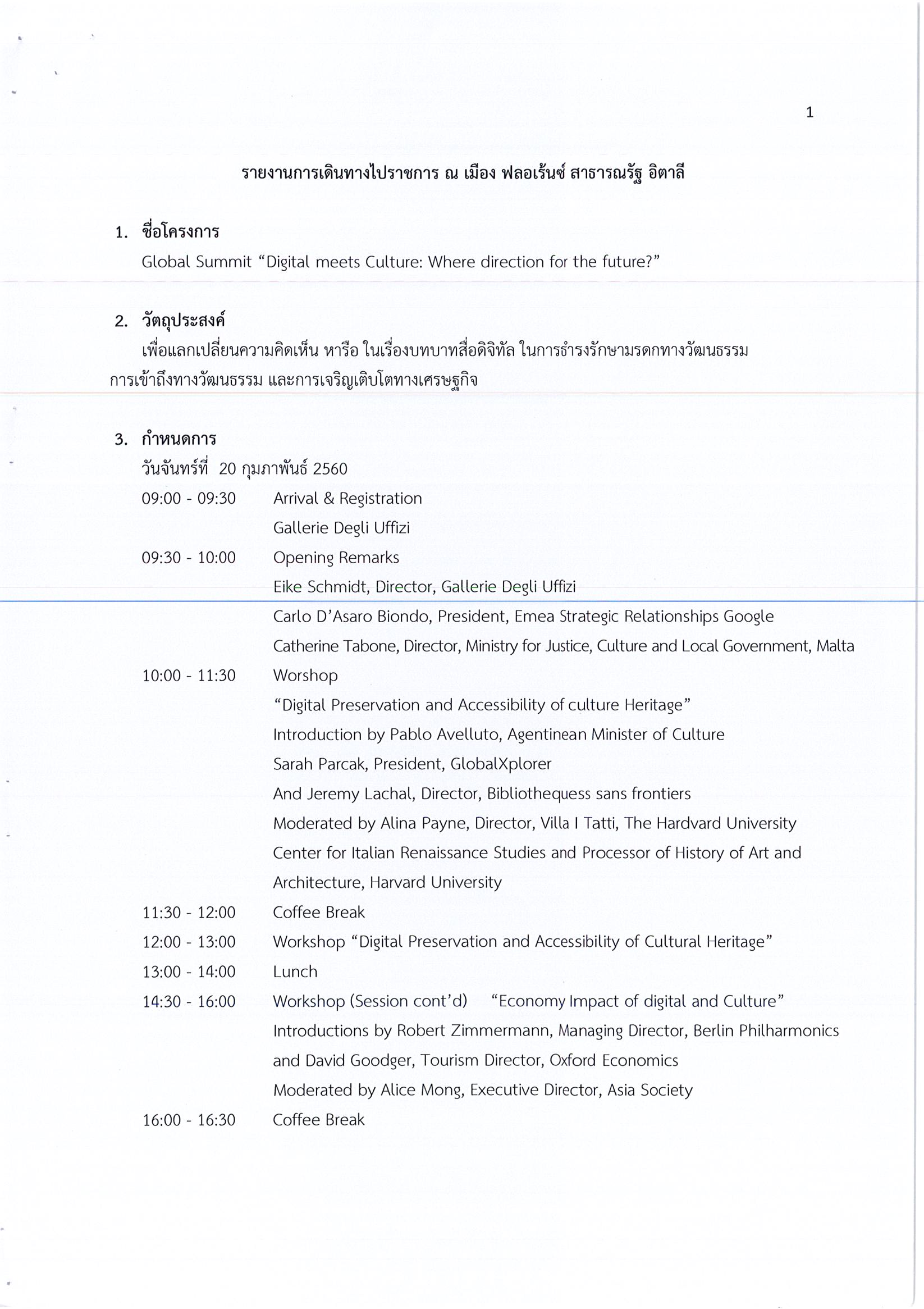 รายงานการเดินทางไปราชการ ณ สาธารณรัฐอิตาลี ระหว่างวันที่ 20 – 21 กุมภาพันธ์ 2560 โครงการ Global Summit “Digital meets Culture: Where direction for the future?”