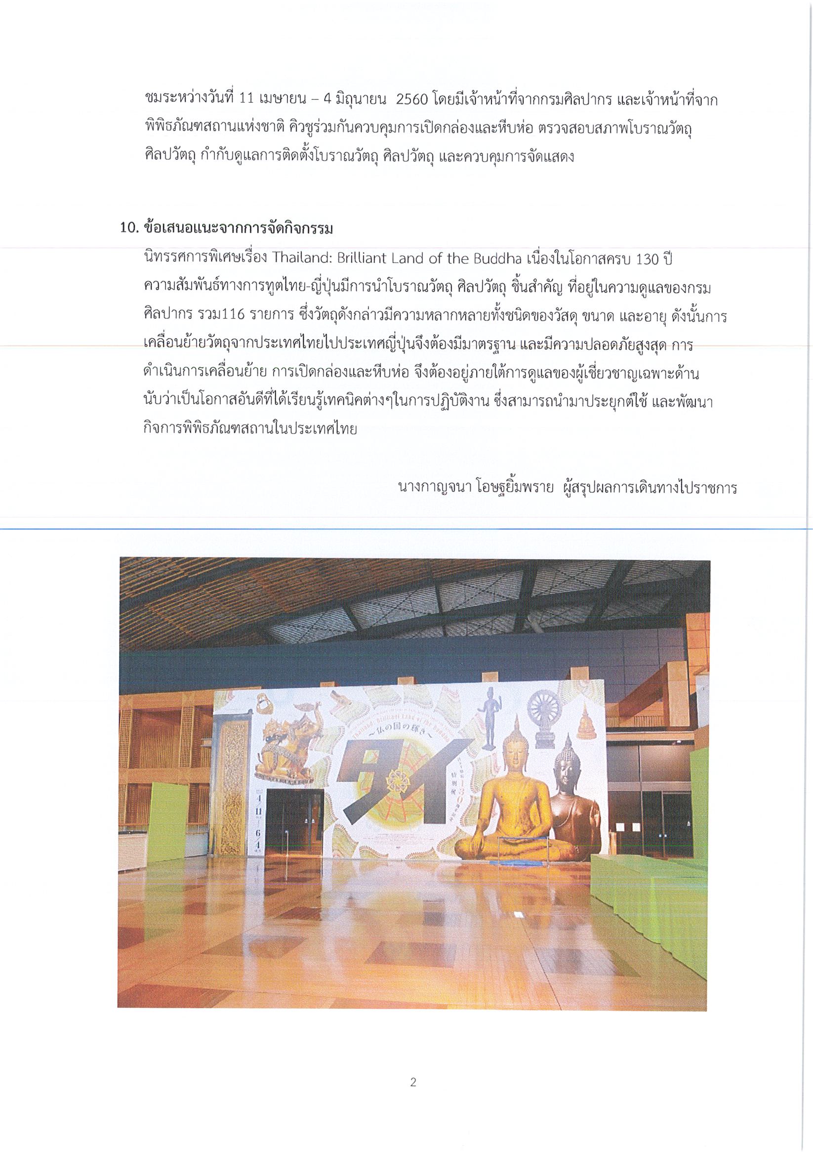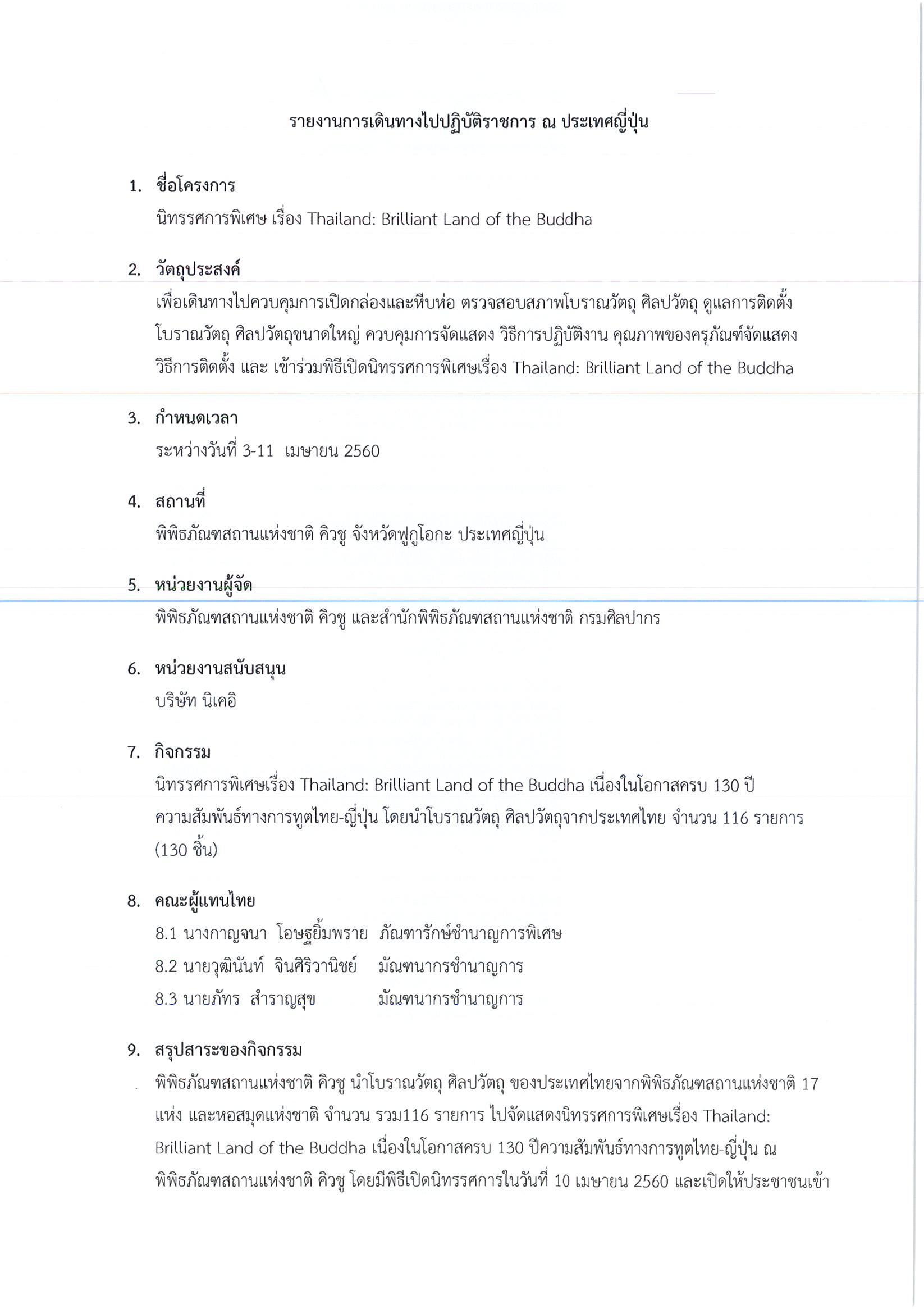 รายงานการเดินทางไปราชการ ณ ประเทศญี่ปุ่น ระหว่างวันที่ 3 – 11 เมษายน 2560 โครงการนิทรรศการพิเศษเรื่อง Thailand: Brilliant Land of the Buddha