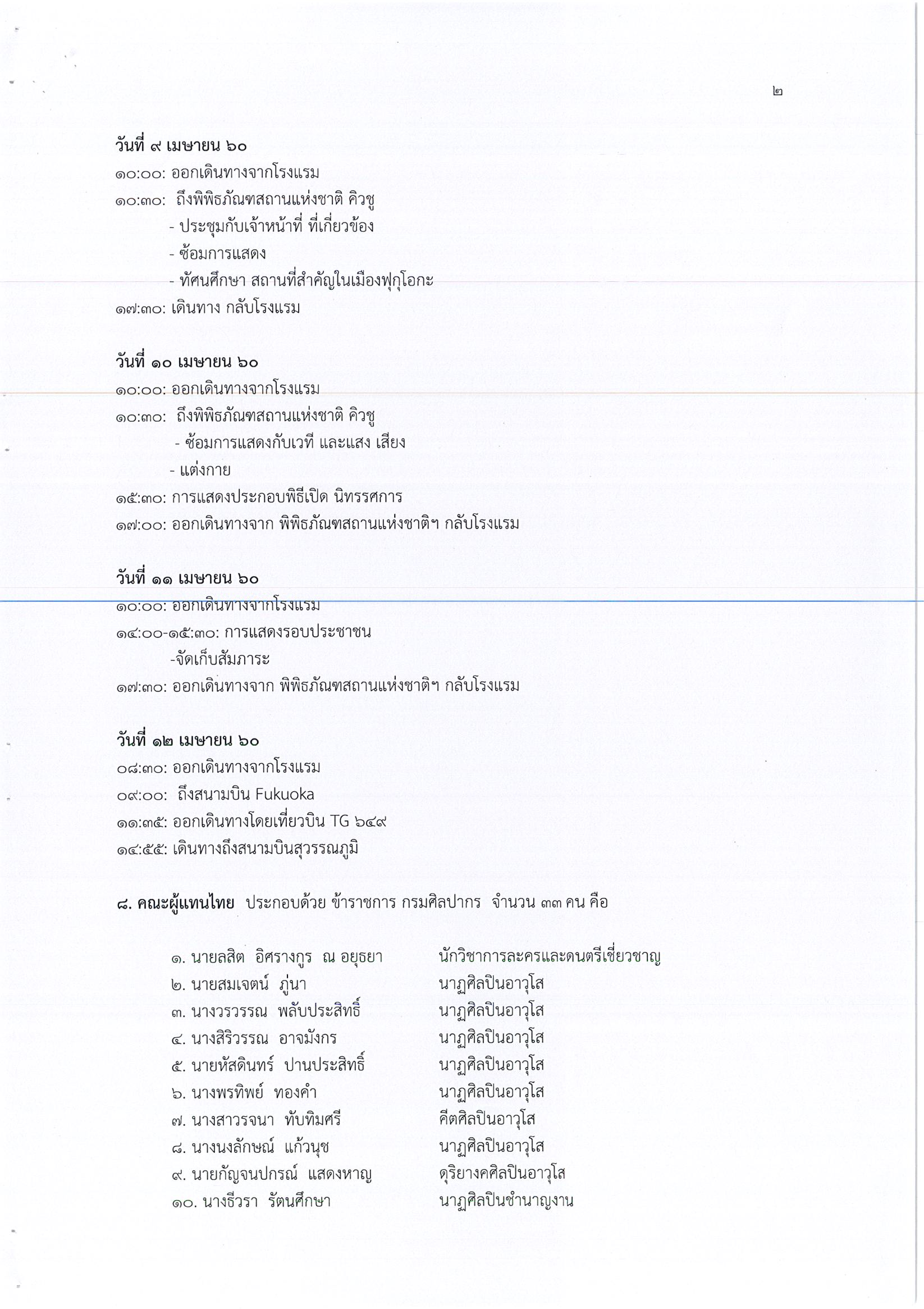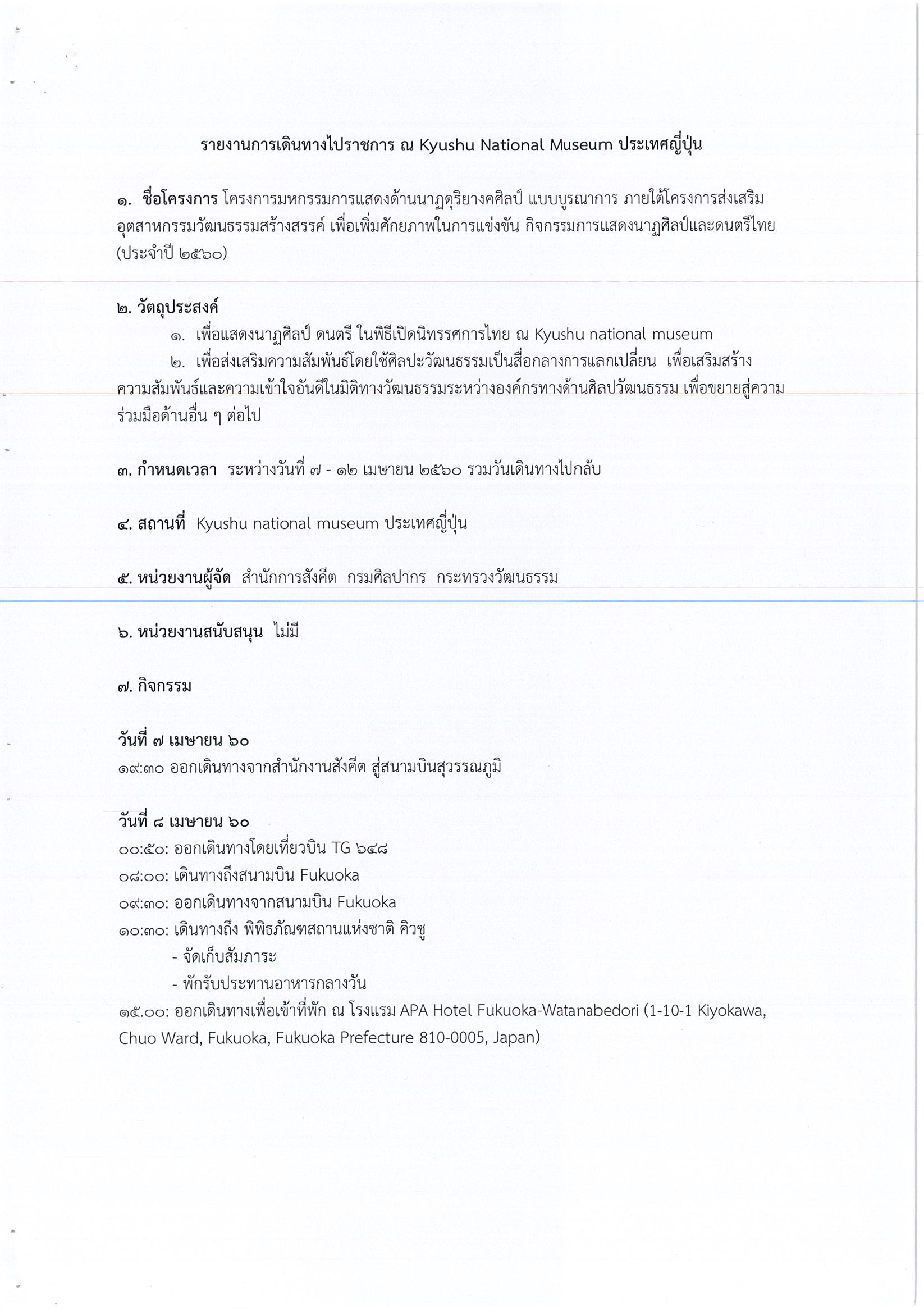 รายงานการเดินทางไปราชการ ณ ประเทศญี่ปุ่น ระหว่างวันที่ 7 – 12 เมษายน 2560 โครงการมหกรรมการแสดงด้านนาฏดุริยางคศิลป์แบบบูรณาการ ภายใต้โครงการส่งเสริมอุตสาหกรรมวัฒนธรรมสร้างสรรค์ เพื่อเพิ่มศักยภาพในการแข่งขัน กิจกรรมการแสดงนาฏศิลป์และดนตรีไทย ประจำปี 2560
