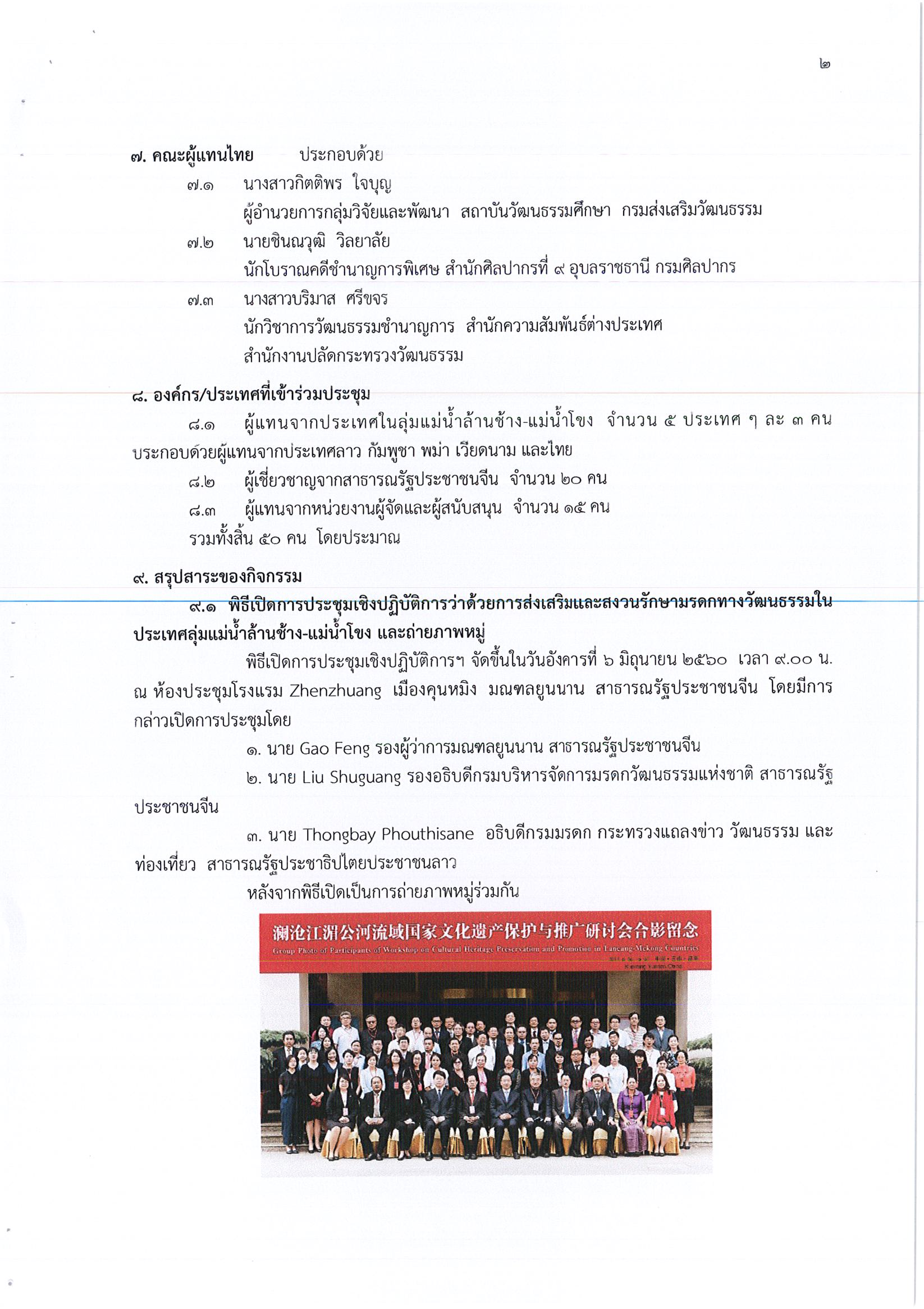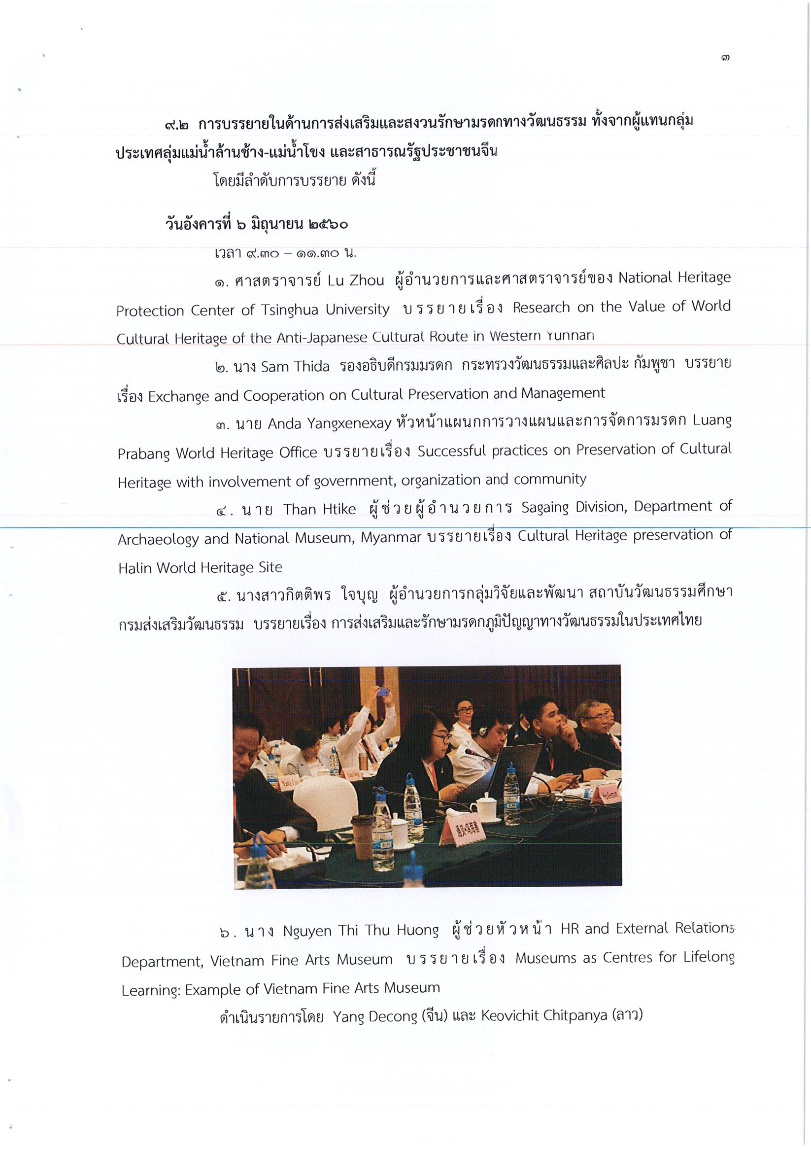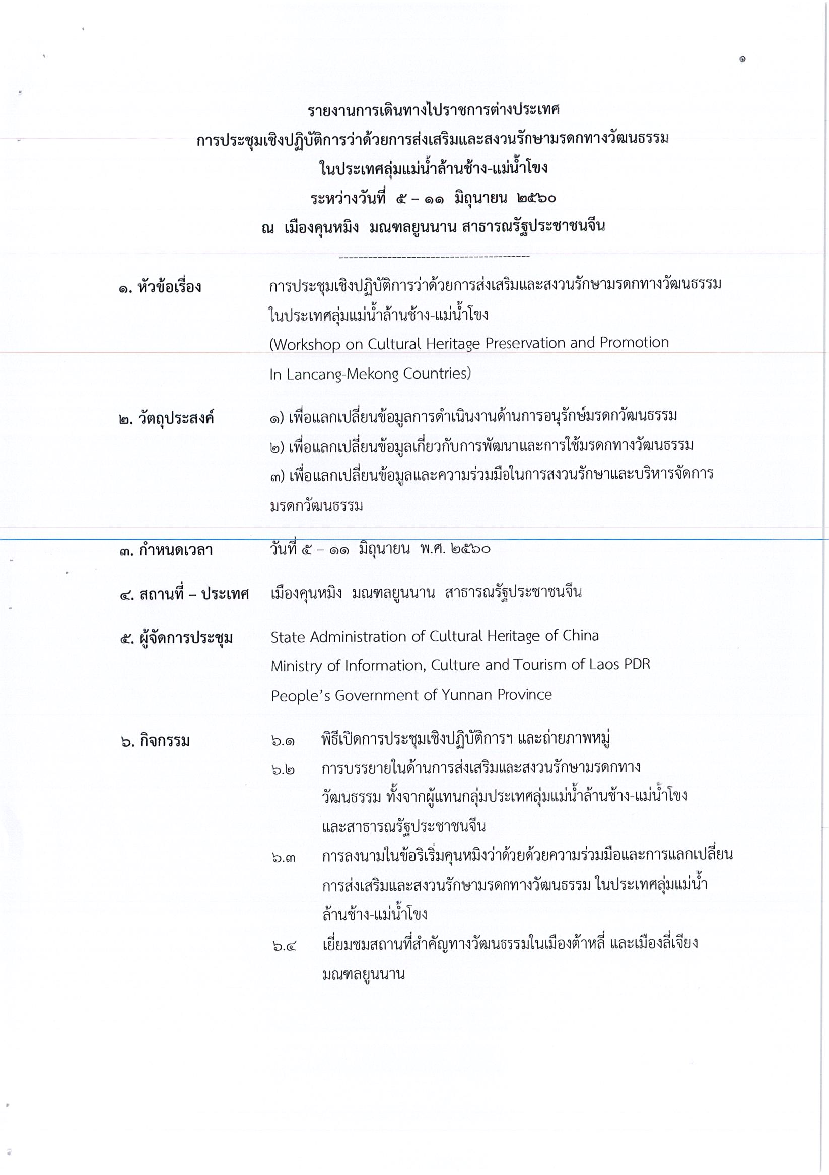 รายงานการเดินทางไปราชการ ณ สาธารณรัฐประชาชนจีน ระหว่างวันที่ 5 – 11 มิถุนายน 2560 โครงการประชุมเชิงปฏิบัติการว่าด้วยการส่งเสริแบะสงวนรักษามรดกทางวัฒนธรรมในประเทศลุ่มน้ำล้านช้าง – แม่น้ำโขง