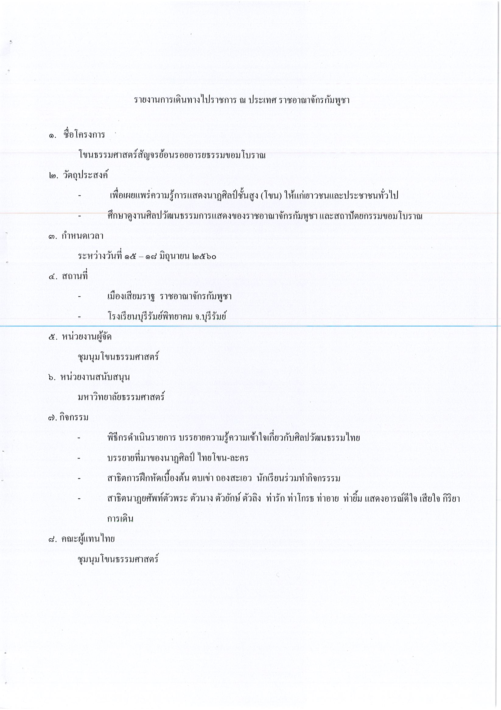 รายงานการเดินทางไปราชการ ณ ราชอาณาจักรกัมพูชา ระหว่างวันที่ 15 – 18 มิถุนายน 2560 โครงการโขนธรรมศาสตร์สัญจรย้อนรอยอารยธรรมขอมโบราณ